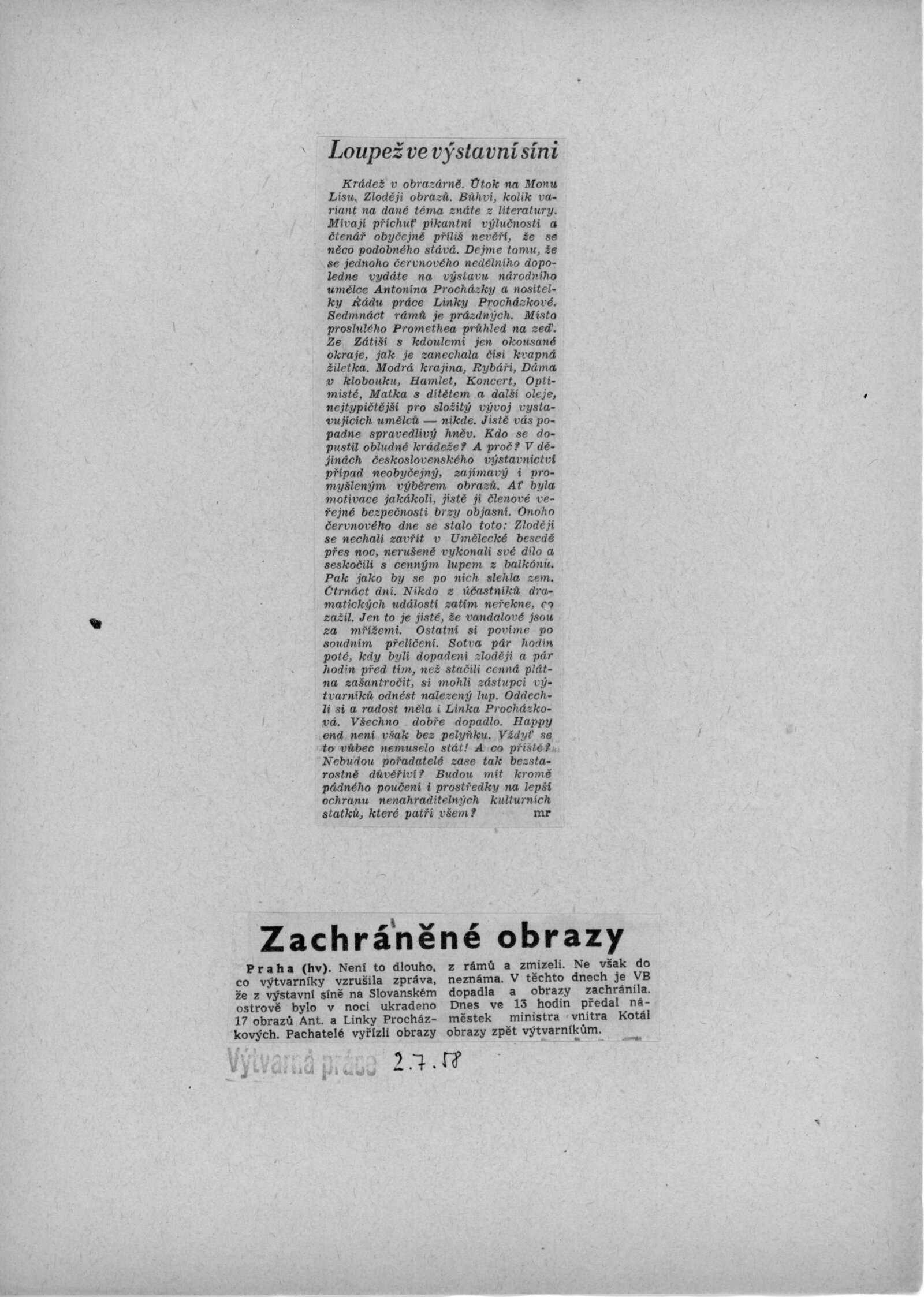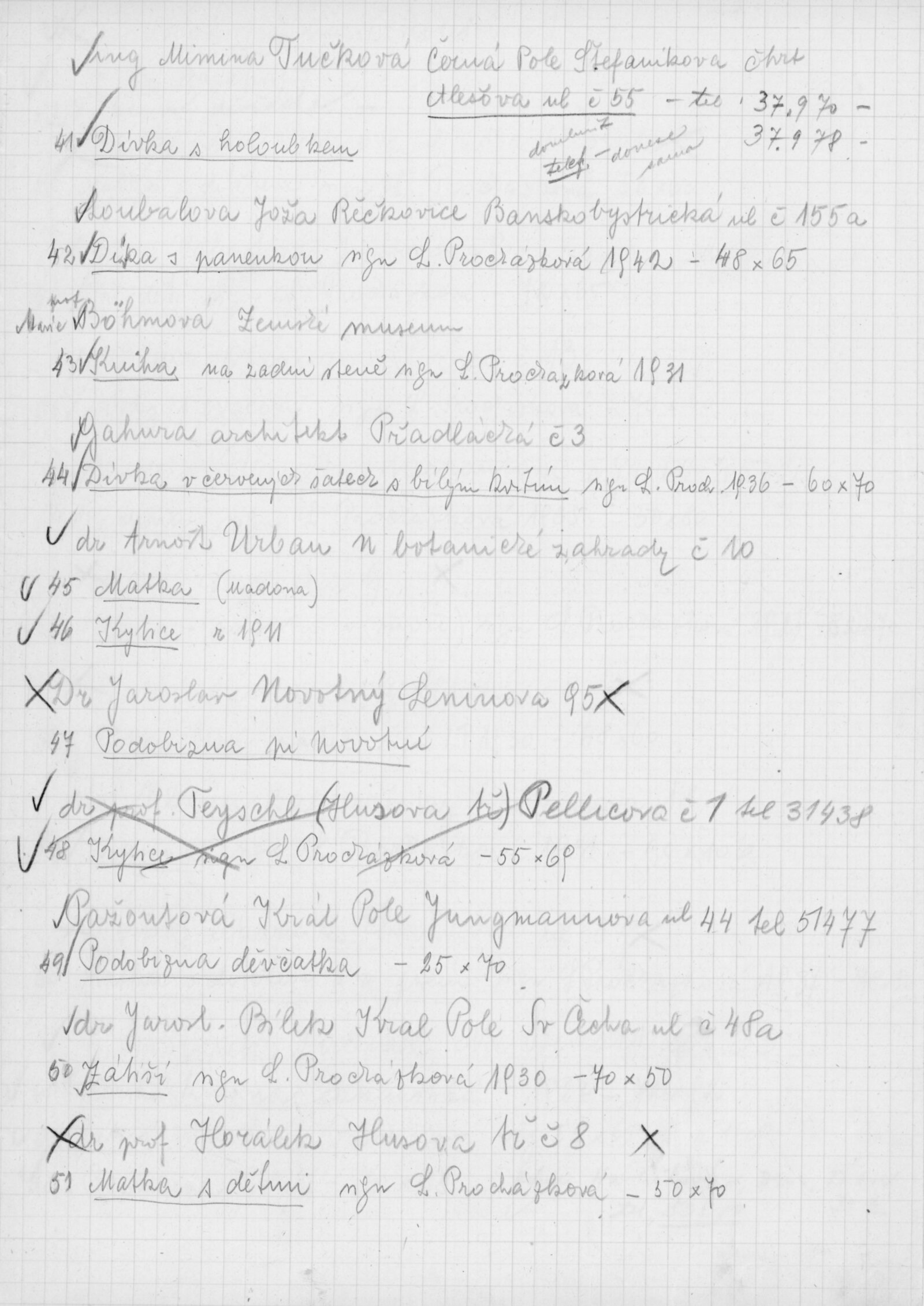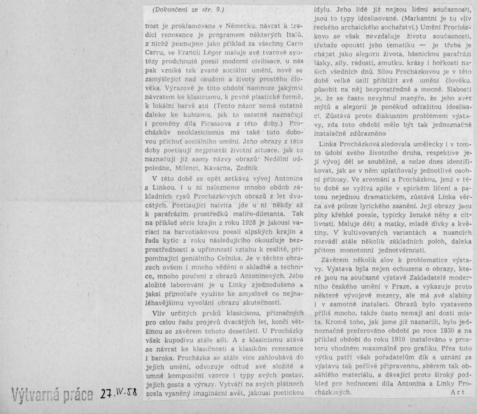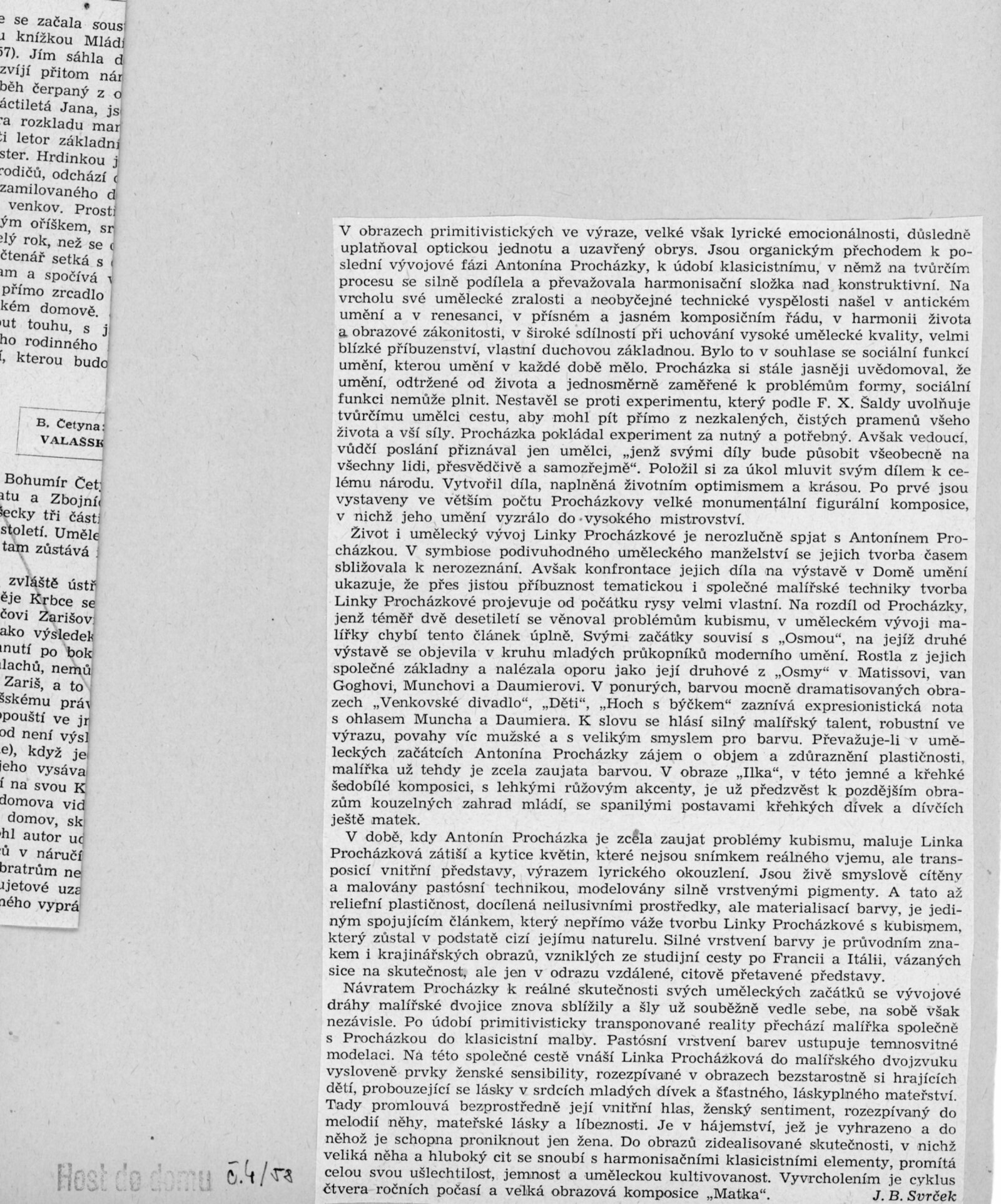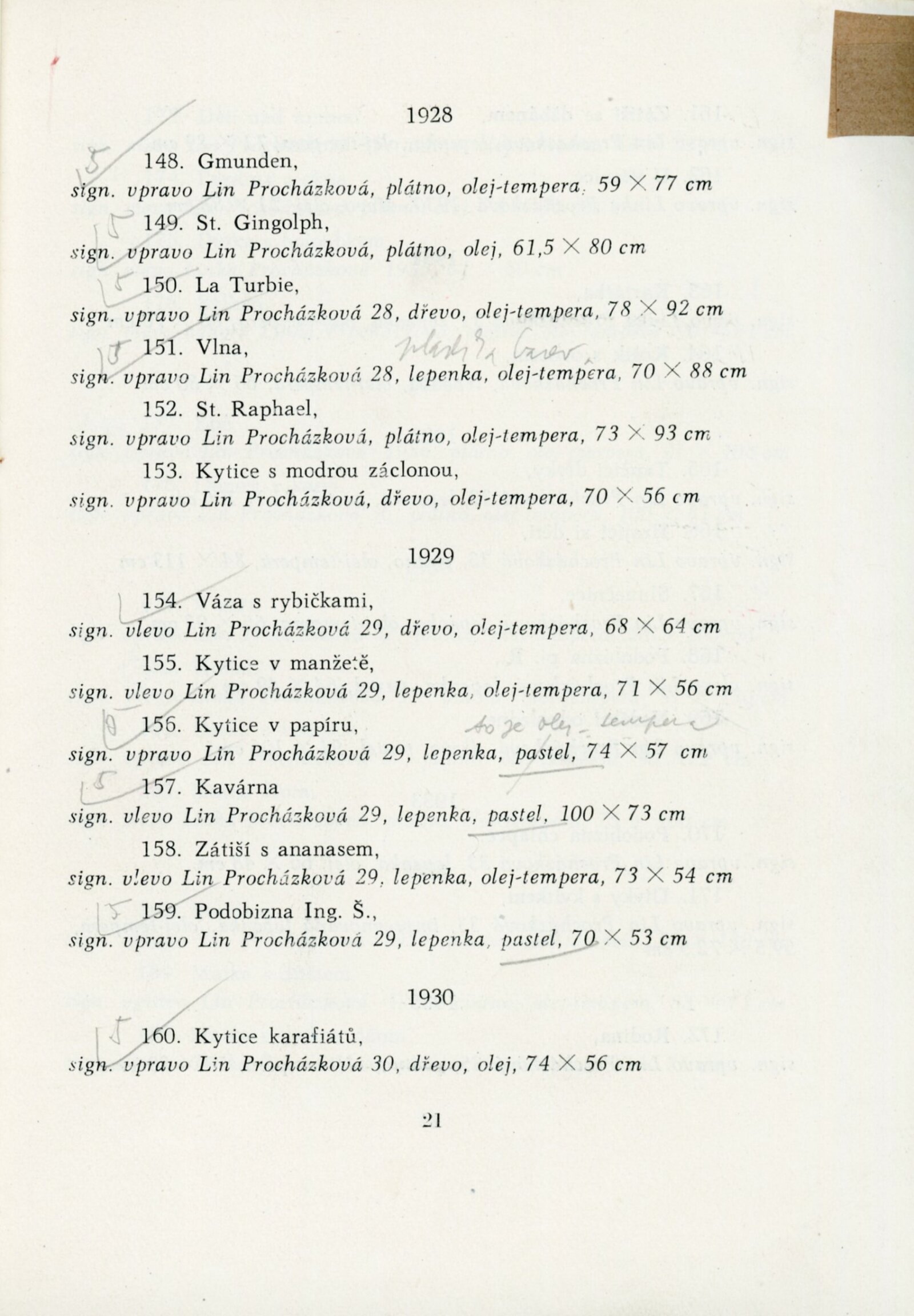 Výstava národního umělce Antonína Procházky, Linky Procházkové, nositelky Řádu práce: Dům umění města Brna, 23. 3. – 4. 5. 1958 / Text: Albert Kutal. – Brno: DUmB, 1958. – 25 s., 10 s. obr. příl., DU 307. – Kubíček 7932; MZK; MG; MMB