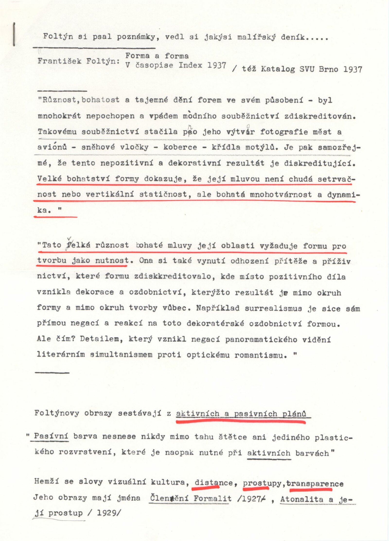 pozvánka, katalog, fotografie instalace, fotografie děl, žádost o povolení výstavy, seznamy vystavených děl a pojistné seznamy, podklady pro katalog (strojopis), smlouva o zabezpečení výstavy s autorem, text o Foltýnově tvorbě s citacemi autora, prezenční listina k výstavě, korespondence (žádosti a odpovědi o výpůjčkách – instituce a soukromé osoby, hlášení o vernisáži, reversy, recenze v tisku, katalog výstavy Františka Foltýna MG 1966