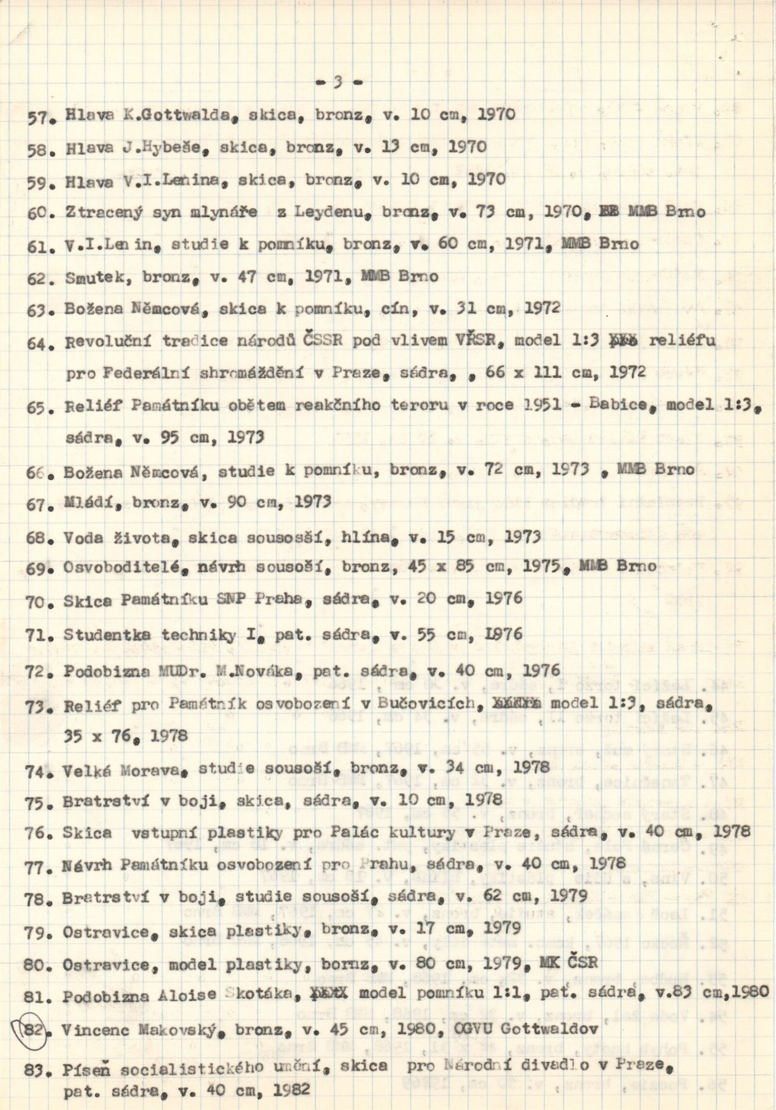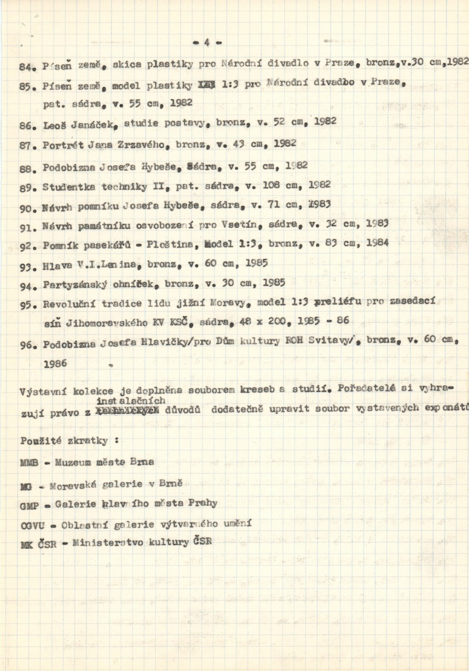 pozvánka, katalog, seznam děl ze sbírek a seznam vystavených prací, harmonogram cesty do Prahy, provozní korespondence, žádost o povolení výstavy, zápůjční smlouvy, potvrzení a hospodářské smlouvy, dopis Miloše Axmana (10. 1. 1980) a zamítavá odpověď SA ČSR, recenze v tisku