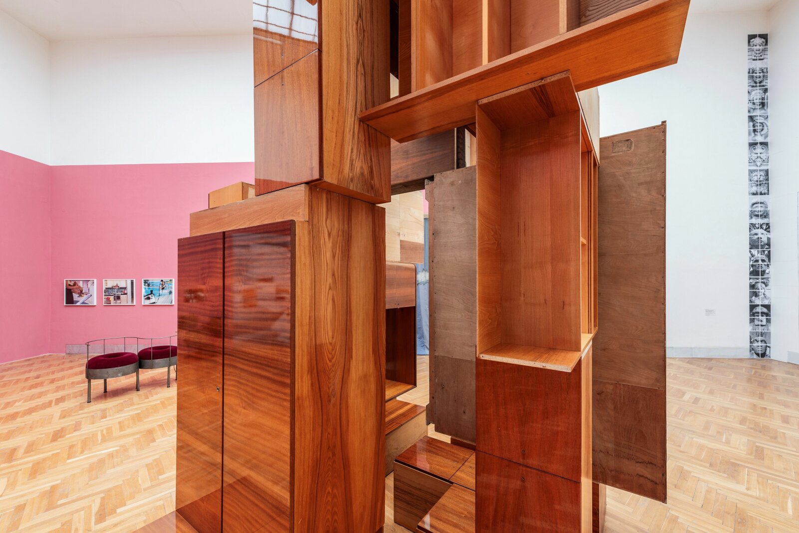 Materiálem pro vznik díla se stal použitý nábytek, který umělkyně sesbírala v různých lokálních bazarech. Tímto výběrem přináší do sochy další vrstvu významu – historické, politické, společenské a kulturní konotace. Každý kus nese paměť předchozích životů, a protože se podobný nábytek dříve běžně nacházel v mnoha domácnostech, rezonuje s kolektivními vzpomínkami. Znovupoužitím těchto předmětů se oživují zapomenuté příběhy a novým způsobem uspořádání se otevírá prostor pro přehodnocení jejich původního významu.