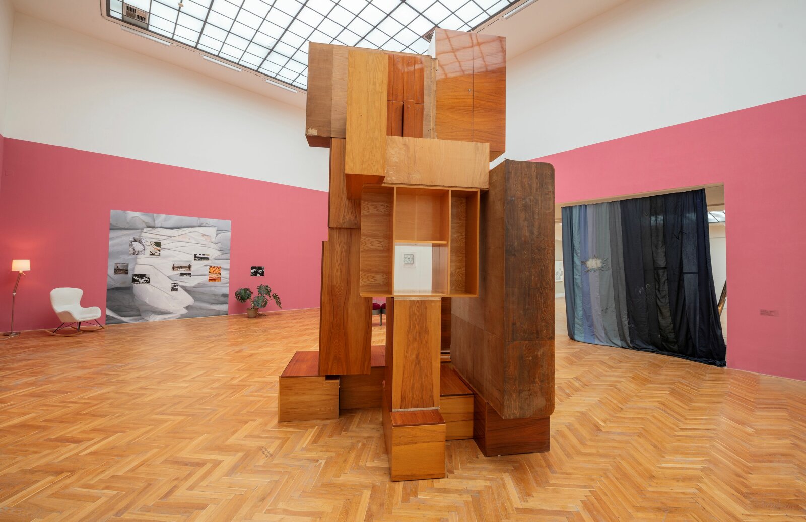 Materiálem pro vznik díla se stal použitý nábytek, který umělkyně sesbírala v různých lokálních bazarech. Tímto výběrem přináší do sochy další vrstvu významu – historické, politické, společenské a kulturní konotace. Každý kus nese paměť předchozích životů, a protože se podobný nábytek dříve běžně nacházel v mnoha domácnostech, rezonuje s kolektivními vzpomínkami. Znovupoužitím těchto předmětů se oživují zapomenuté příběhy a novým způsobem uspořádání se otevírá prostor pro přehodnocení jejich původního významu.