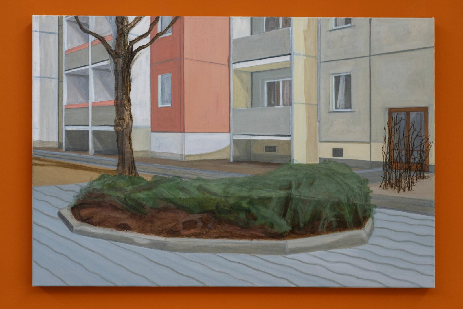 Na výstavě jsou k vidění také malby zachycující městskou architekturu, zeleň a různá zákoutí z okolí autorčina bydliště. Nejde o efektní nebo výrazně estetické objekty, nýbrž o obyčejné obytné stavby, které Trenkel ztvárňuje svým osobitým stylem. Zaměřuje se na celek, pozoruje prostředí bez snahy o sociologickou interpretaci či estetický soud.