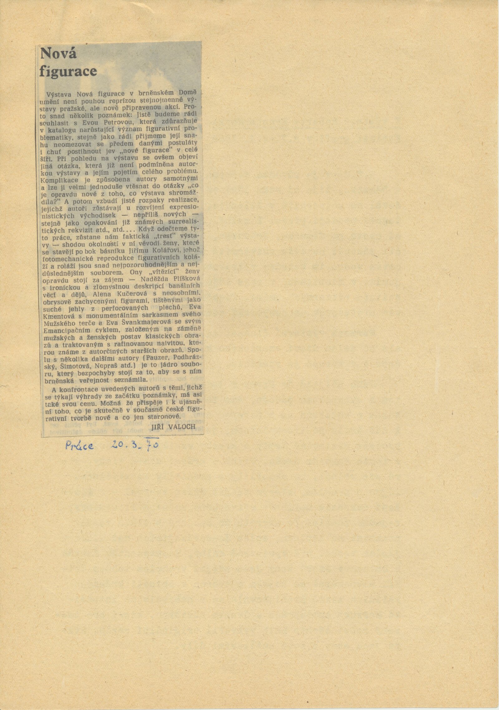 Nová figurace: Dům umění města Brna, 11. 1. – 22. 2. 1970 / Text: Eva Petrová. – Brno: DUmB, 1970. – 8 s., obr., vystavené práce 13 s., DU 539. – MZK; MG; MMB