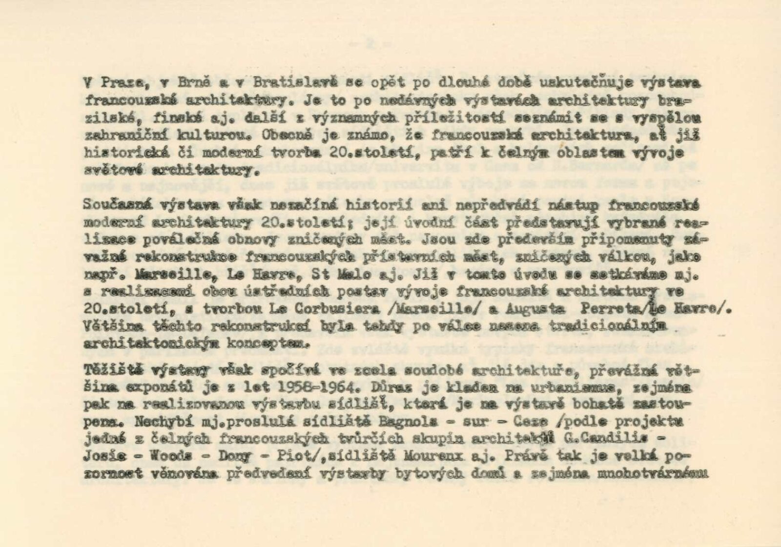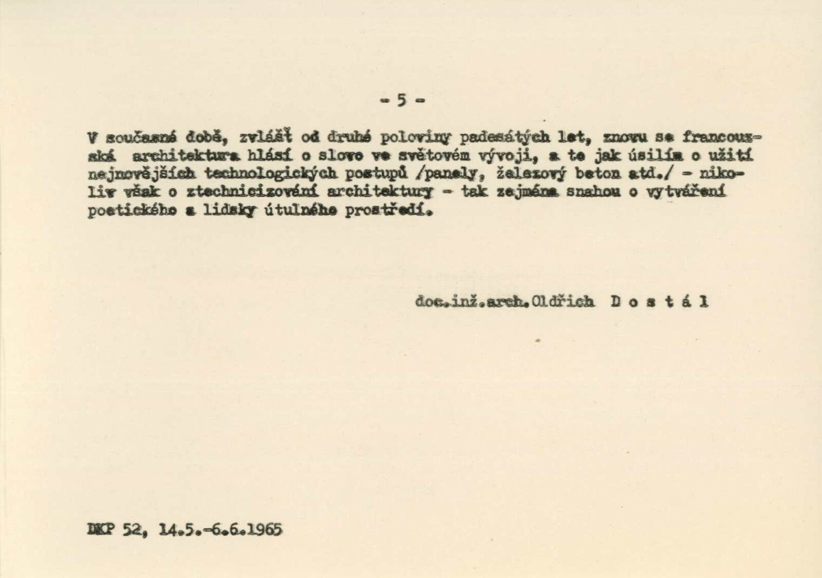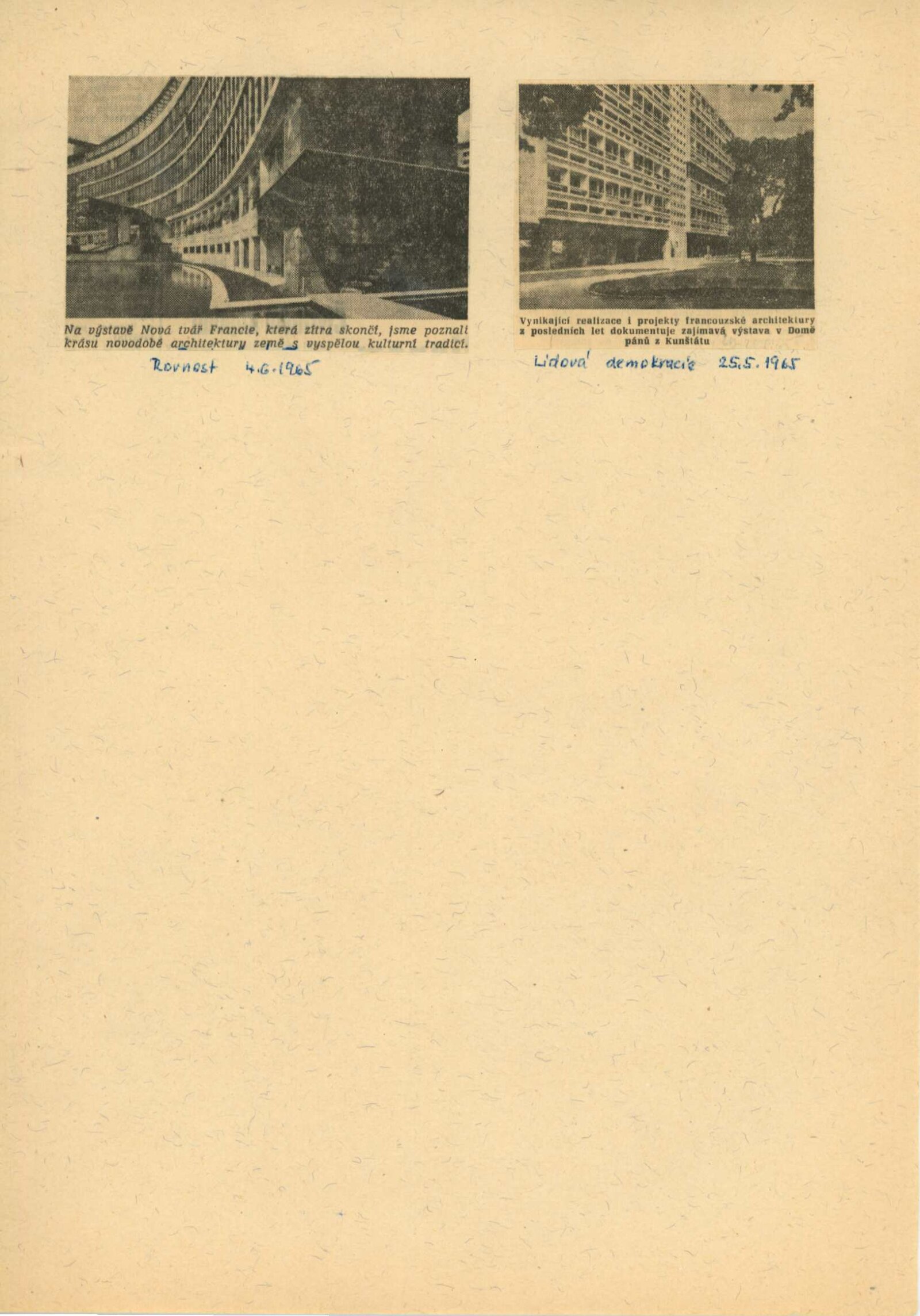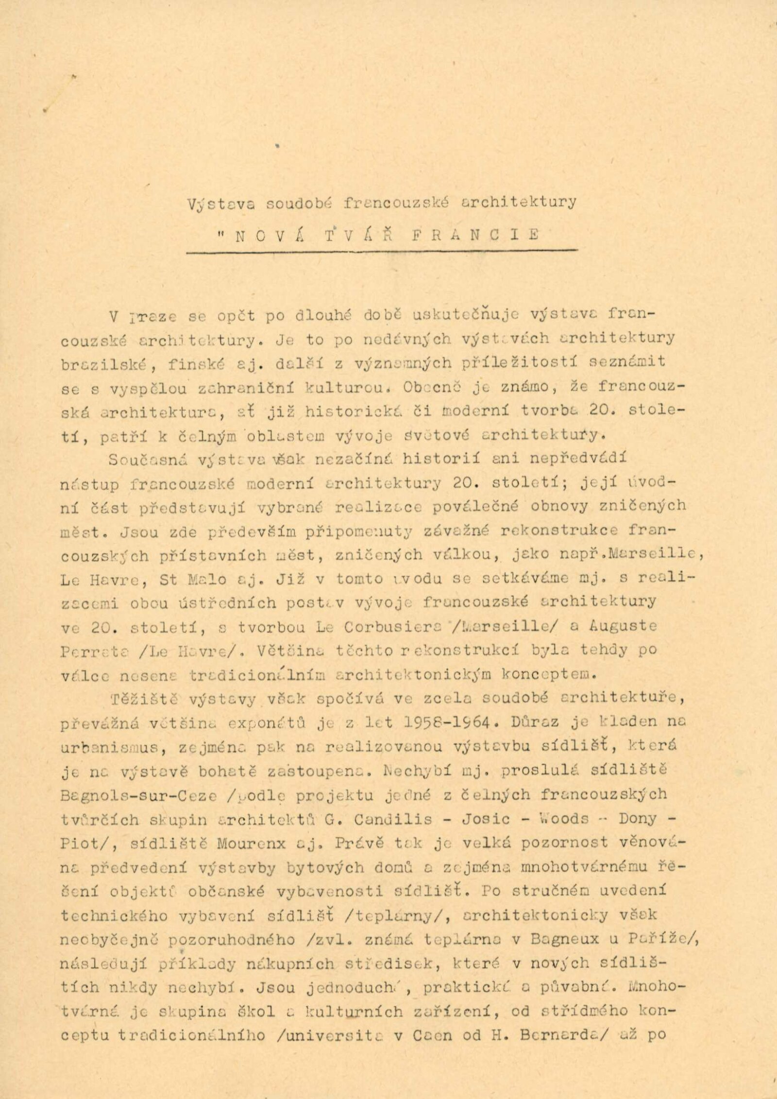 Nová tvář Francie. Výstava francouzské architektury a stavební techniky: Dům umění města Brna / Dům pánů z Kunštátu, Kabinet architektury Svazu architektů ČSSR, 14. 5. – 6. 6. 1965 / Text: Oldřich Dostál. – Brno: DUmB, 1965. – 5 s., DPK 267. – MZK; MG