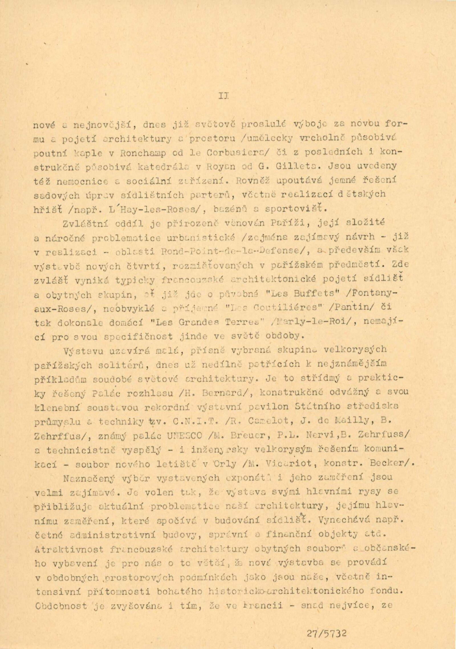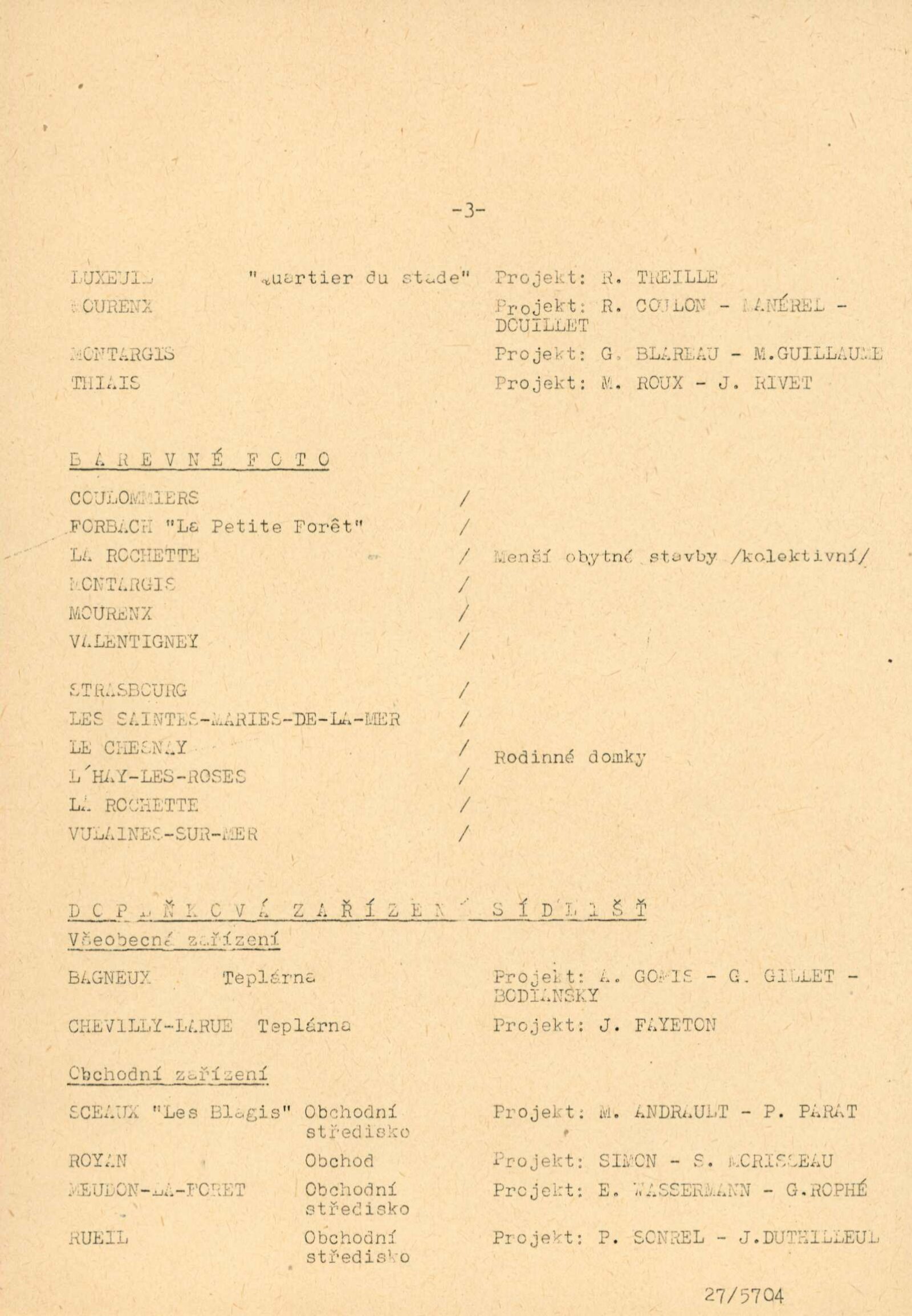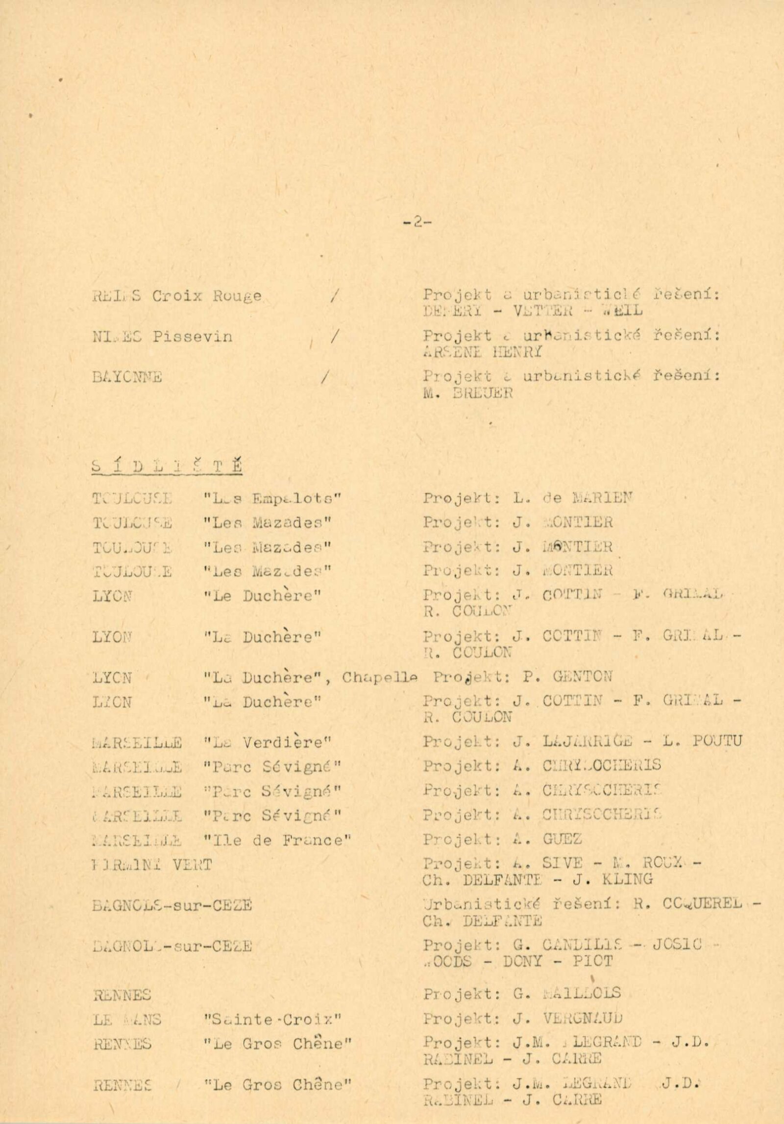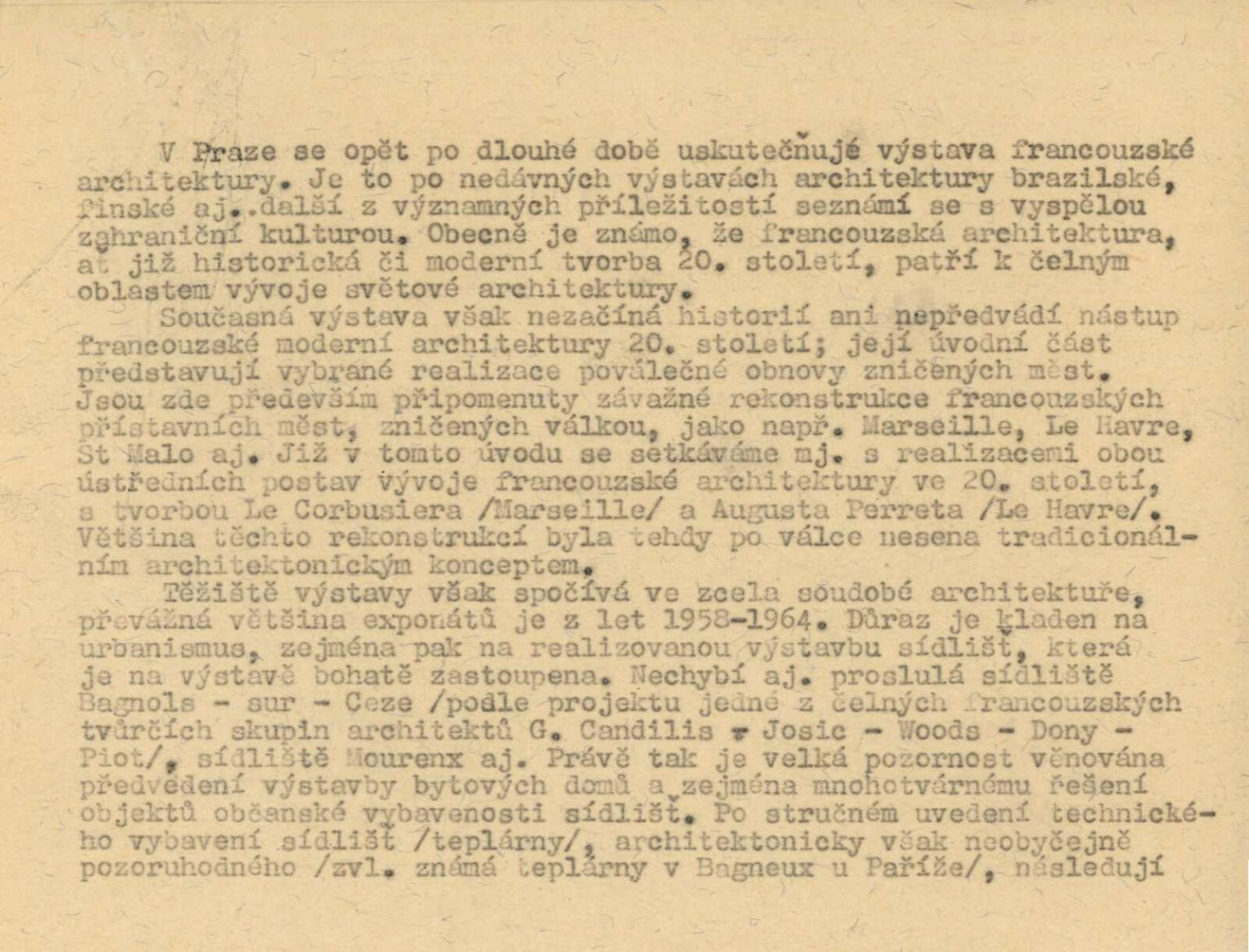 pozvánka, pozvánka na přednášku (H. Jacques Le Meme), katalog, strojopis textu ke katalogu, návrh instalace výstavy (schéma), seznam prací, fotografie děl a výstavy, korespondence (Ministerstvo výstavby, Ministerstvo stavebnictví, kulturní atašé francouzské ambasády v Praze, provozní korespondence), potvrzení o předání výstavy, zprávy a recenze v tisku