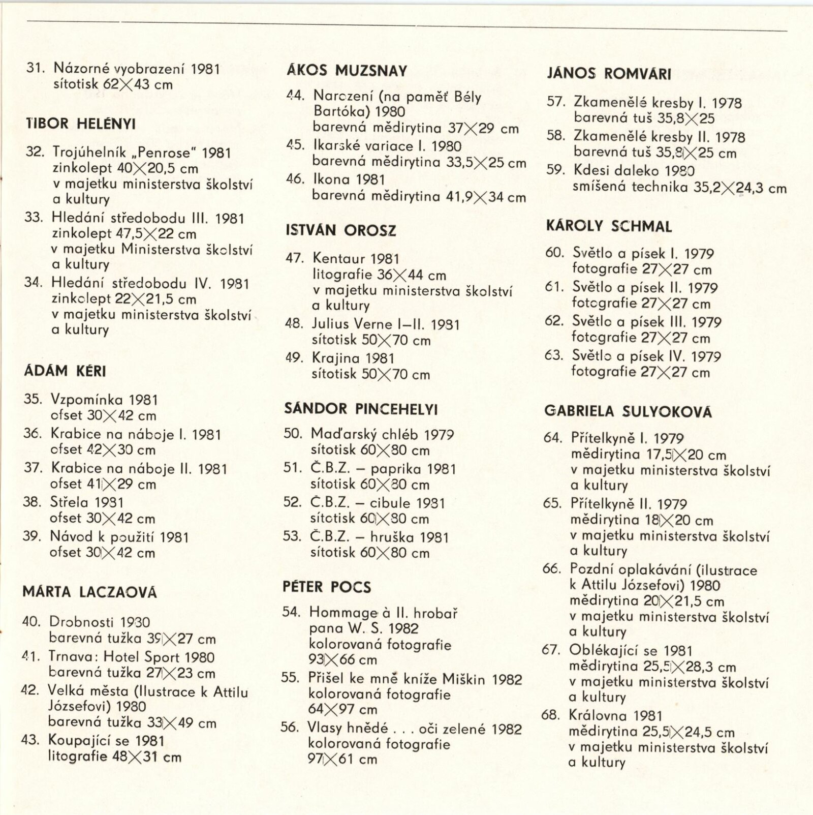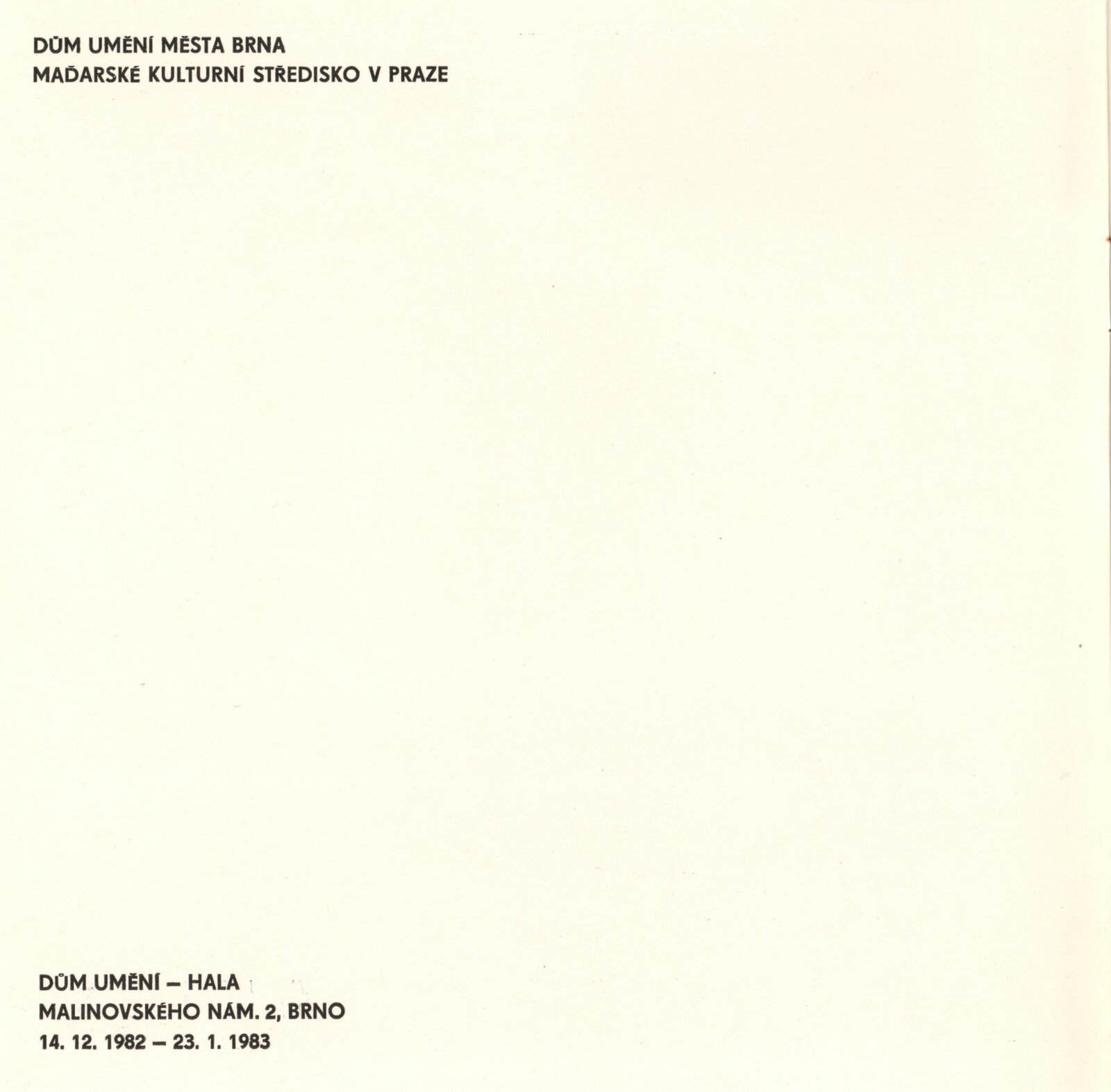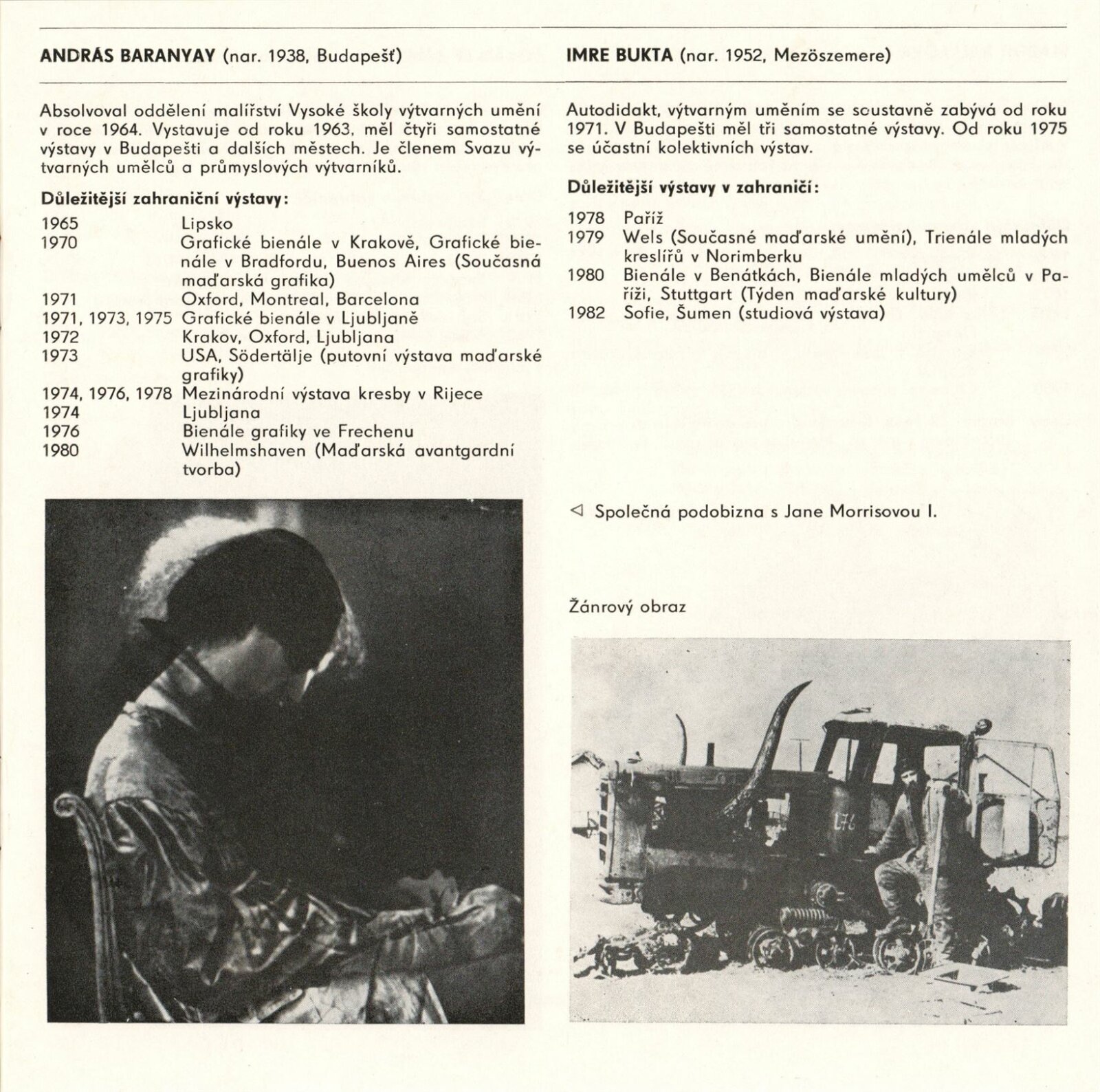 Nové cesty současné maďarské grafiky: Dům umění města Brna, hala, 14. 12. 1982 – 23. 1. 1983 / Text: Katalin Nérayová. – Brno: DUmB, 1982. – 16 s., obr., životní data vystavujících, DU 753. – MZK; MG