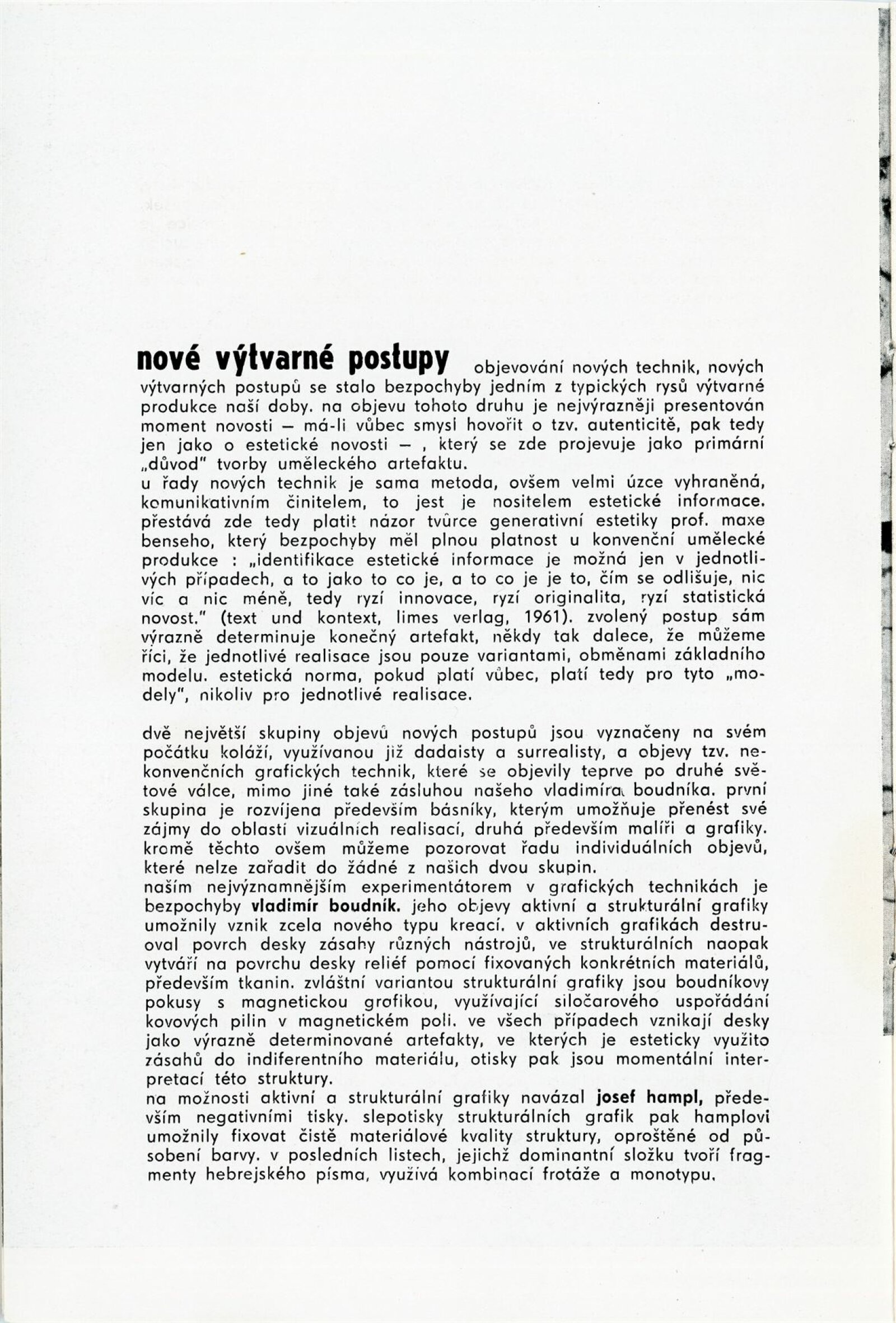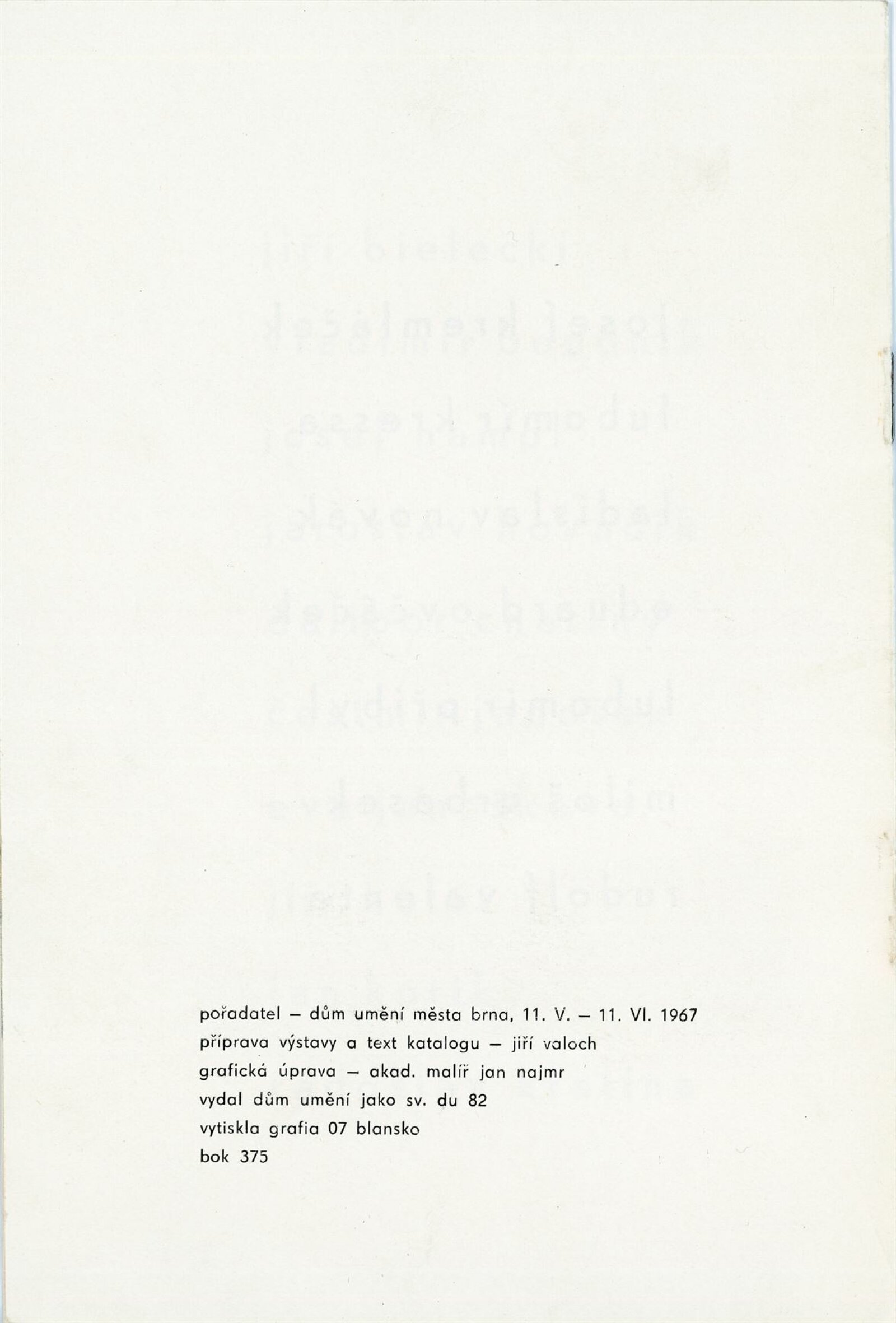 Nové výtvarné postupy: Dům umění města Brna, hala, 11. 5. – 11. 6. 1967 / Text: Jiří Valoch. – Brno: DUmB, 1967. – 9 s., obr., DU 485. – MZK; MG