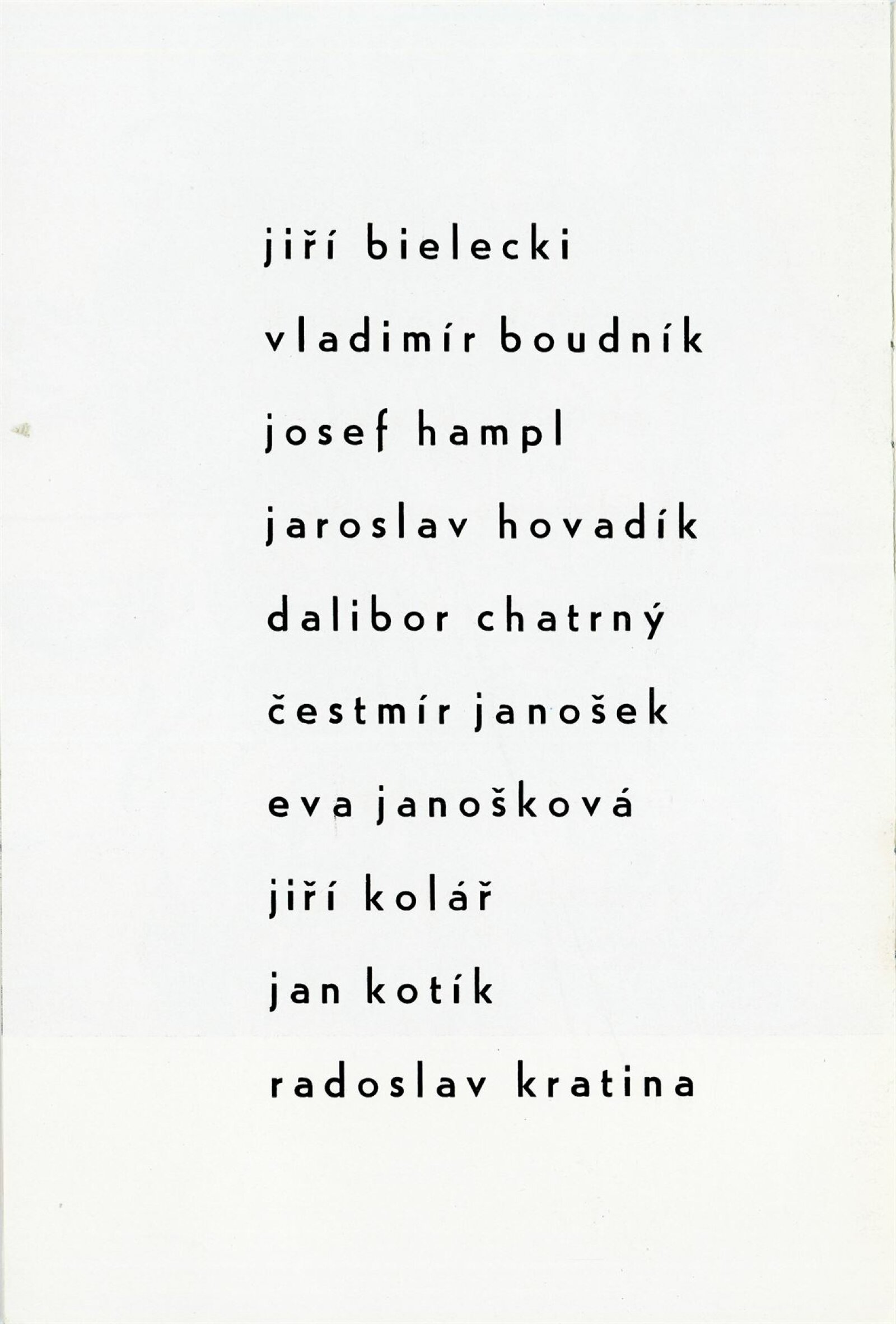 Jiří Bielecki, Vladimír Boudník, Josef Hampl, Jaroslav Hovadík, Dalibor Chatrný, Čestmír Janošek, Eva Janošková, Jiří Kolář, Jan Kotík, Radoslav Kratina, Josef Kremláček, Lubomír Kressa, Ladislav Novák, Eduard Ovčáček, Lubomír Přibyl, Miloš Urbásek, Rudolf Valenta