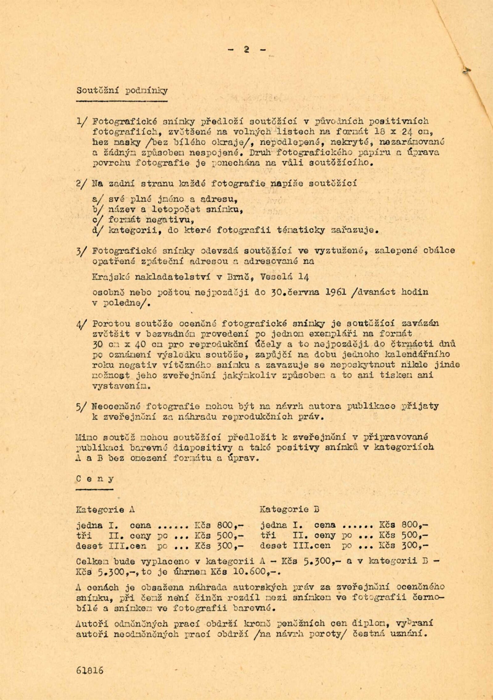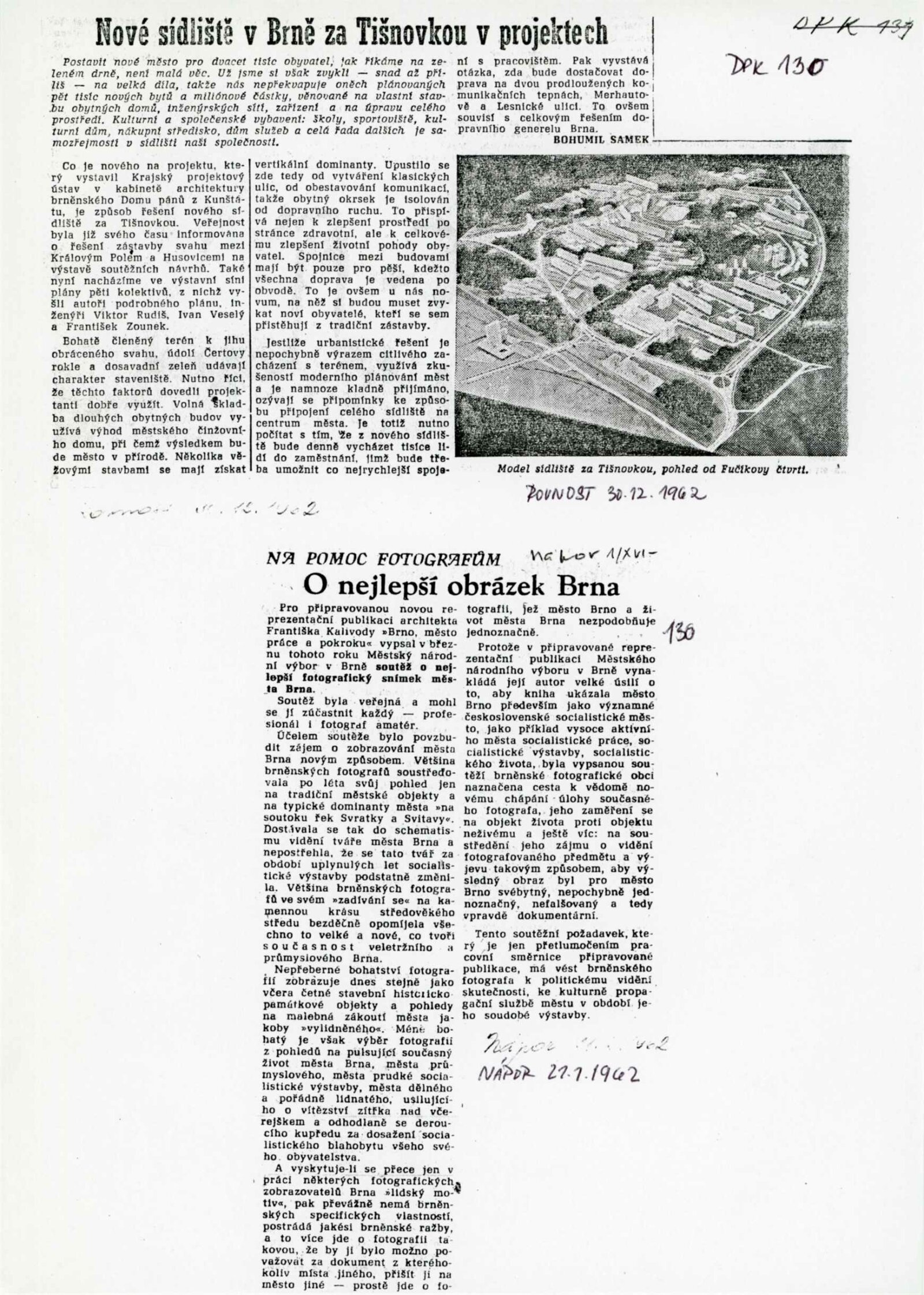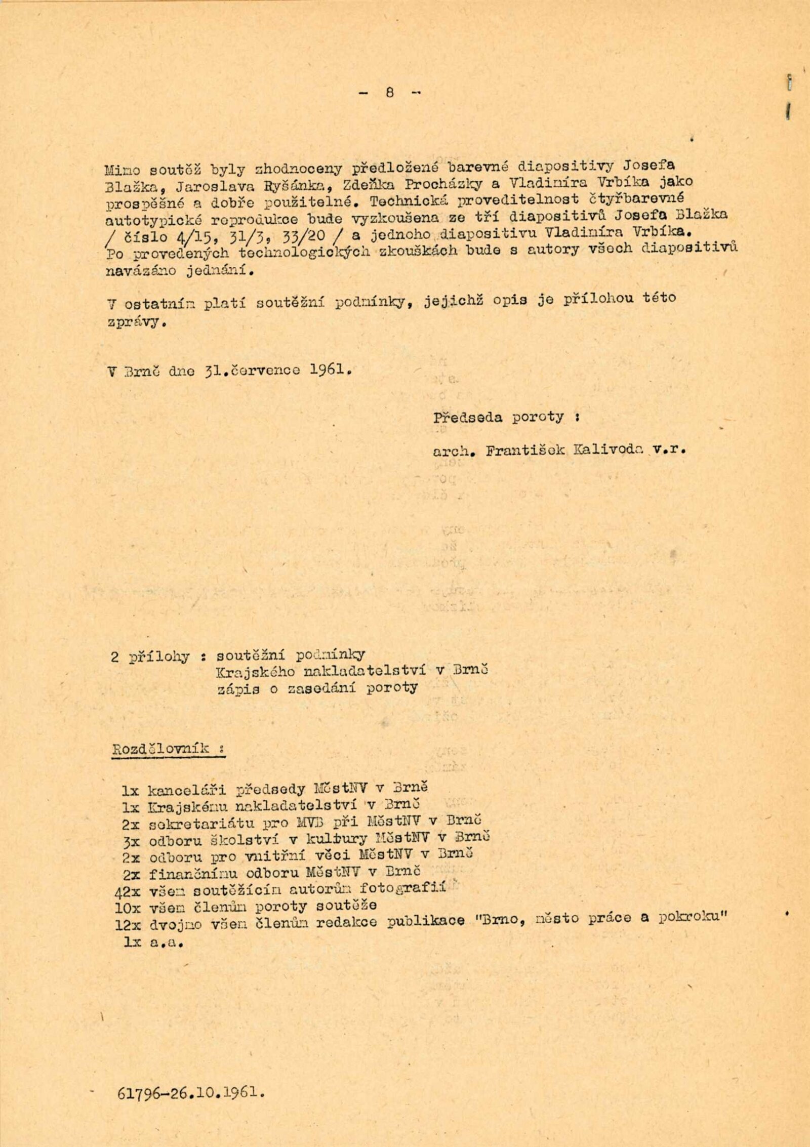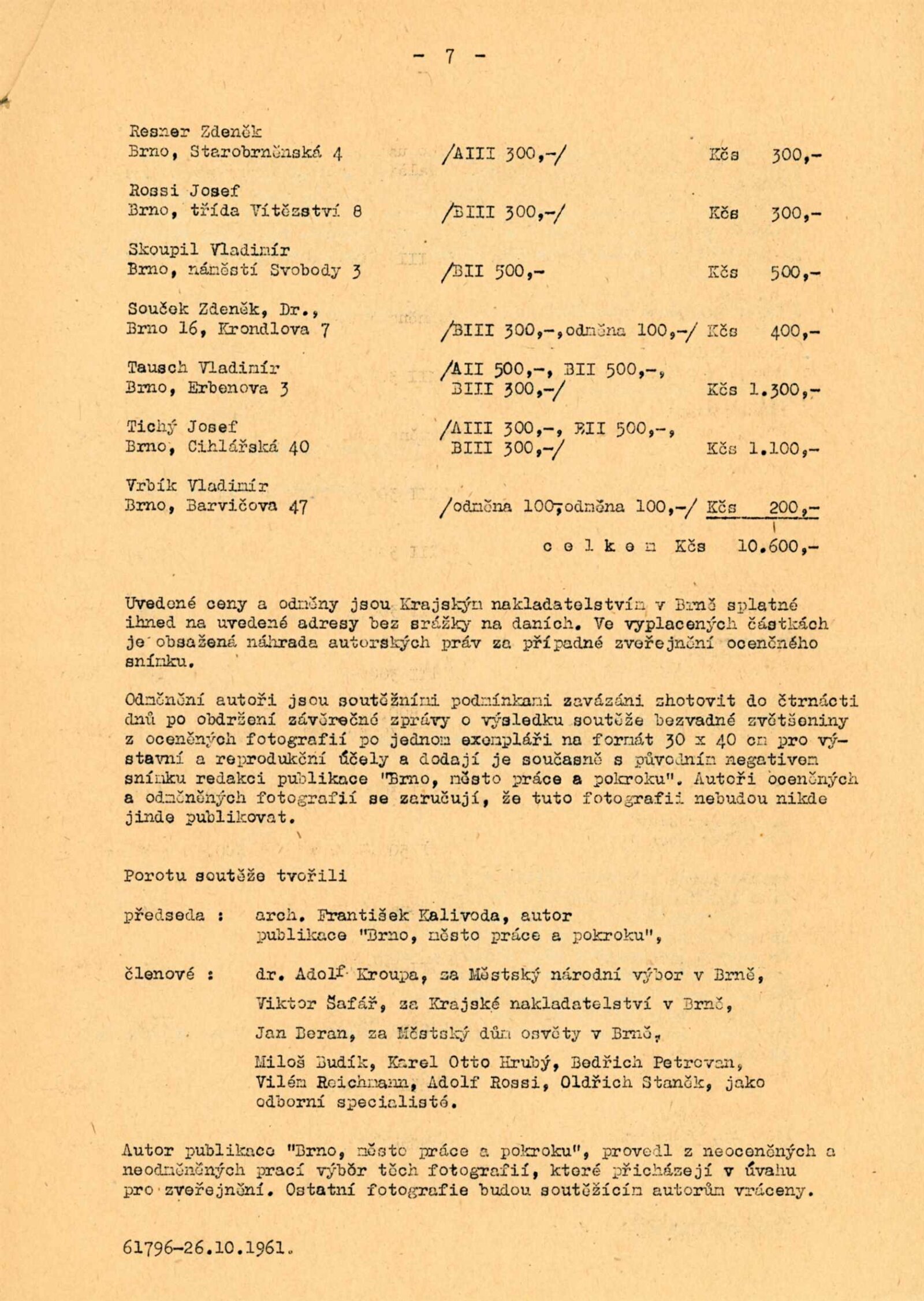 O nejlepší fotografický snímek města Brna: Dům umění města Brna / Dům pánů z Kunštátu, 27. výstava Kabinetu fotografie Jaromíra Funka, 13. 12. 1961 – 1. 1. 1962 / Katalog nebyl vydán. – pozvánka se zprávou o výsledku soutěže, 4 s., obr., DPK 130. – MZK; MG