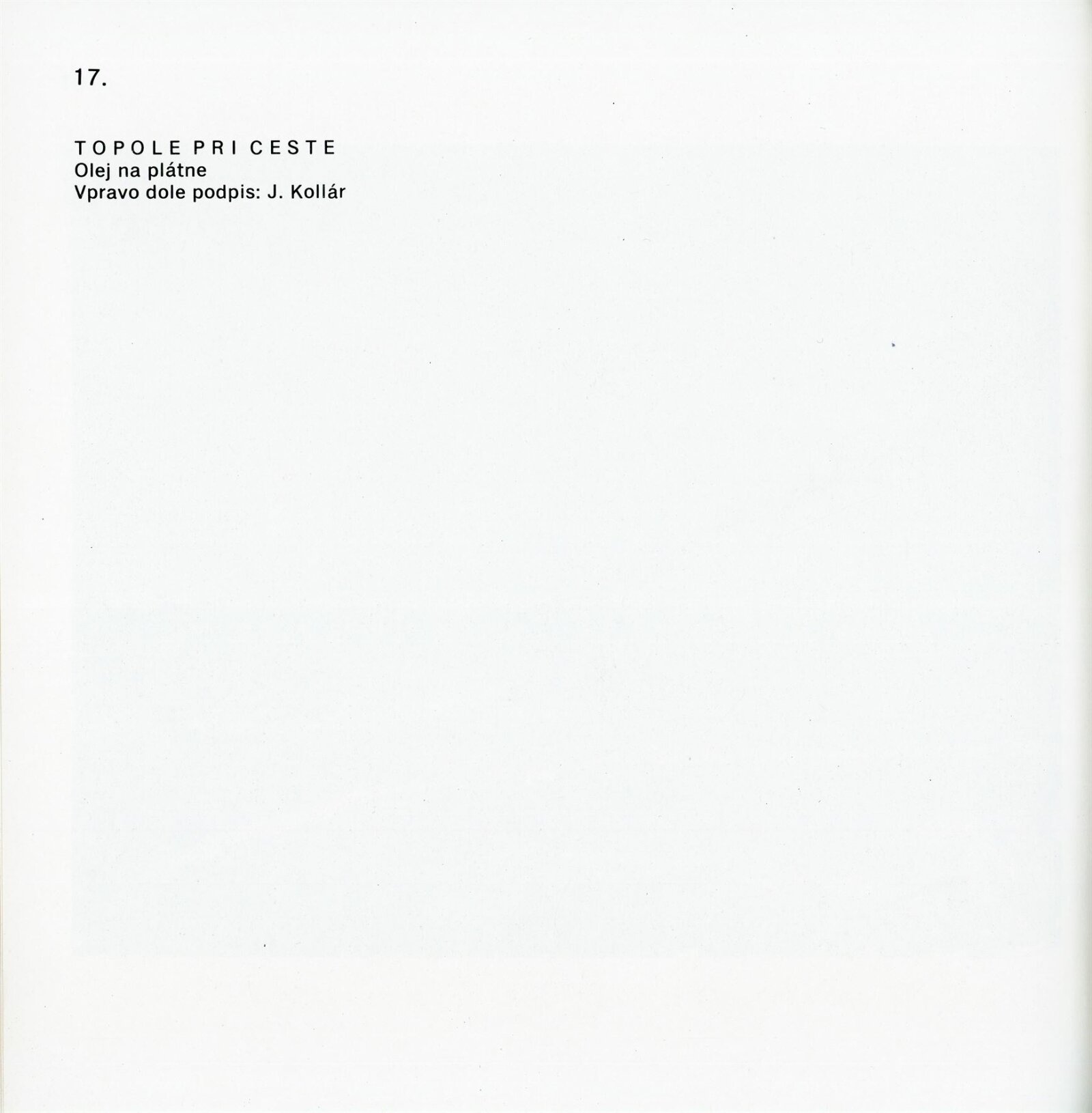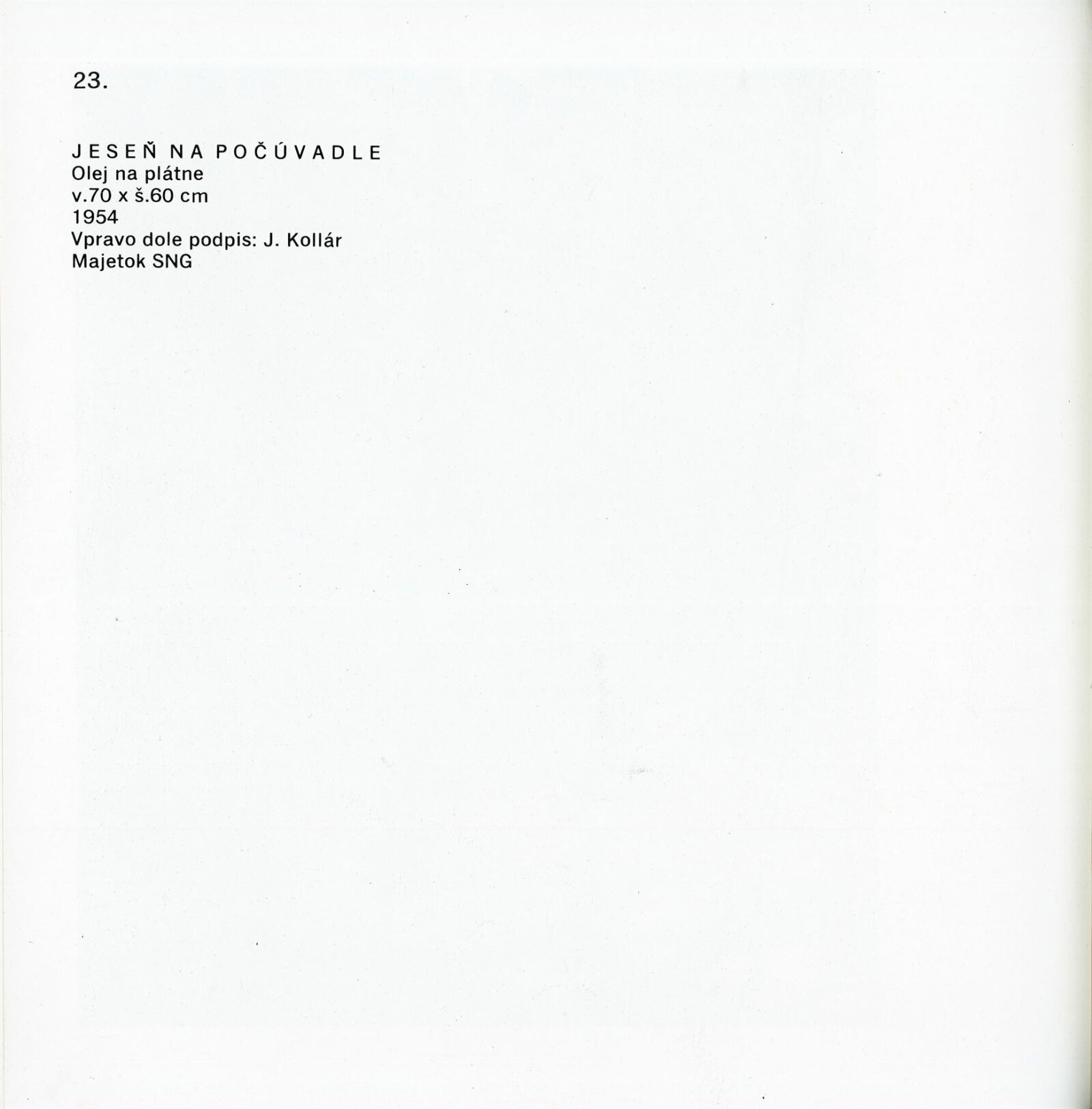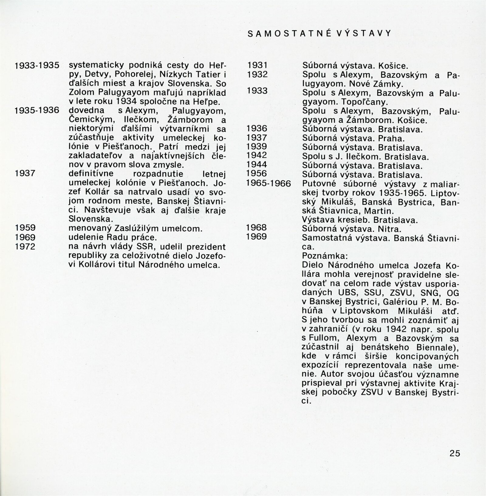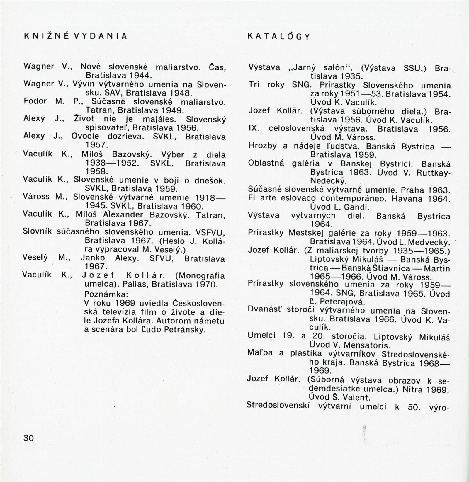 Obrazy národního umělce Jozefa Kollára: Dům umění / Dům pánů z Kunštátu, 22. 4. – 3. 6. 1973 / Převzatý katalog. Jozef Kollár. Súborné dielo: Oblastná galéria Banská Bystrica, únor–březen 1973 / Text Ľudo Petránsky. – Banská Bystrica: Oblastná galéria, 1973. – 32 s., 6 l., obr., 118 s. obr. příl., životní data, výstavy, bibliografie, DPK 537