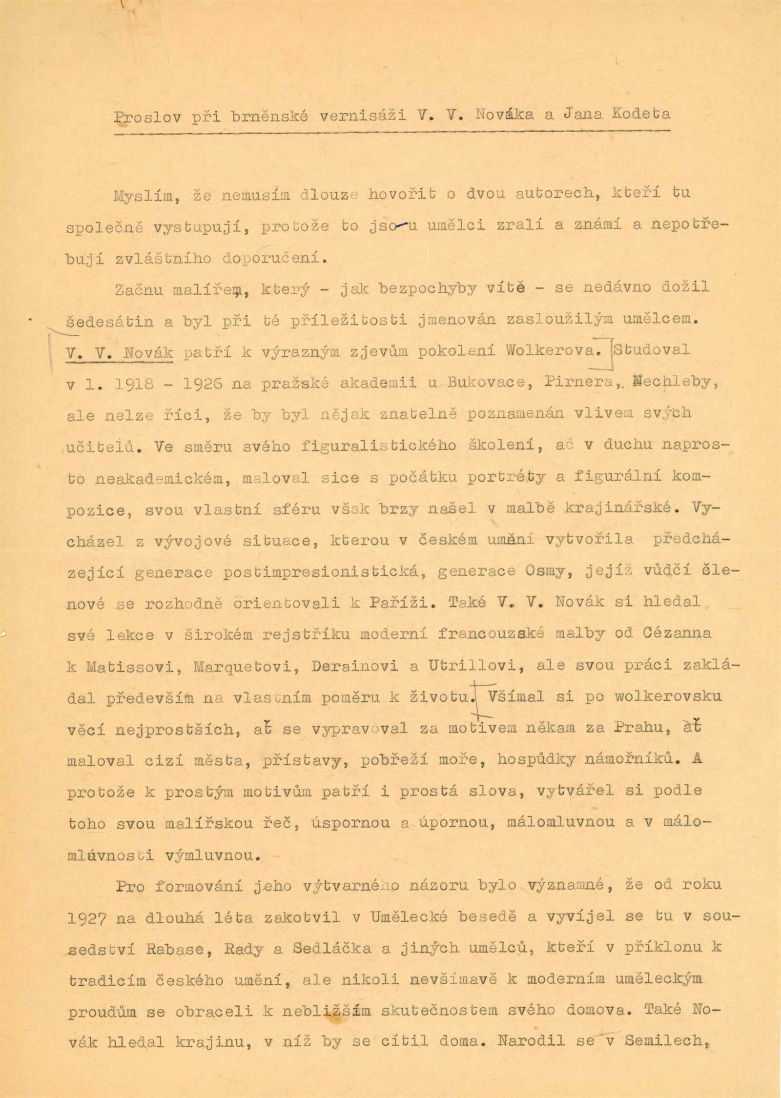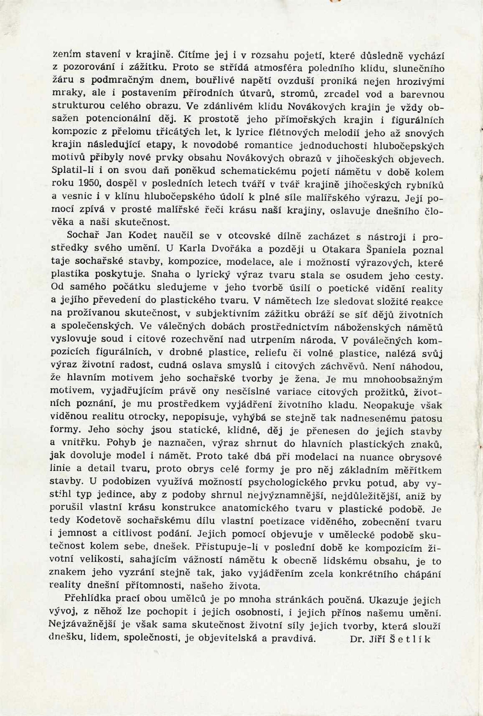 Obrazy Václava Vojtěcha Nováka. Plastiky Jana Kodeta: Dům umění, hala, 5. 11. – 3. 12. 1961 / Převzatý katalog. Obrazy V. V. Novák: Galerie umění Karlovy Vary, 17. 8.– 15. 10. 1961 / Text: Jiří Šetlík. Zvratmo; Plastiky J. Kodet: Galerie umění Karlovy Vary, 27. 8. – 15. 10. 1961 – Karlovy Vary: Galerie umění, 1961. – 16 s., obr., DU 407. – MZK; MG