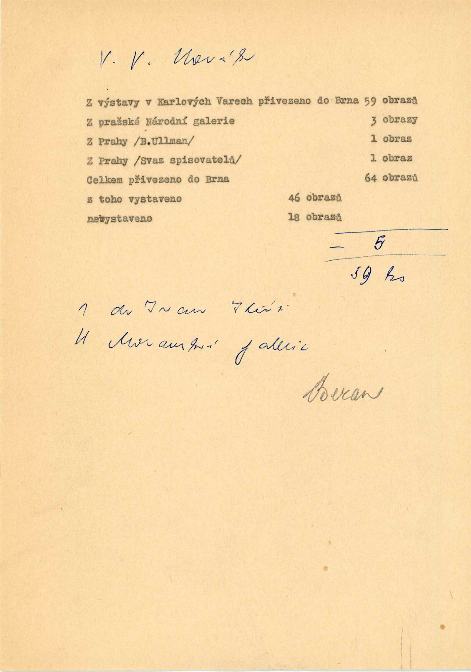 pozvánka, fotografie z vernisáže, zahajovací projev (Miroslava Míčka), soupis děl, korespondence (o poškození plastiky Jana Kodeta, provozní korespondence), podmínky o pořádání výstavy, protokol, recenze v tisku, katalog (z Galerie umění Karlovy Vary),