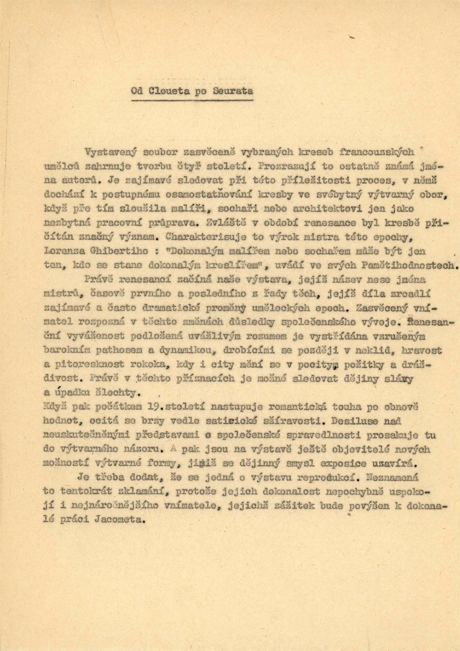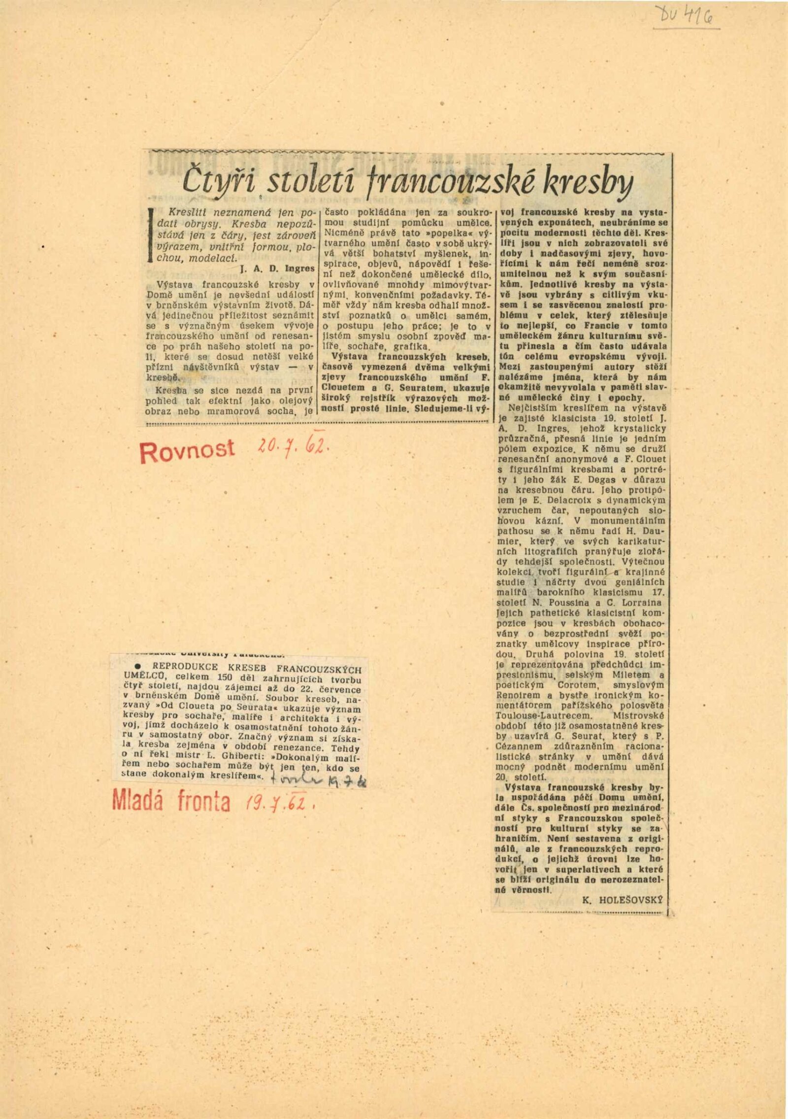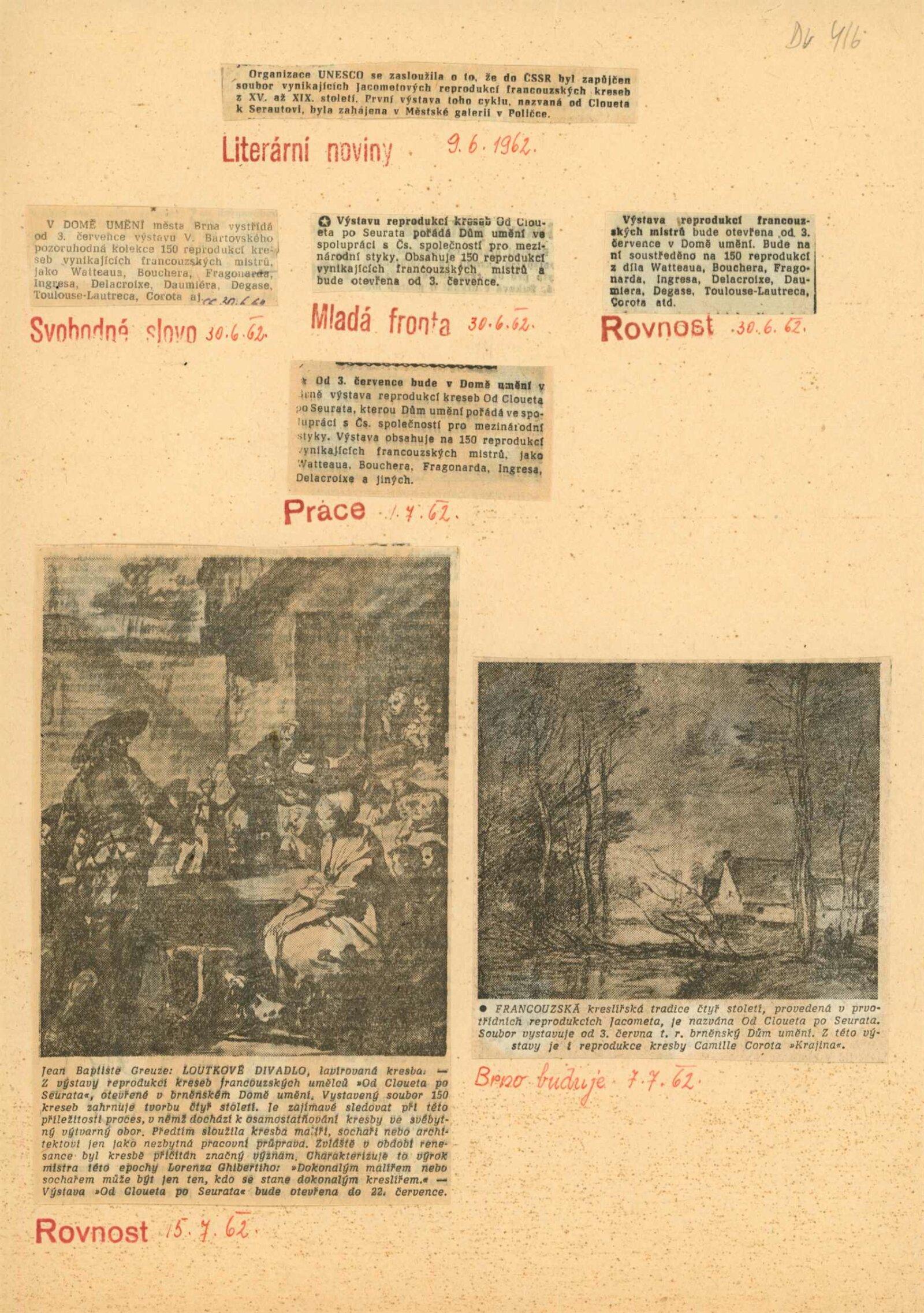 text o výstavě, seznam děl, korespondence (o reprízách v Ostravě, Olomouci), recenze v tisku