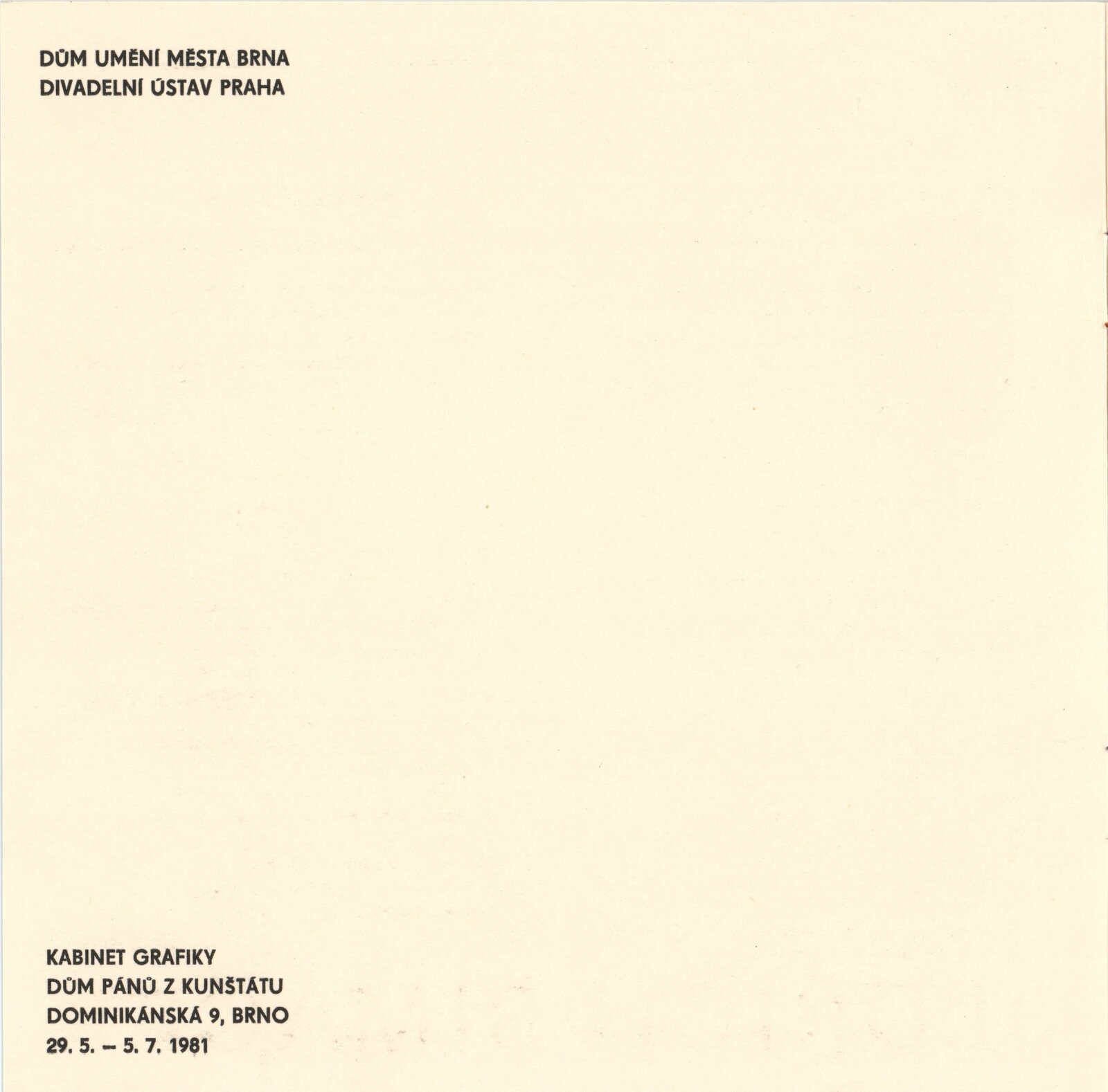 Oldřich Šimáček. Scénografie: Dům umění / Dům pánů z Kunštátu, Kabinet grafiky, 29. 5. – 5. 7. 1981 / Text: Zuzana Ledererová. – Brno: DUmB, 1980. – 12 s., obr., seznam scénografie 2 s., DPK 759. – MZK; MG