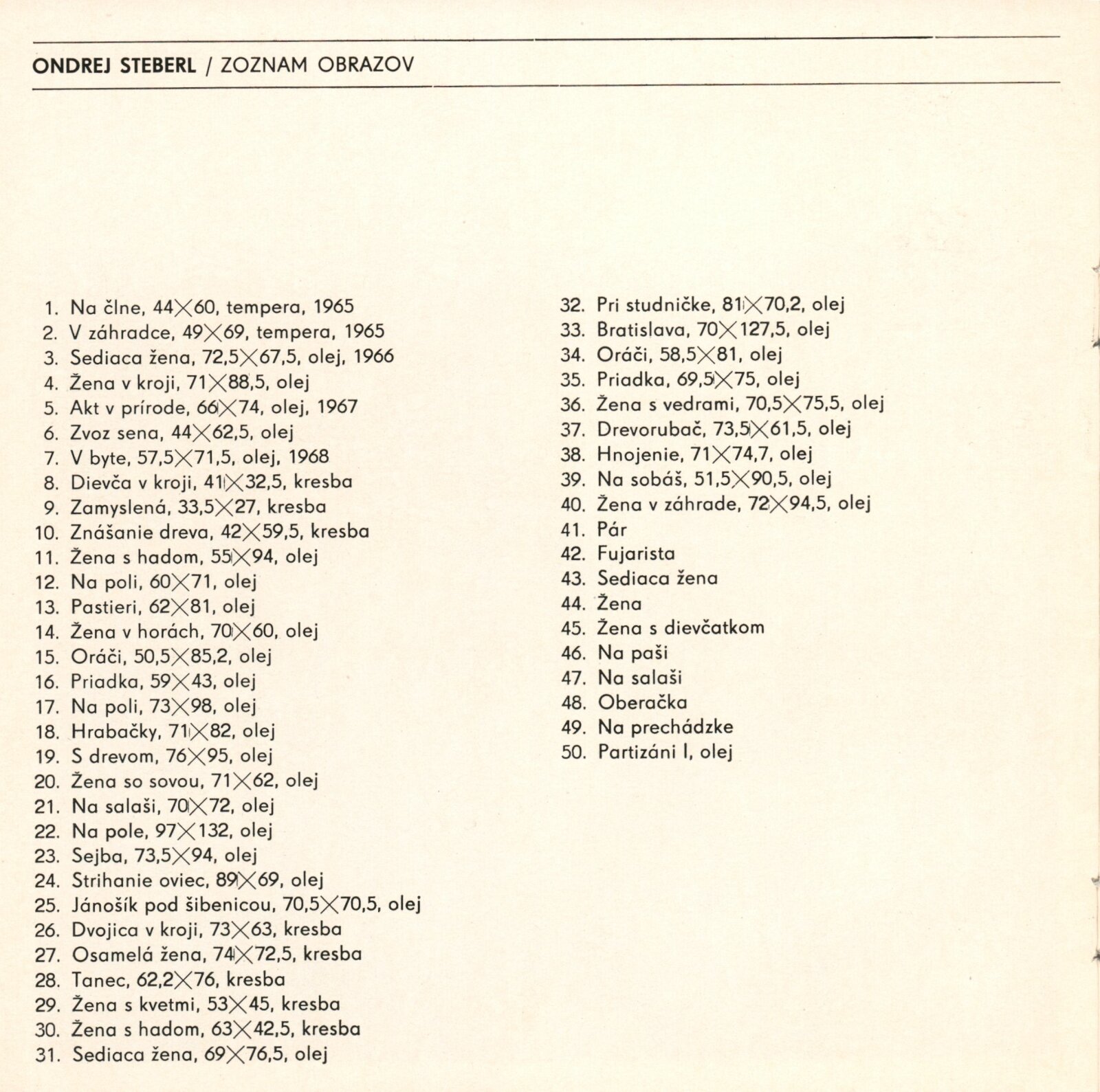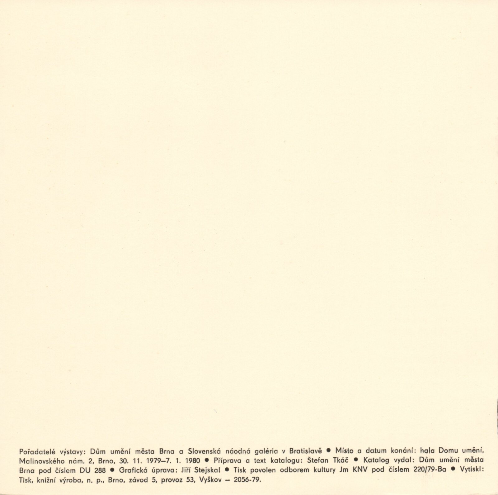 Ondrej Steberl. Obrazy: hala Domu umění 2. 12. 1979 – 7. 1. 1980 / Text Štefan Tkáč. - Brno: DUmB, - 9 s., obr. Seznam výstav. DU 702; MG; MMB