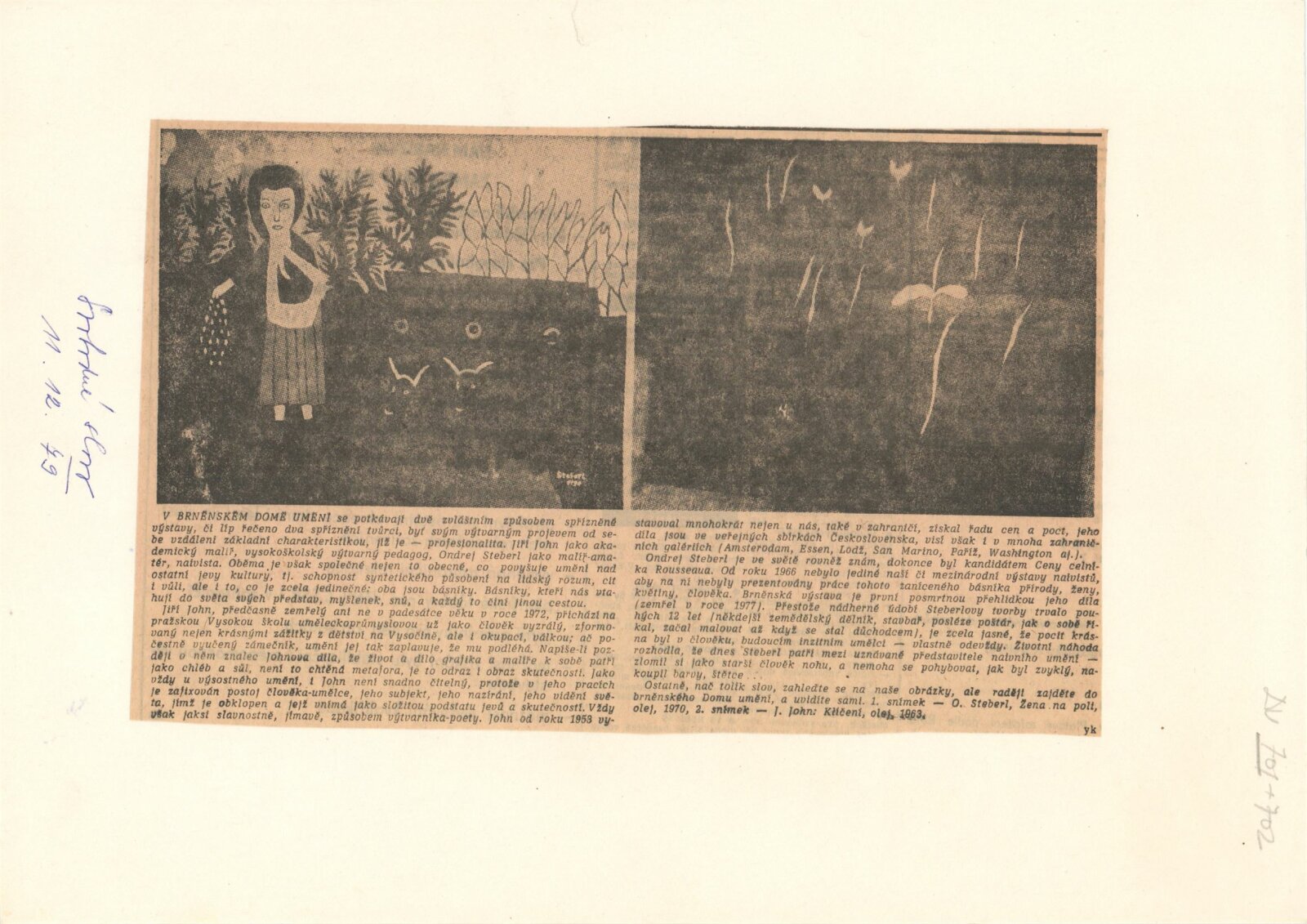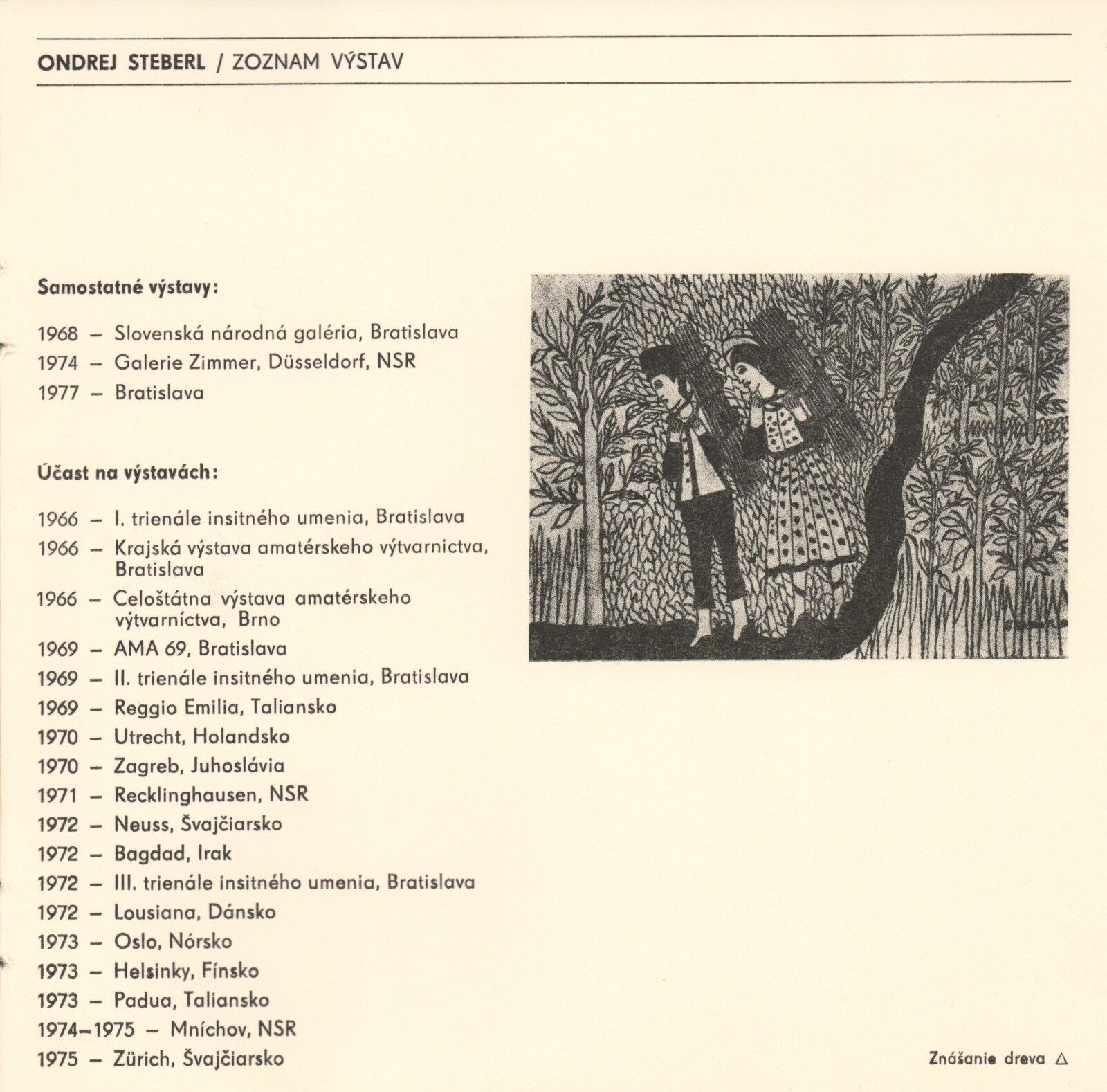 pozvánka, katalog, strojopisy pozvánky a katalogu, fotografie děl, pojistné seznamy děl, provozní korespondence (Štefan Tkáč, žádost o povolení tisku katalogu atd.), reversy, recenze v tisku, katalog výstavy Ondreje Steberla v Bratislavě roku 1977