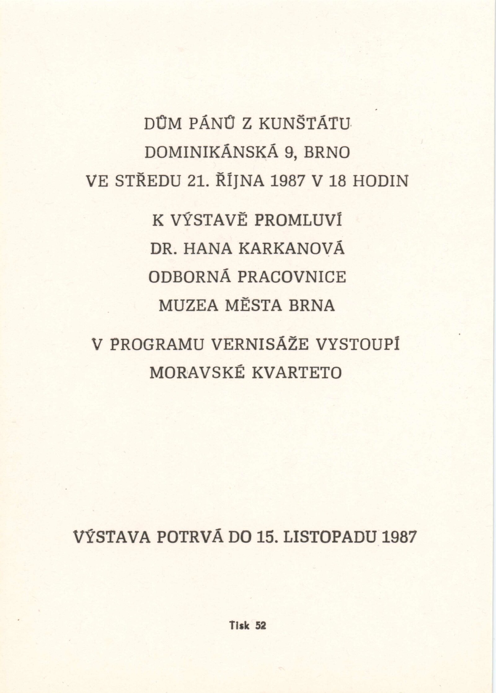 pozvánka, katalog, strojopis, fotografie vystavených děl, provozní korespondence, žádost a potvrzení o konání výstavy, hospodářská smlouva, recenze v tisku