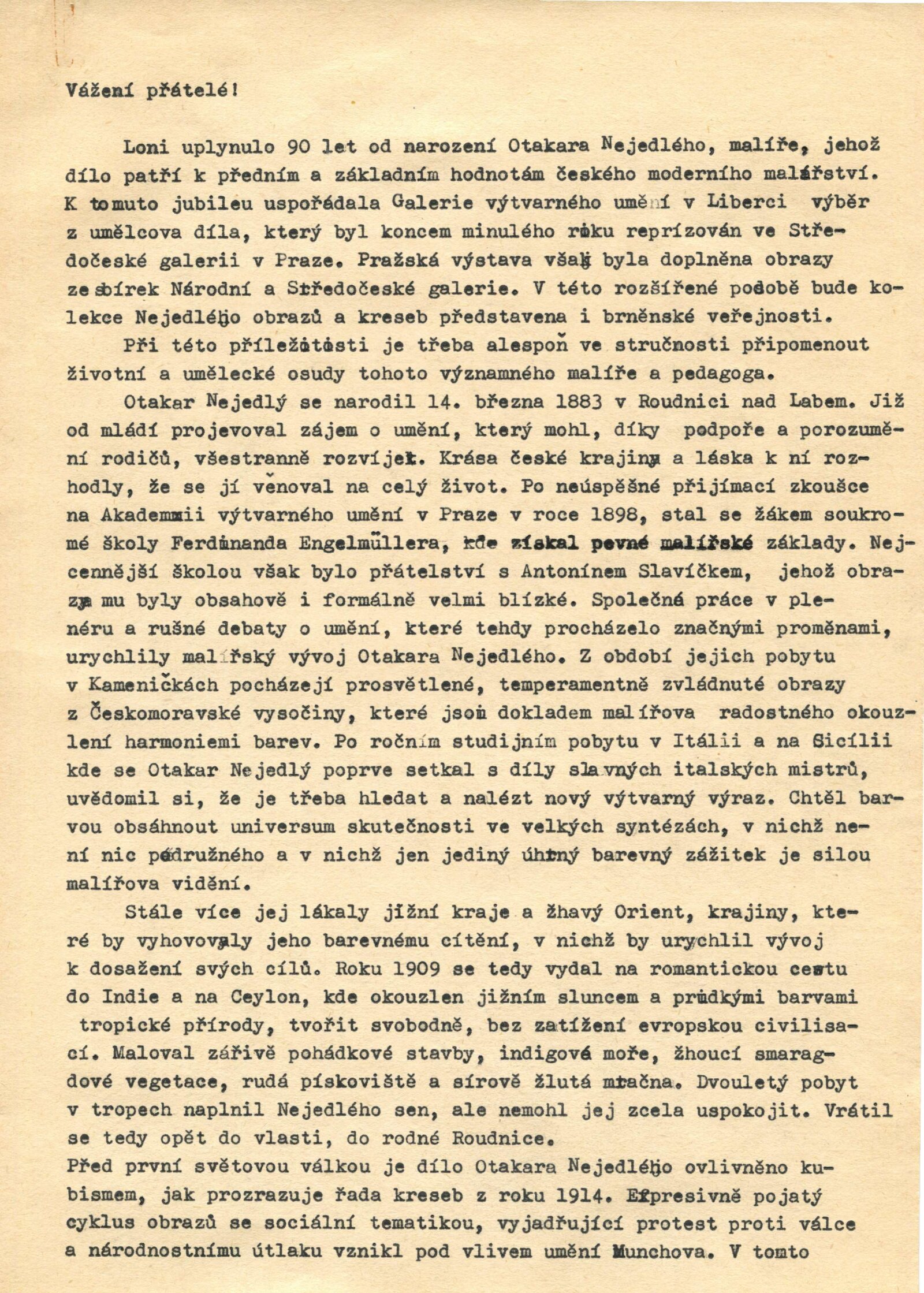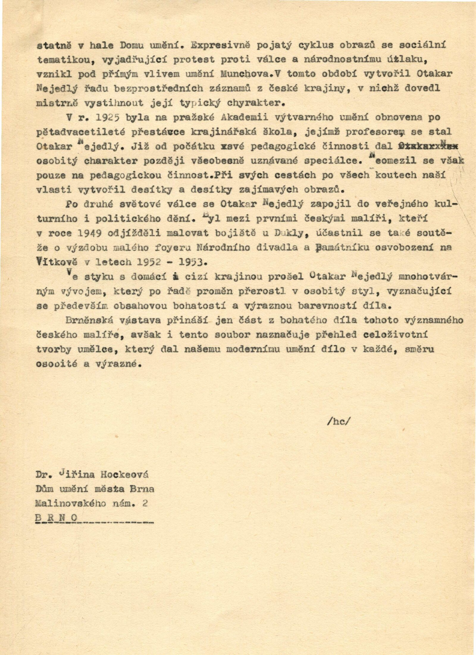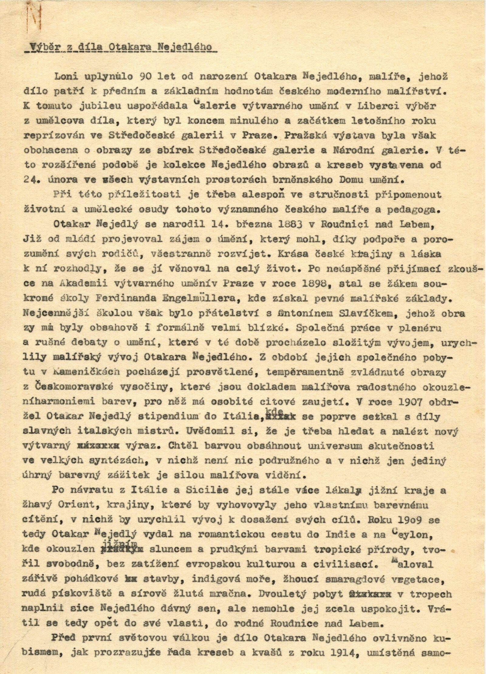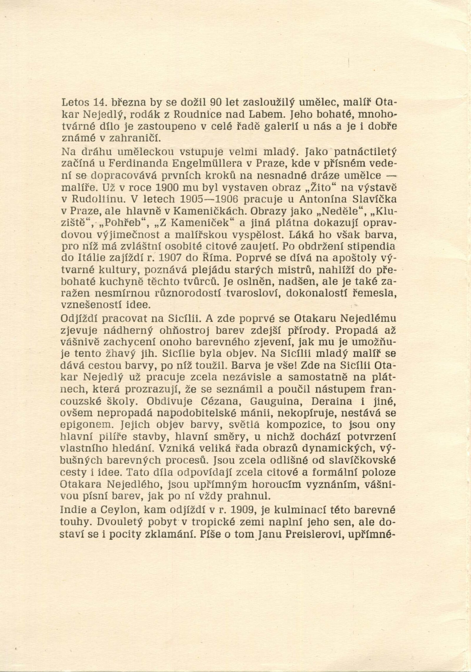 Otakar Nejedlý. Výběr z díla: Dům umění města Brna, 24. 2. – 31. 3. 1974 / Text: Václav Trefil. – Praha: Středočeská galerie, 1974. – skládačka 6 s., volně 6 l. obr. příl., seznam vystavených děl 2 s., životopisná data, DU 604. – MZK; MG; MMB