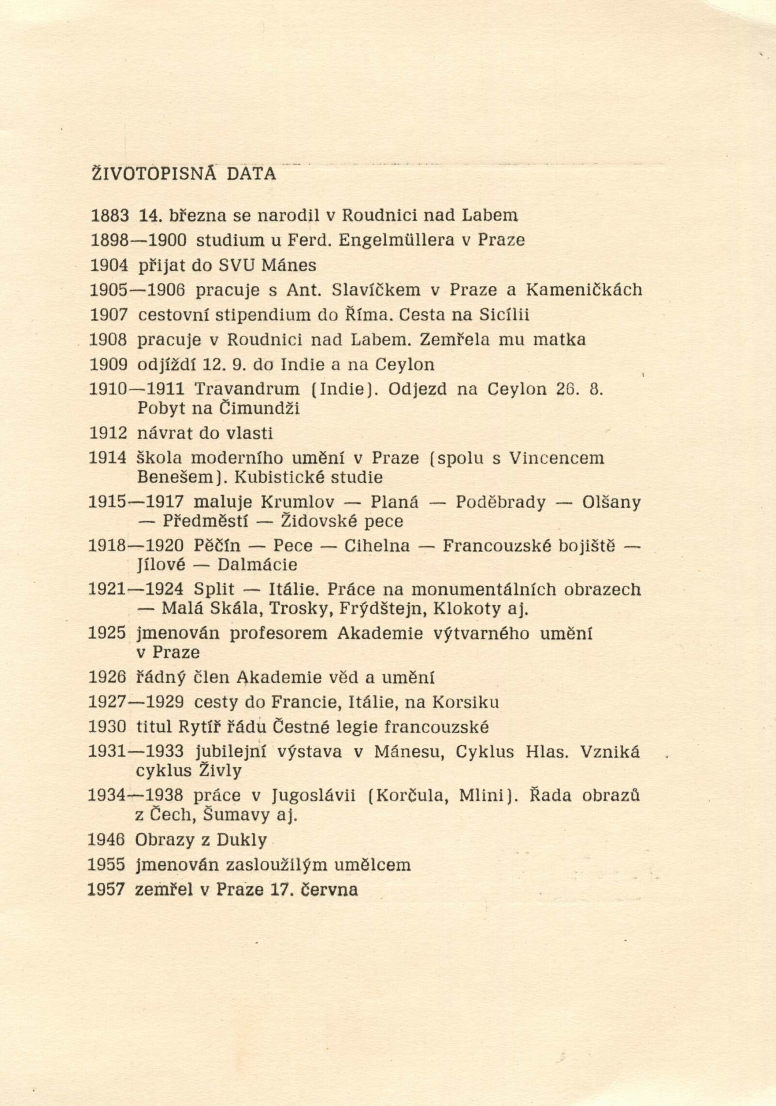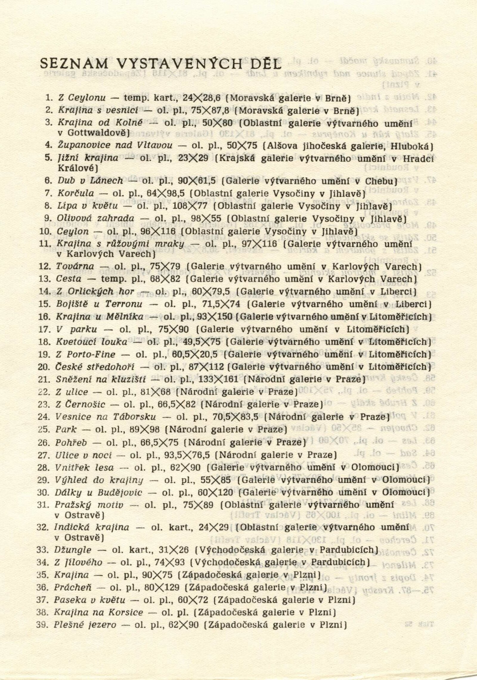 pozvánka, katalog, strojopis textu katalogu, seznamy děl, text Jiřiny Hockeové, smlouva mezi DU a Středočeskou galerií v Praze, reversy, provozní korespondence (instituce, žádost a schválení dotisku katalogu, žádost o povolení výstavy), recenze v tisku