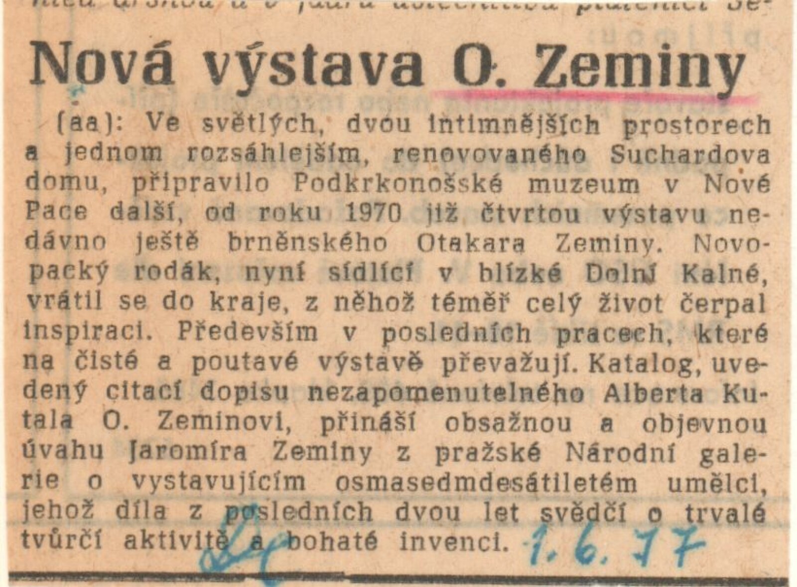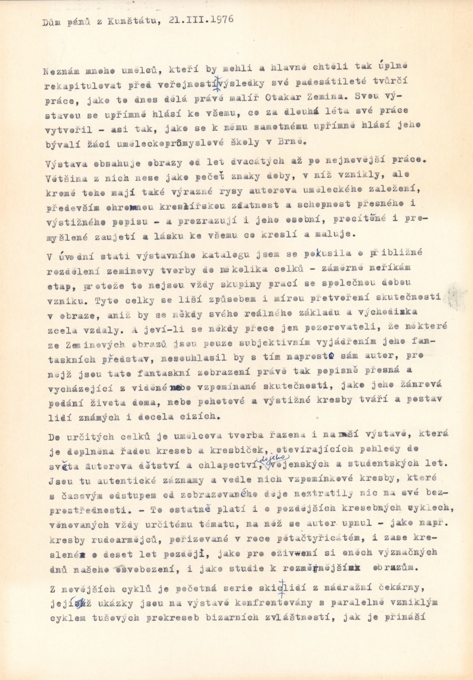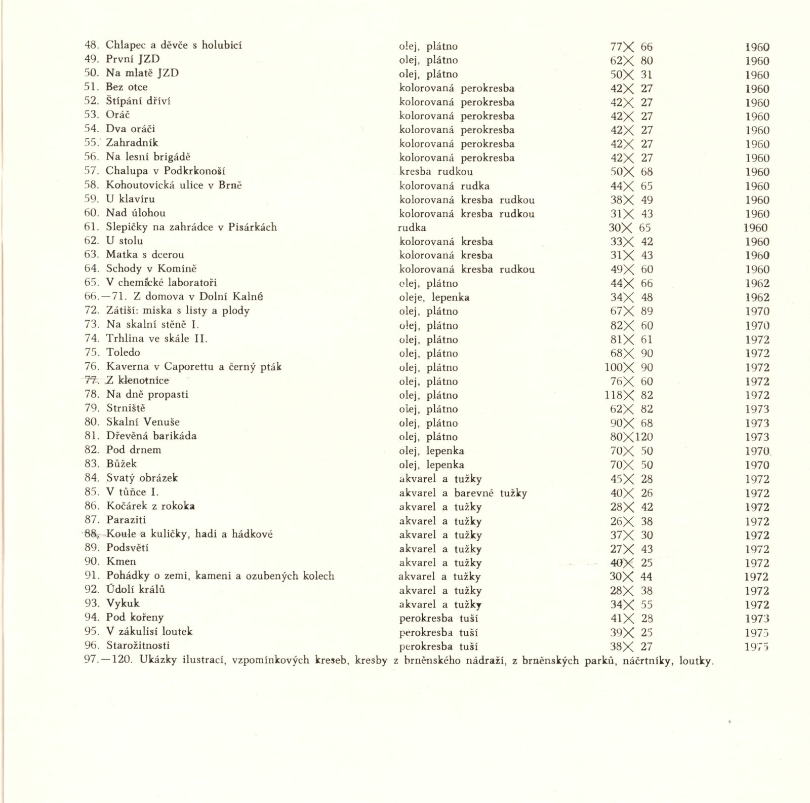 Otakar Zemina. Obrazy z let 1925–1975: Dům umění / Dům pánů z Kunštátu, 21. 3. – 18. 4. 1976 / Text: Nina Dvořáková. – Brno: DUmB, 1976. – 20 s., obr., portrét, životní data, DPK 626. – MZK; MG; MMB