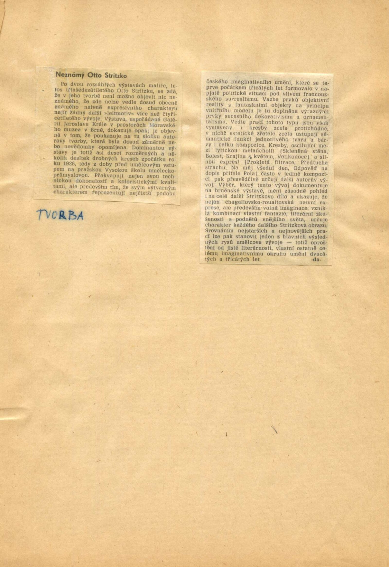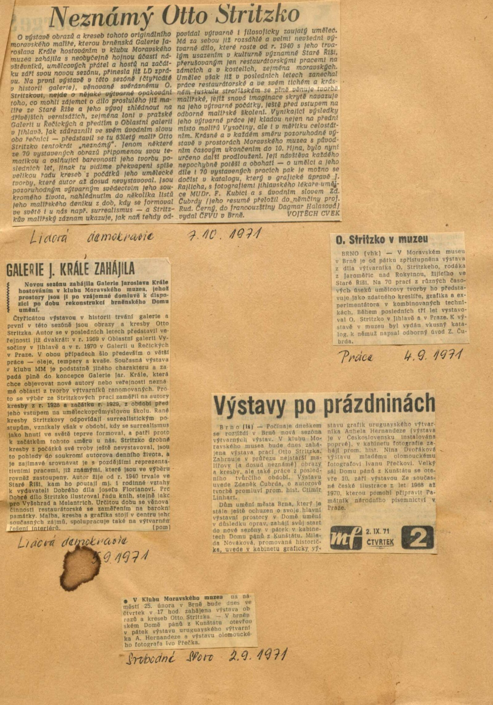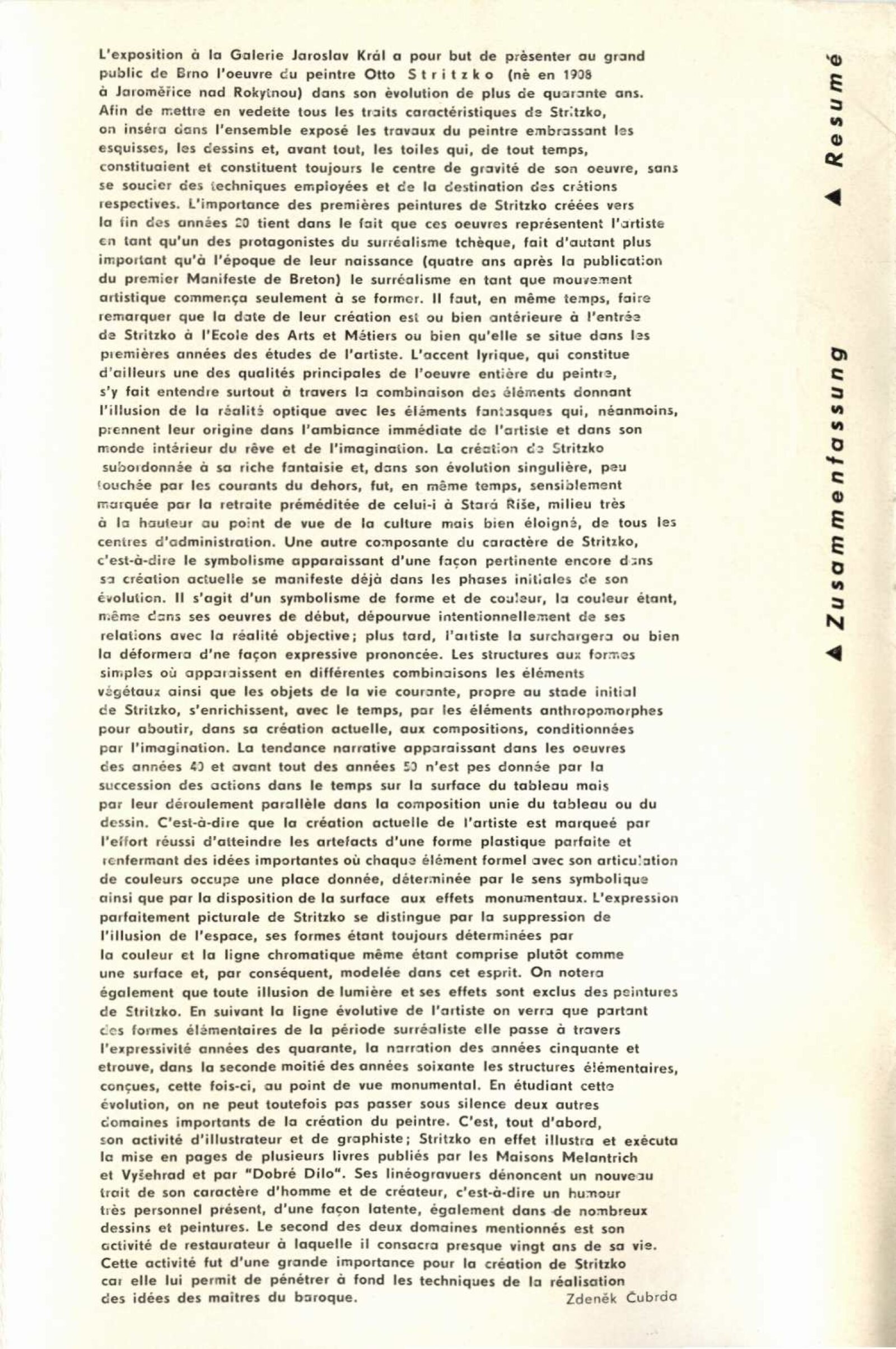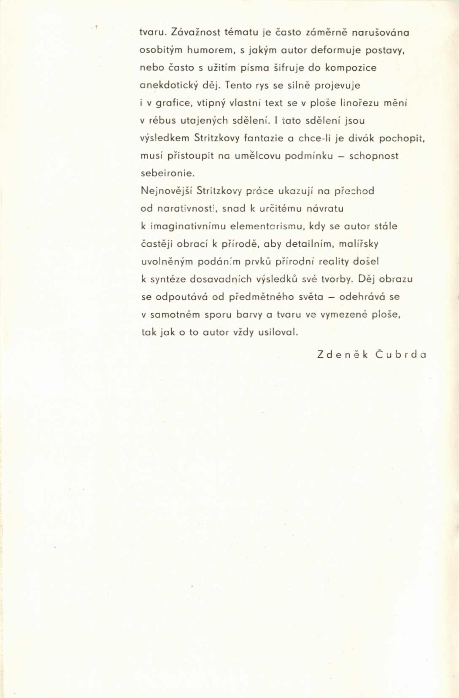 Otto Stritzko. Obrazy a kresby: Dům umění, 40. výstava v Galerii Jaroslava Krále, 3. 9. – 10. 10. 1971 / Text: Zdeněk Čubrda. – Brno: ČFVU, 1971. – 10 s., obr., portrét, životopis. – MZK; MG; MMB