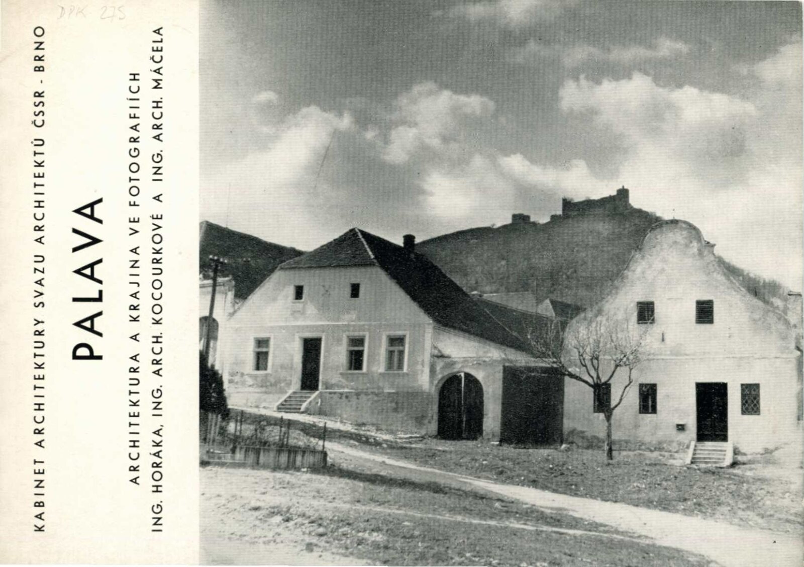 Palava. Architektura a krajina ve fotografiích Ing. Horáka, Ing. arch. Kocourkové a Ing. arch. Máčela: Dům umění města Brna / Dům pánů z Kunštátu, Kabinet architektury Svazu architektů ČSSR, 4. 6. – 4. 7. 1965 / Brno: Svaz architektů ČSSR, 1965. – 4 s., DPK 275
