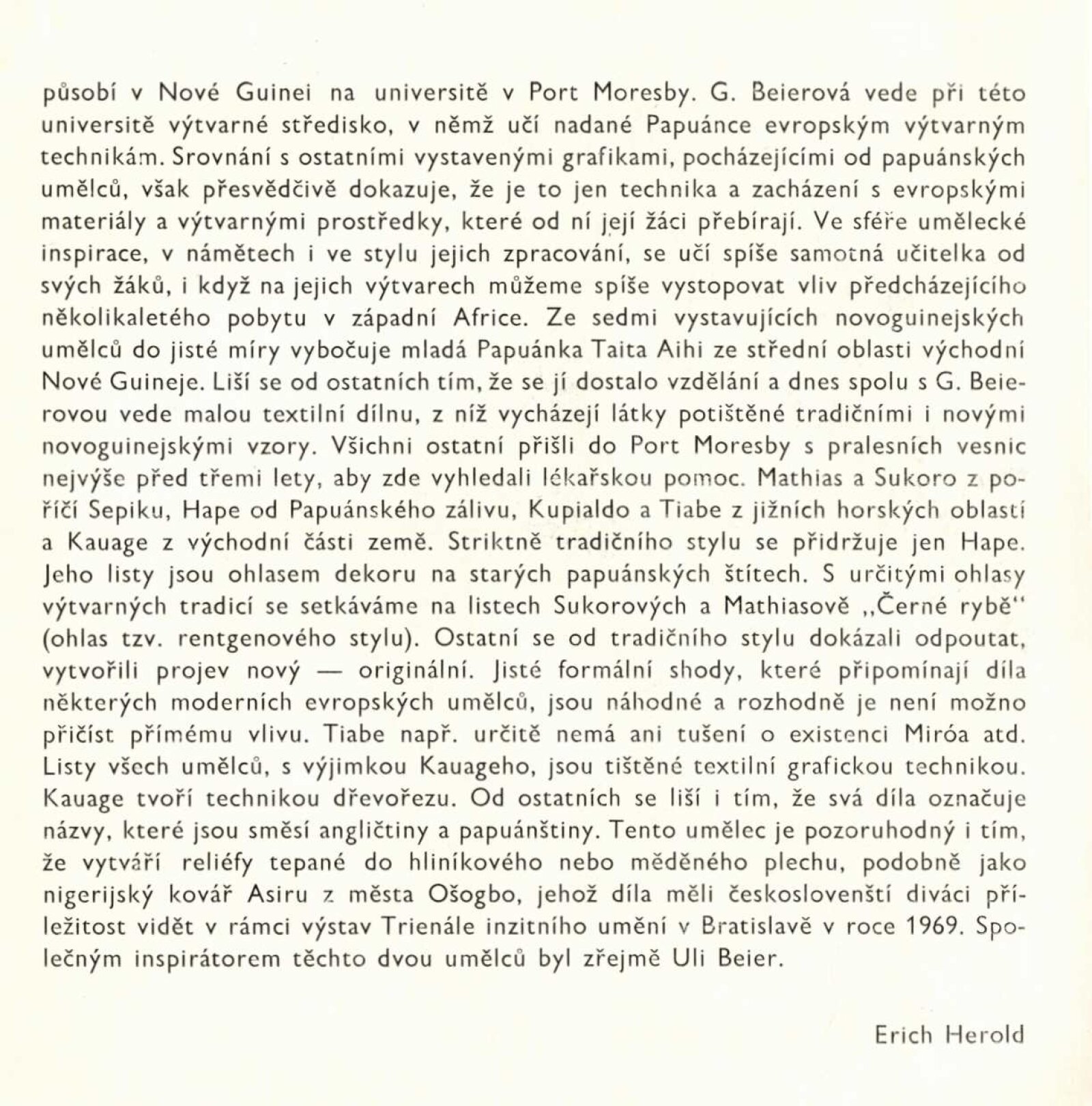 Papuánská grafika: Dům umění města Brna / Dům pánů z Kunštátu, 121. výstava Kabinetu grafiky, 8. 1. – 31. 1. 1971 / Text: Erich Herold. – Brno: DUmB, 1971. – 8 s., obr., DPK 456. – MZK; MG