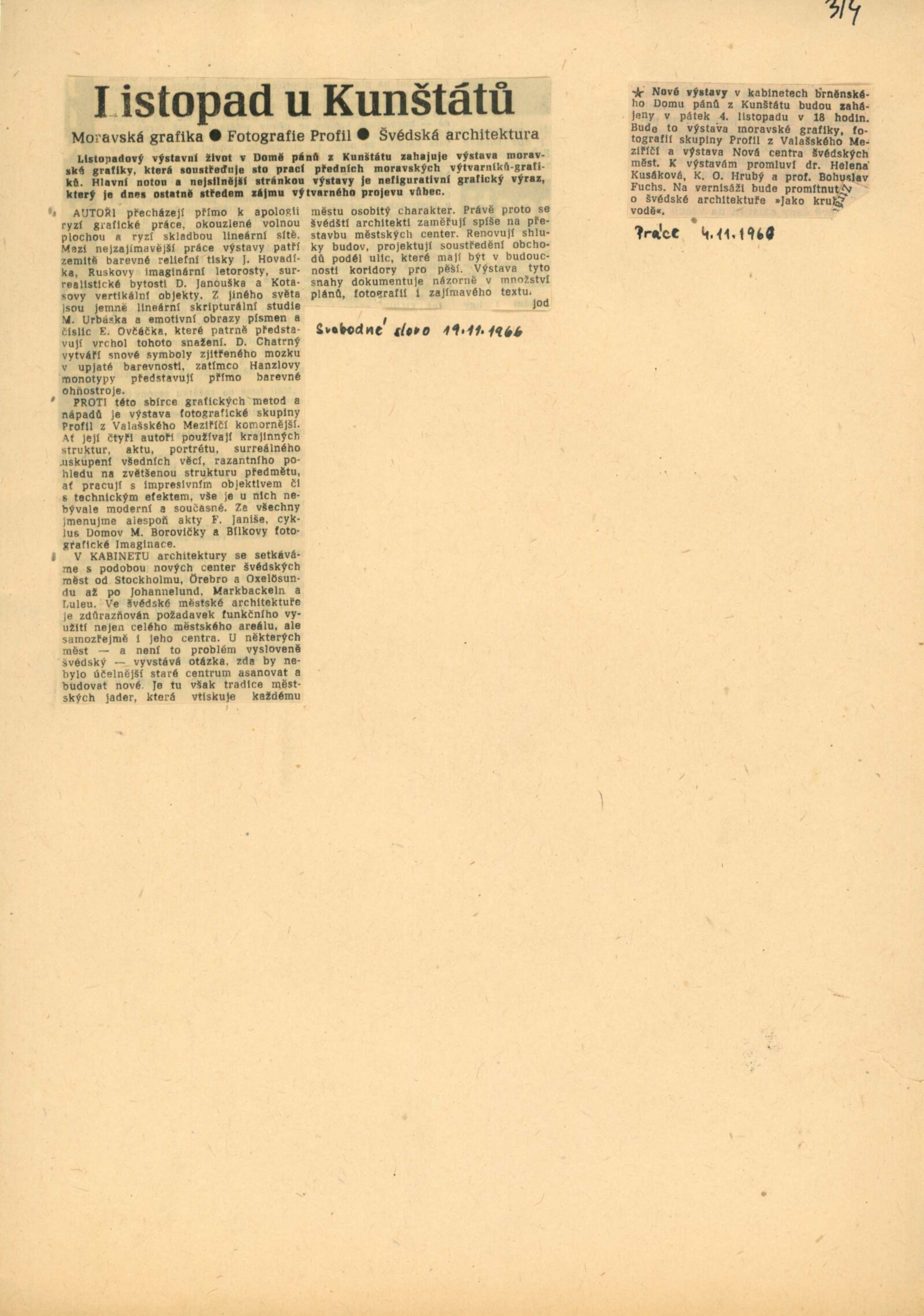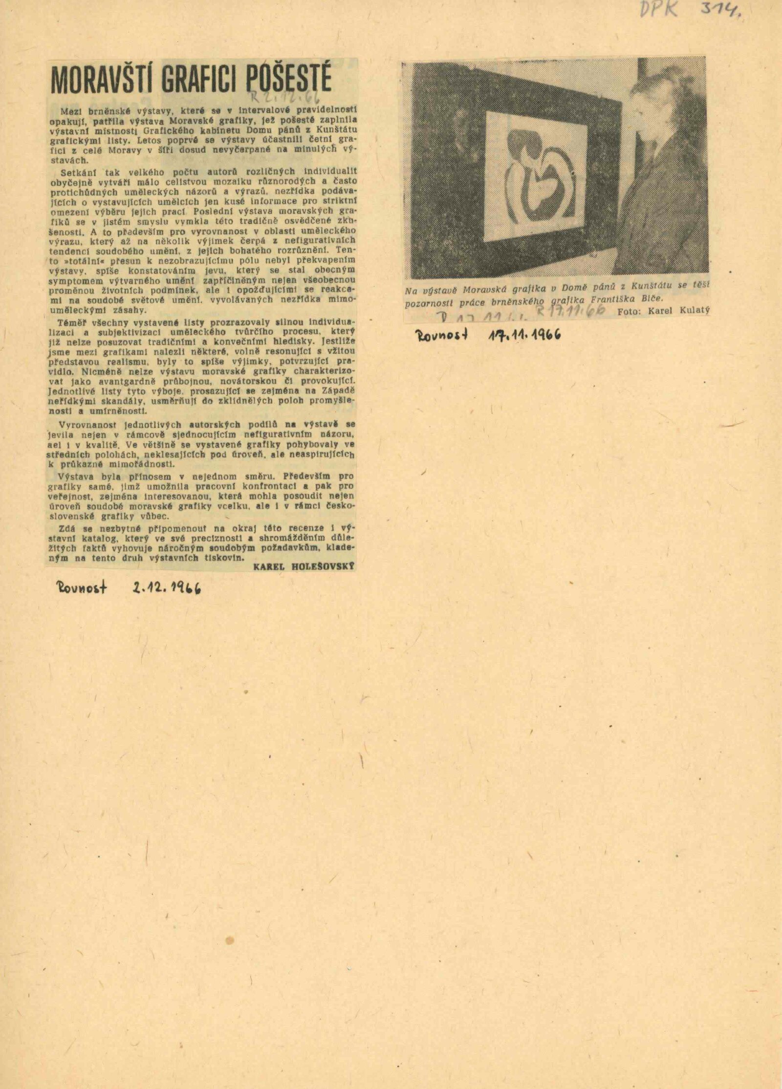 společná pozvánka DPK 314–316, katalog, fotografie (z výstavy, vernisáže), provozní korespondence, recenze v tisku