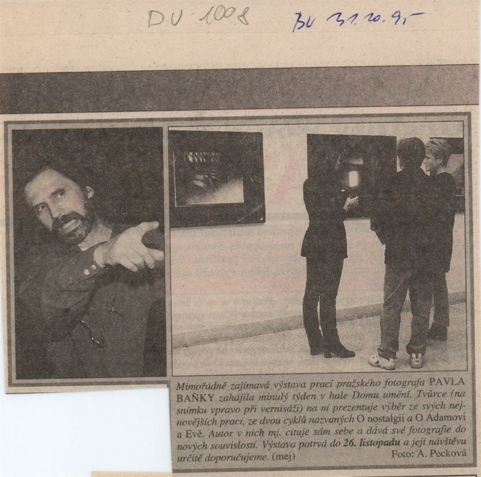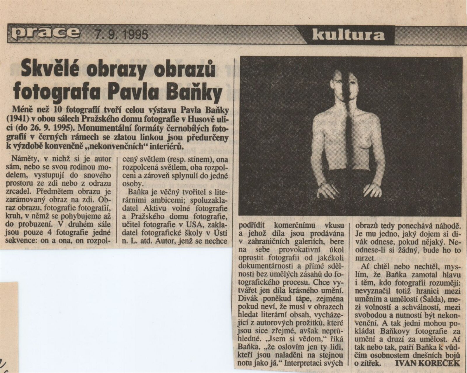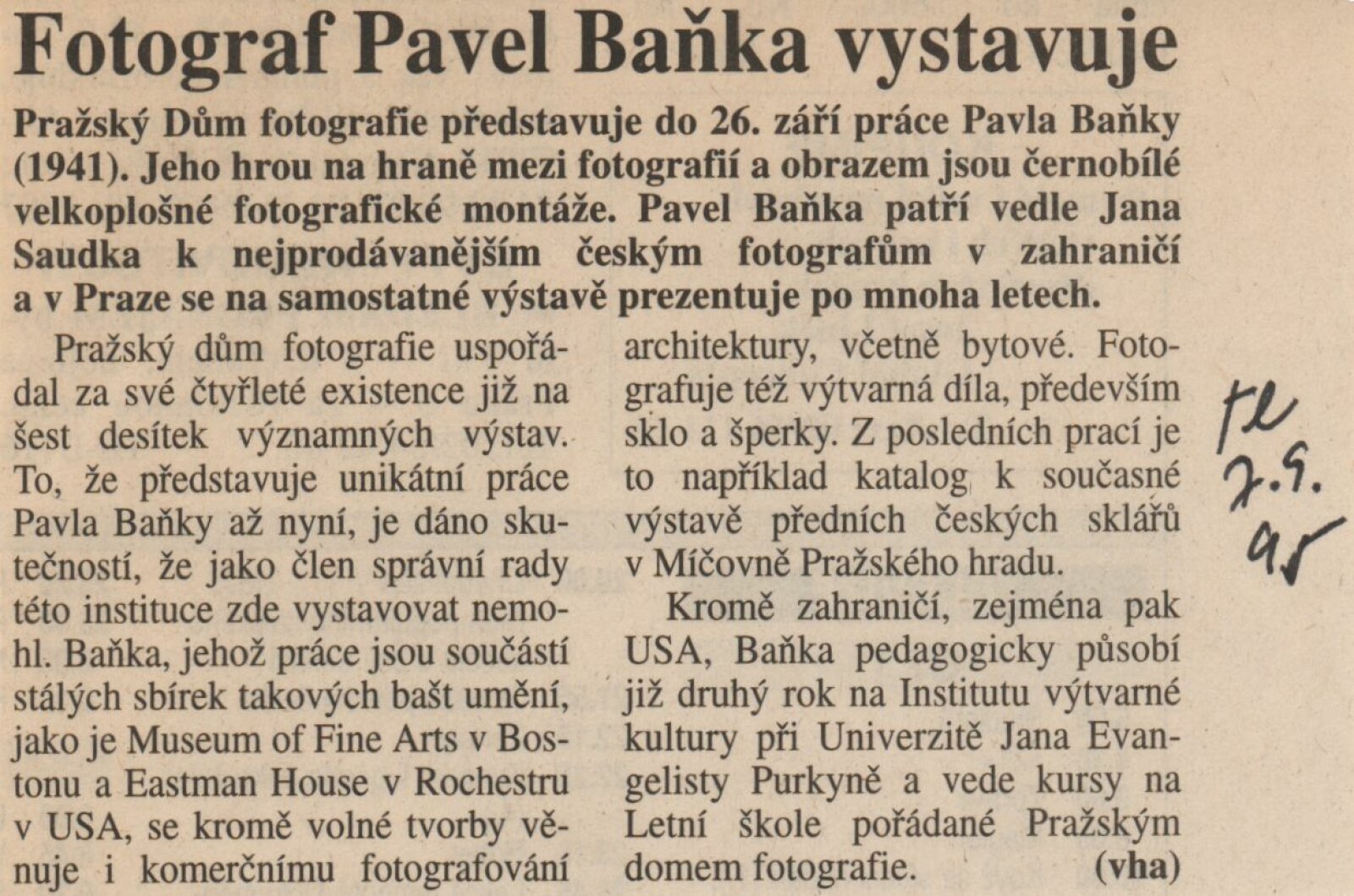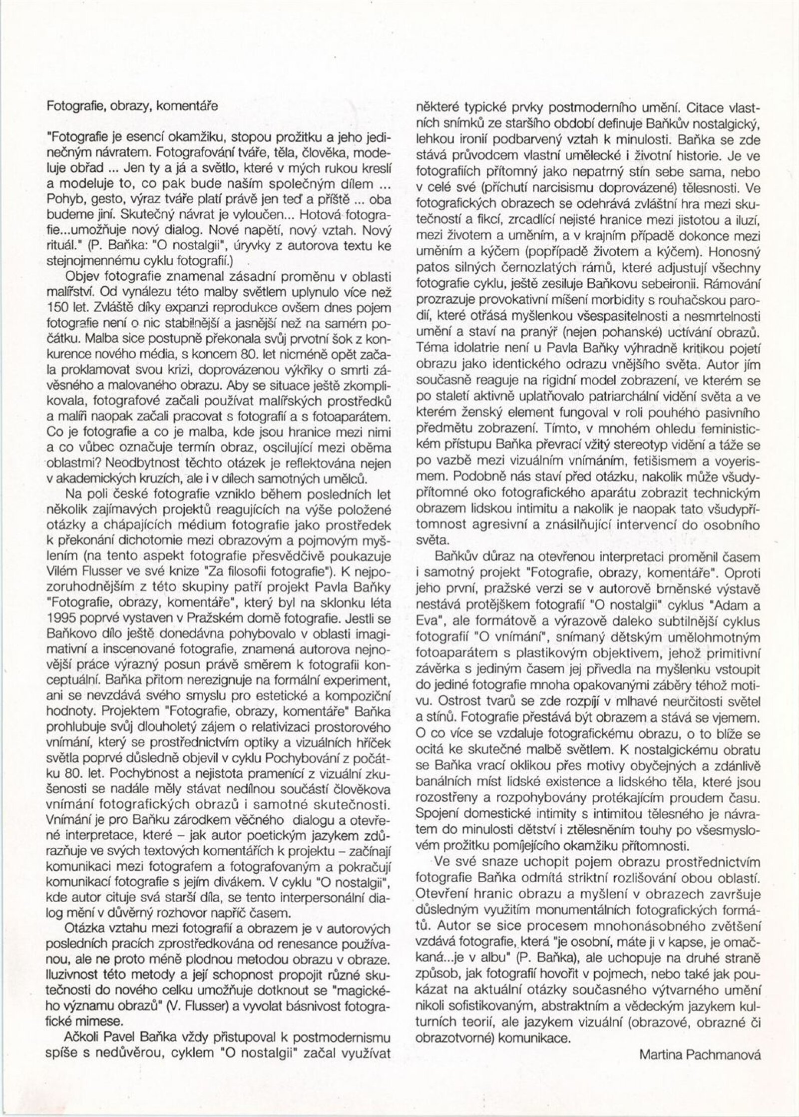 Pavel Baňka. Fotografie: Dům umění města Brna, hala, 19. 10. – 26. 11. 1995 / Text Martina Pachmanová. - Brno: DUmB, - 1 skládačka (6 s., obr.) Portrét, životní data, výstavy, zastoupení ve sbírkách. DU 1008