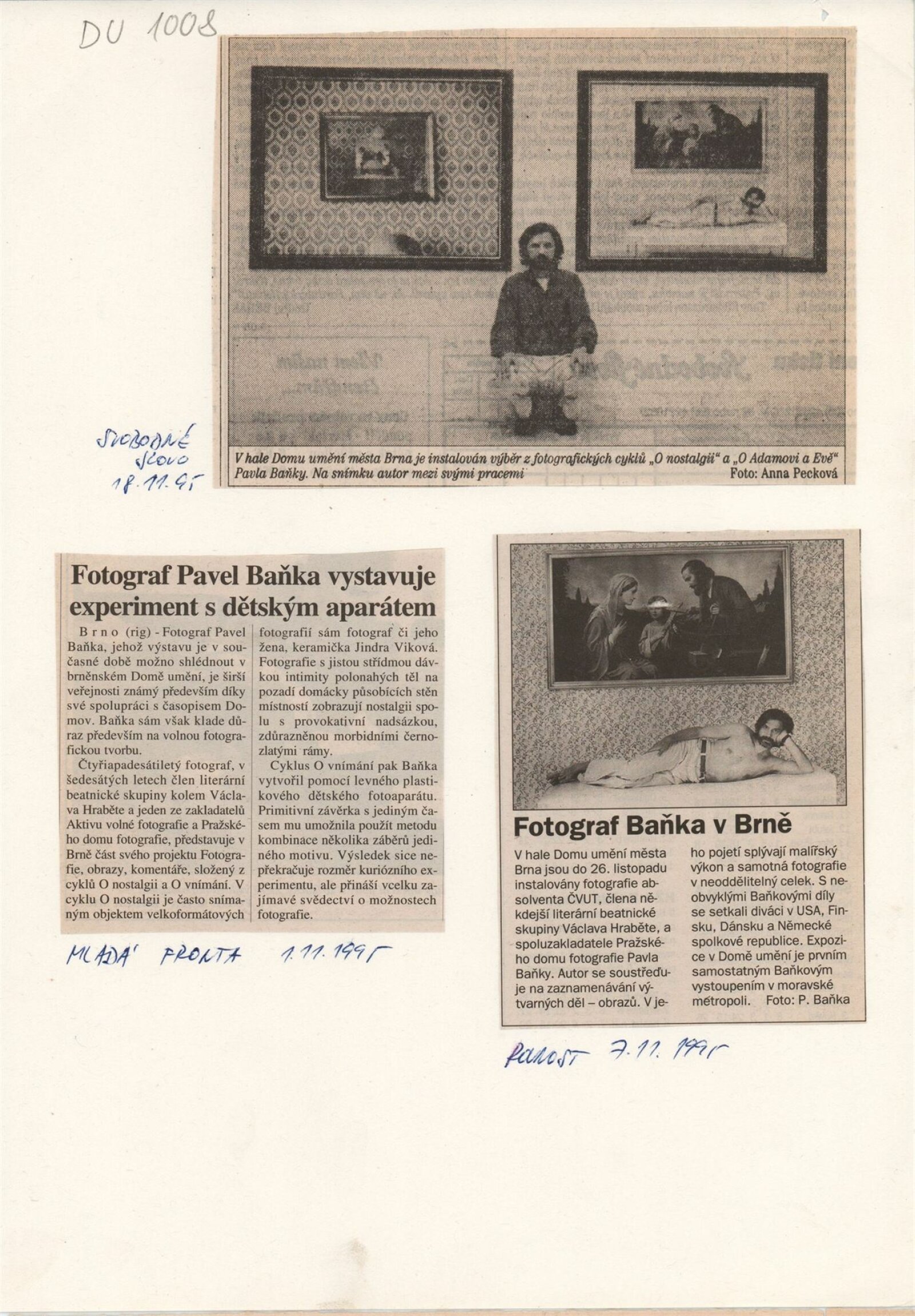 pozvánka, katalog, texty k výstavě, texty ke katalogu, autorské fotografie, popisky fotografií, korespondence, recenze v tisku (i na výstavu v Praze -1995)