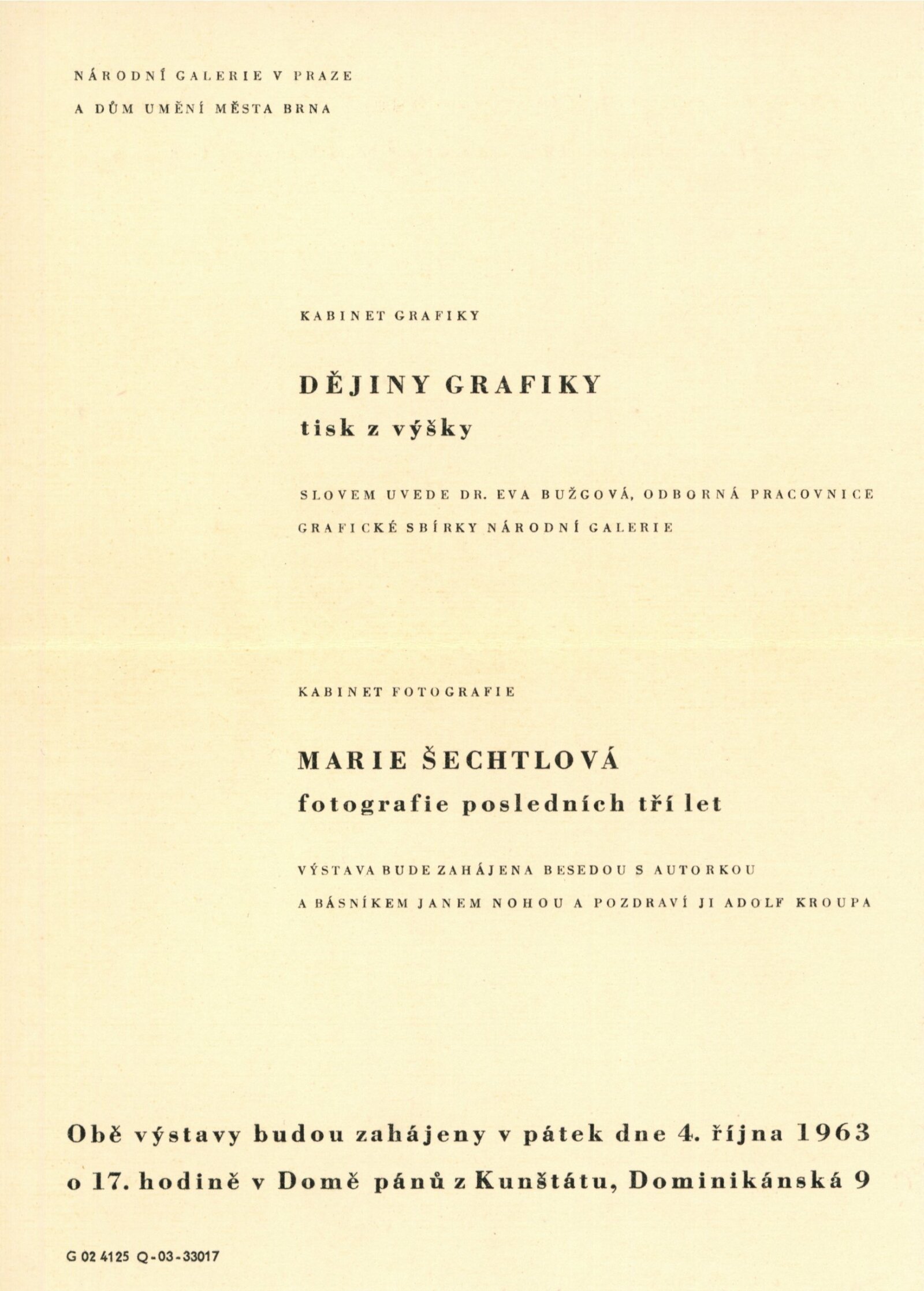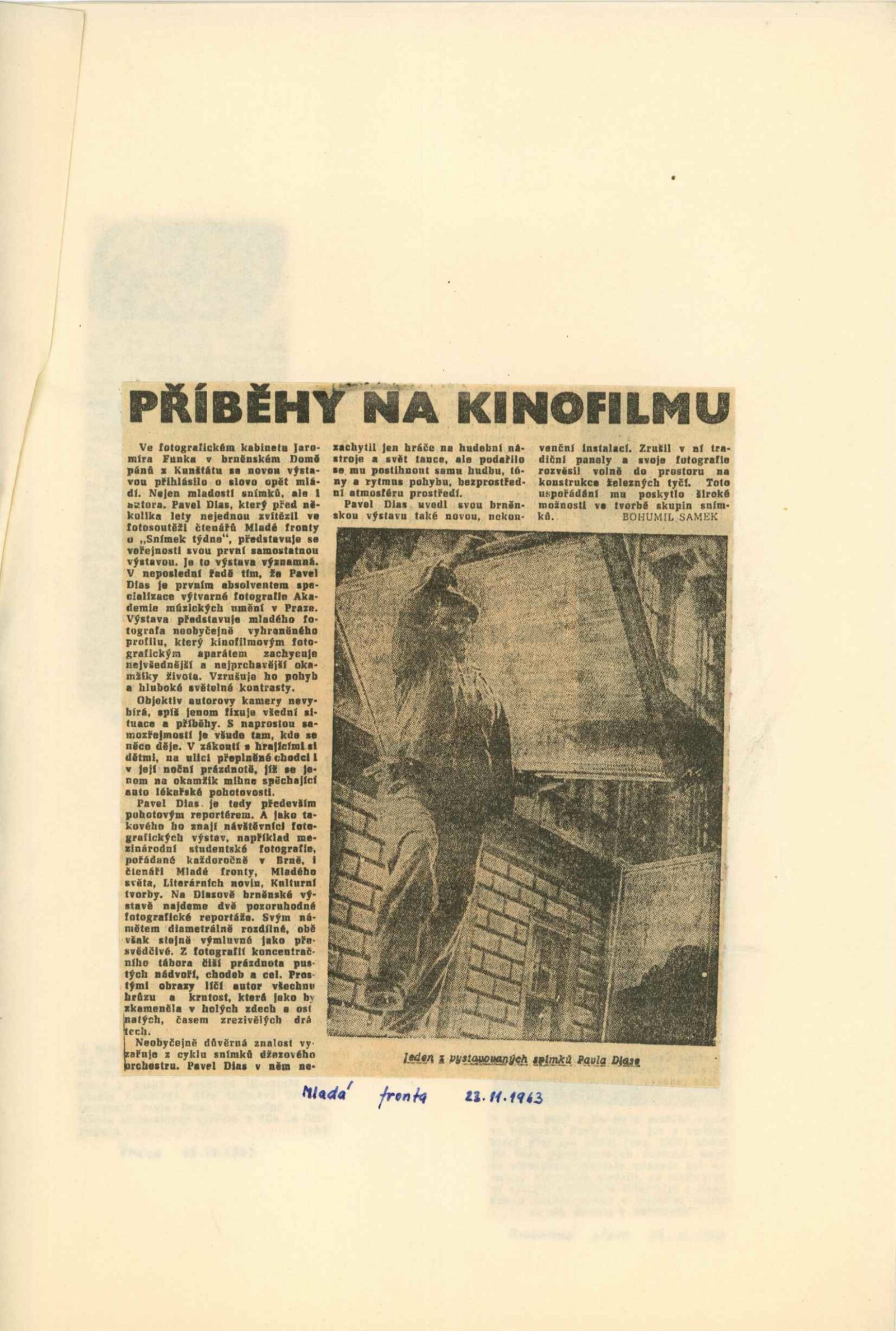 Pavel Dias. Výstava fotografií: Dům umění města Brna / Dům pánů z Kunštátu, 49. výstava Kabinetu Jaromíra Funka, 8. 11. – 1. 12. 1963 / Text: Ján Šmok. – Brno: DUmB, 1963. – 5 l., obr. příl. v obalu, DPK 209. – MZK; MG
