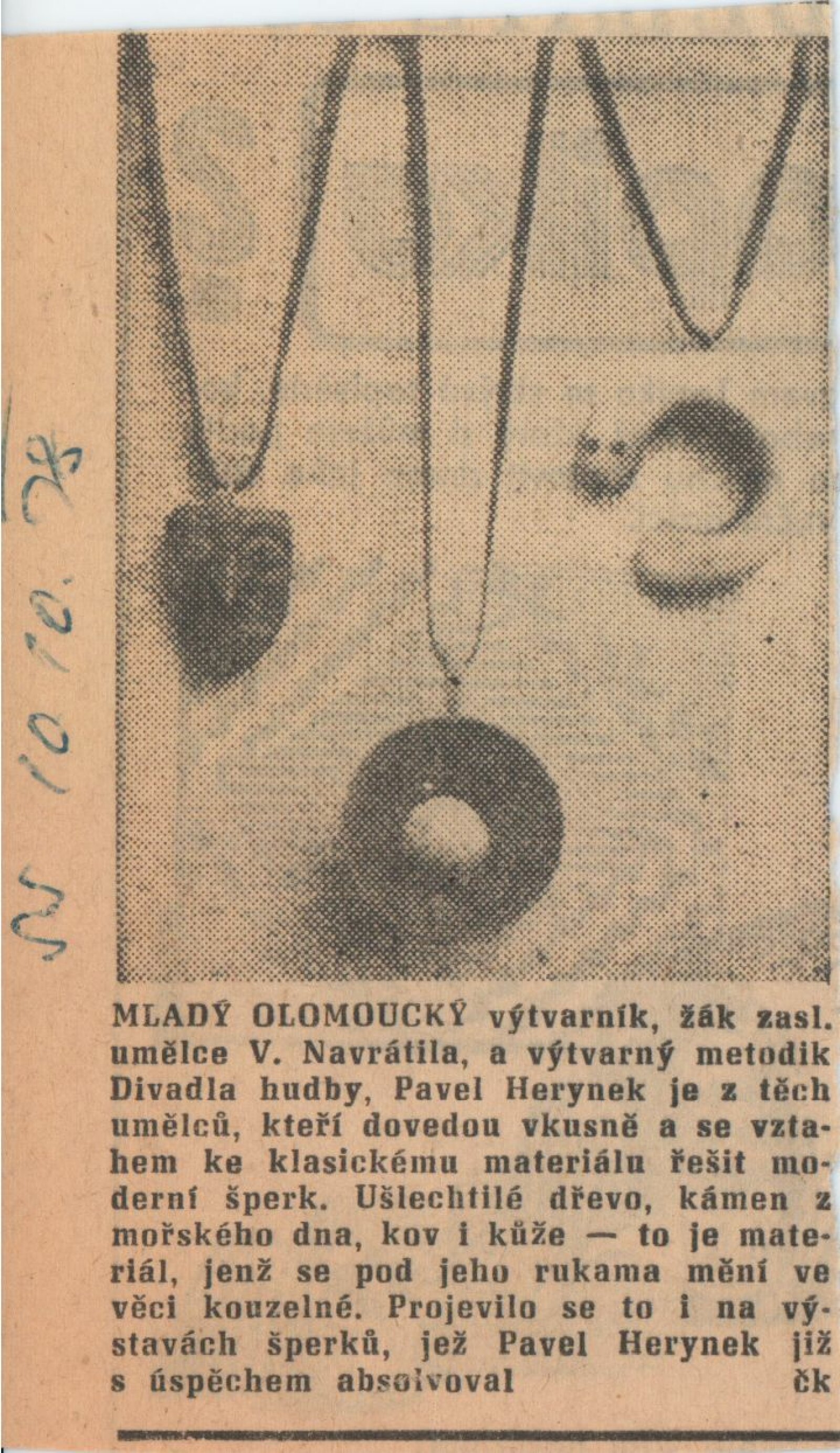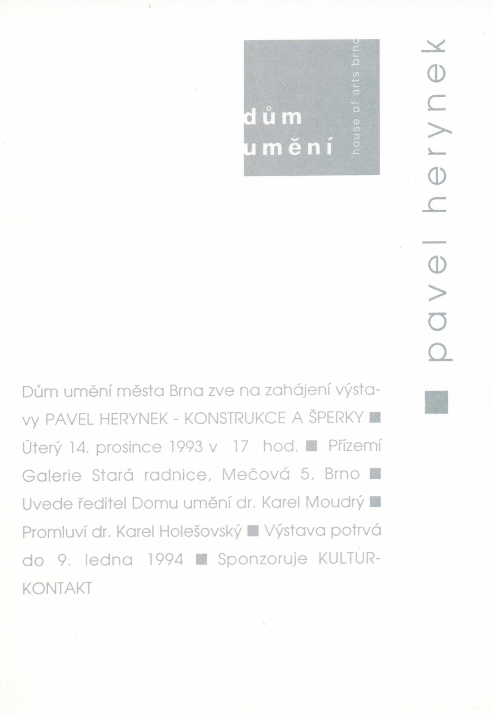 Pavel Herynek. Konstrukce a šperky: Galerie Stará radnice 14. 12. 1993 – 9. 1. 1994 / Text Karel Holešovský. - Brno: DUmB, - [12] s., obr. Životopis, bibliografie GSR 150; MG