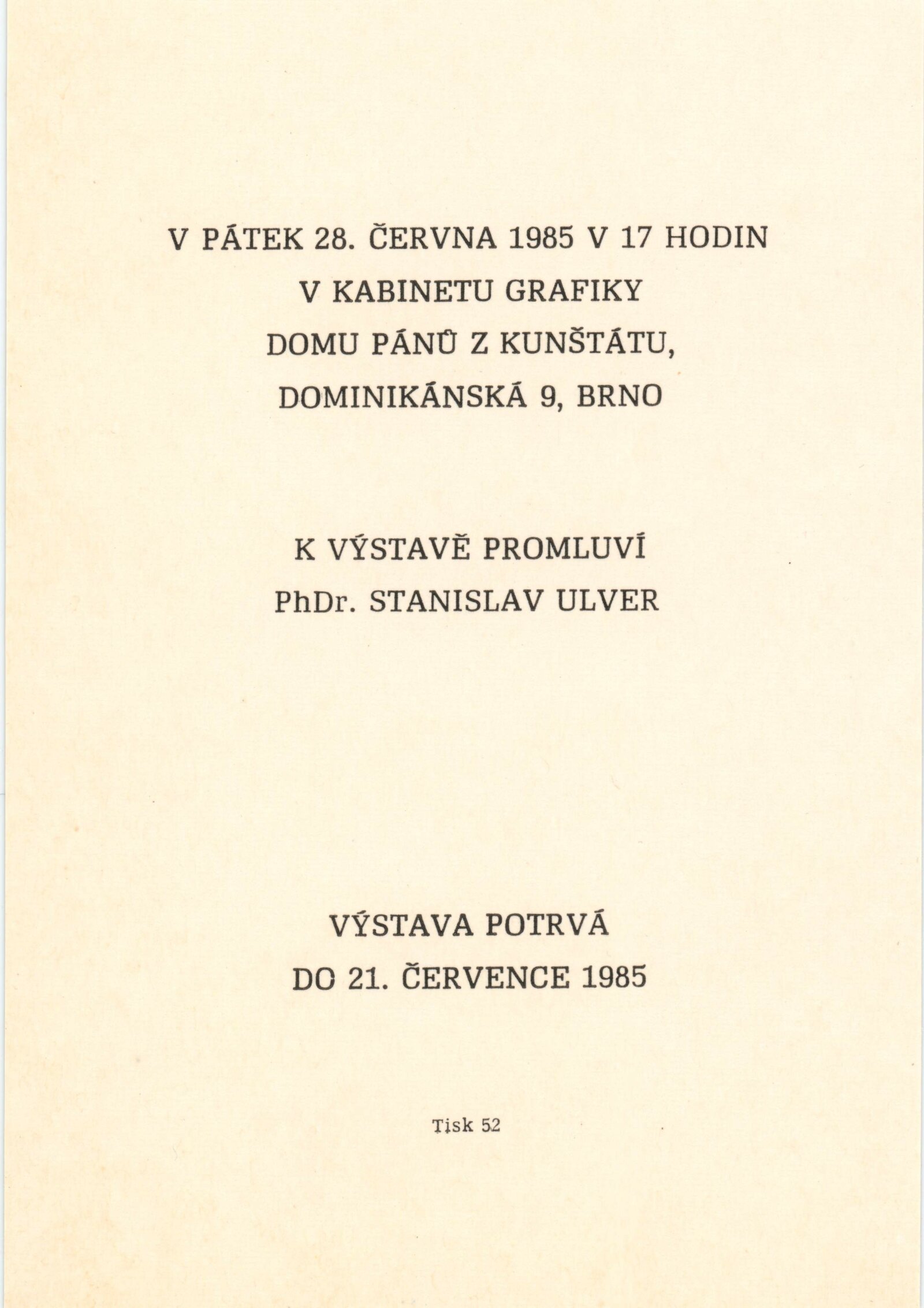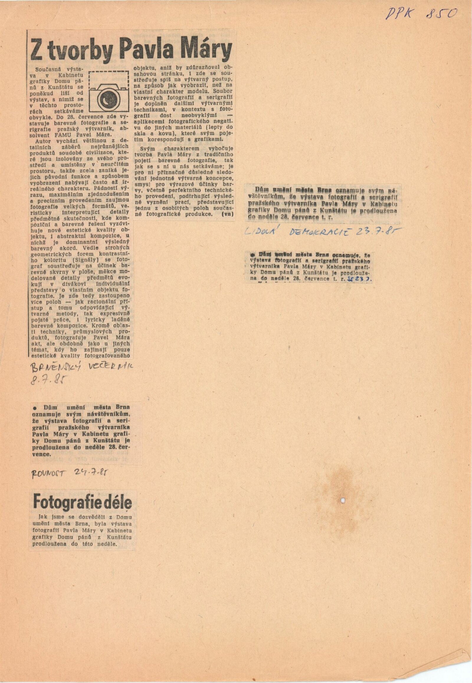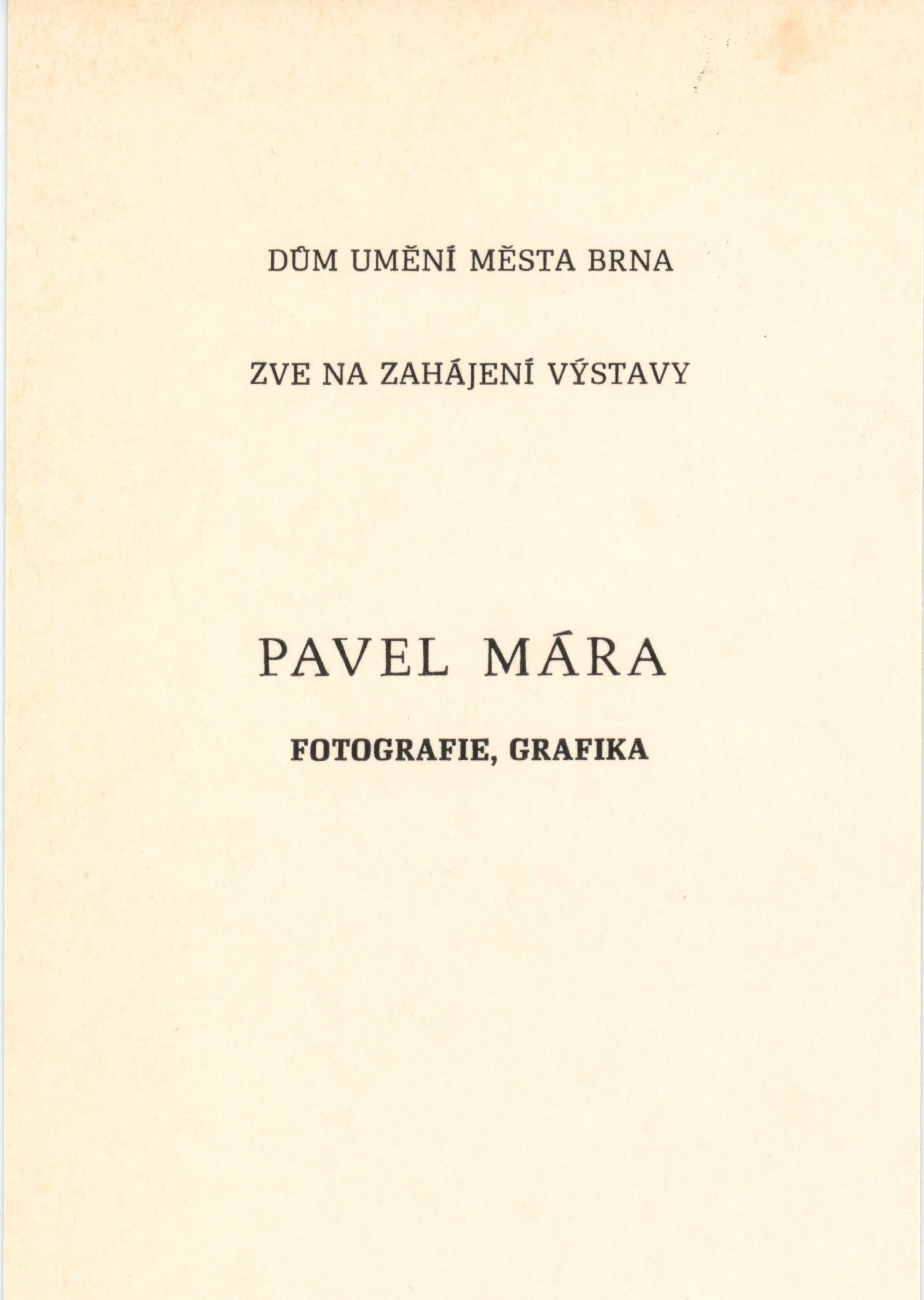 Pavel Mára. Fotografie, grafika: Dům umění / Dům pánů z Kunštátu, Kabinet grafiky, 28. 6. – 21. 7. 1985 / Text: Stanislav Ulver. – Brno: DUmB, 1985. – 8 s., obr., životní data, výstavy, DPK 850. – MZK; MG; MMB