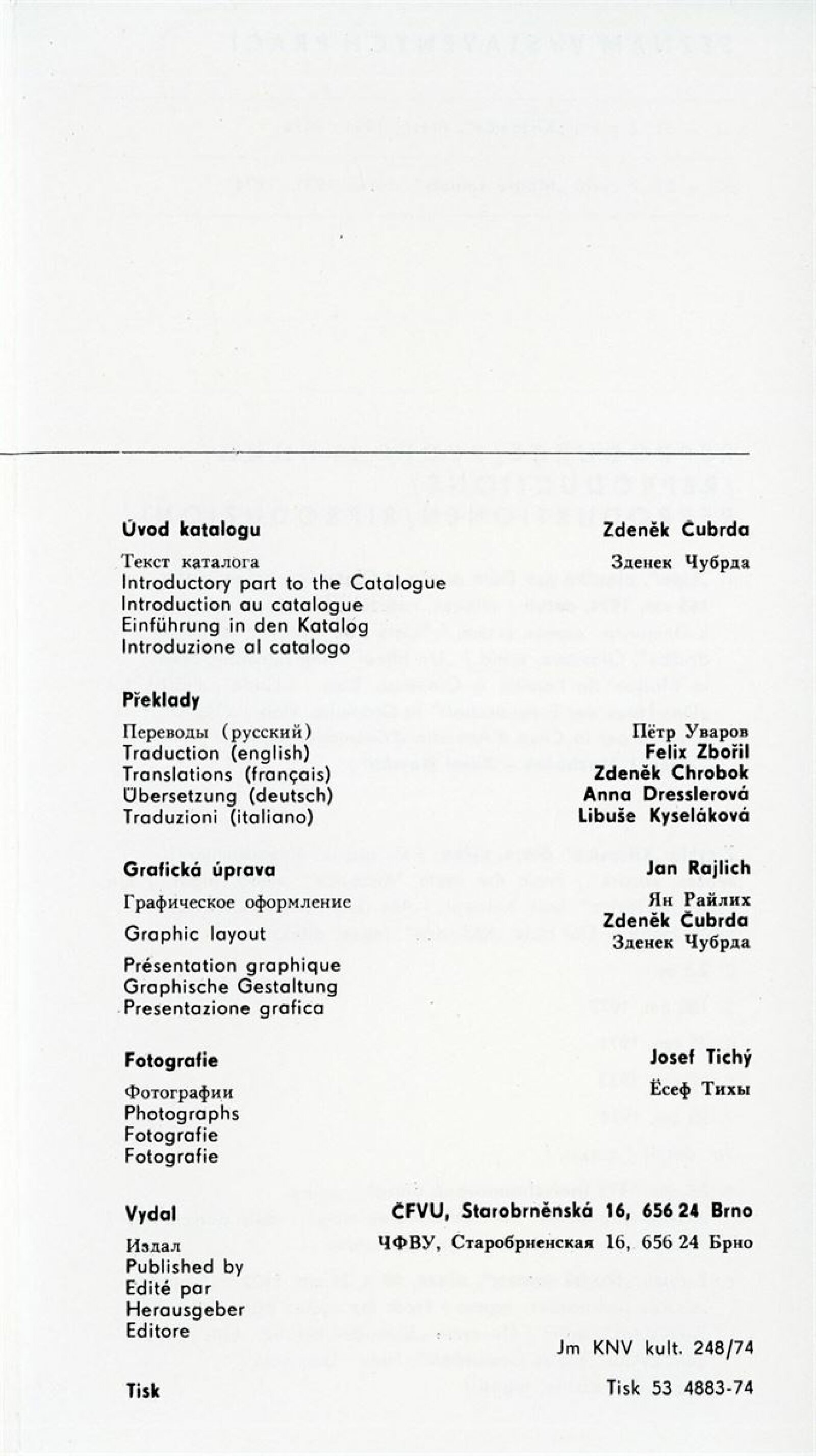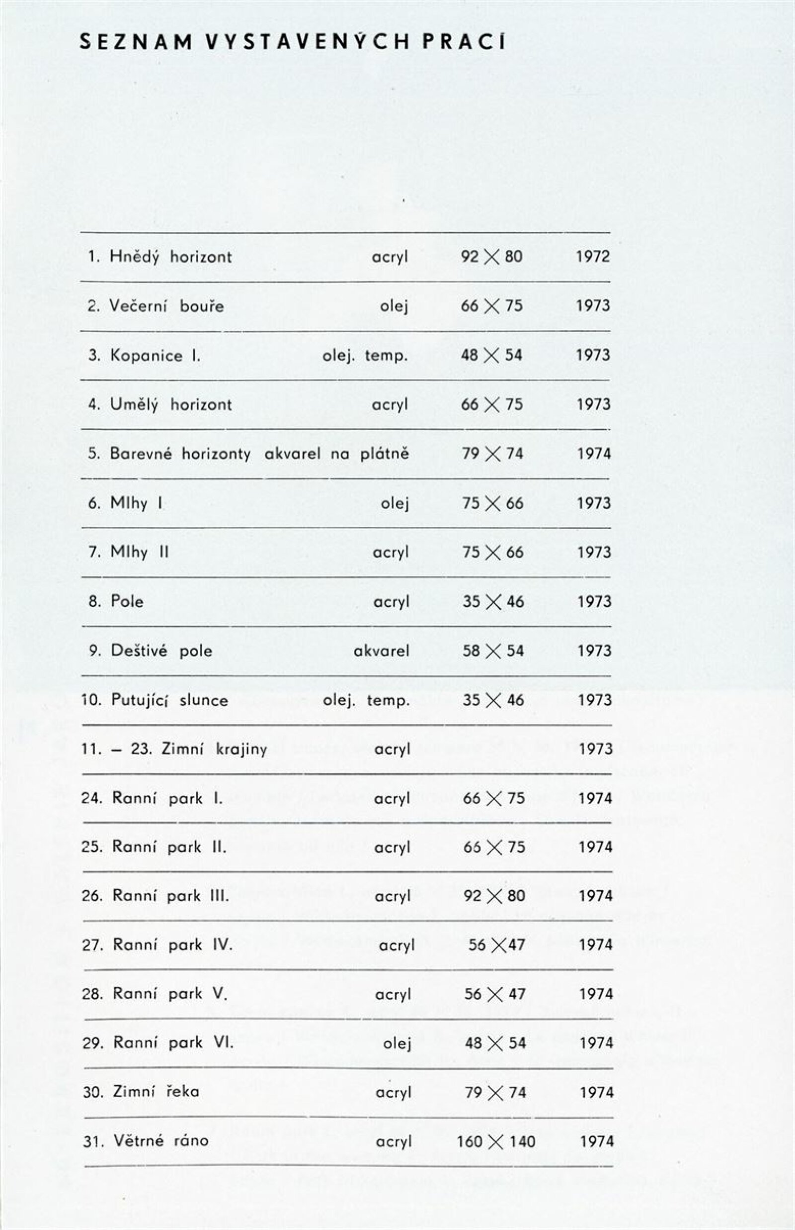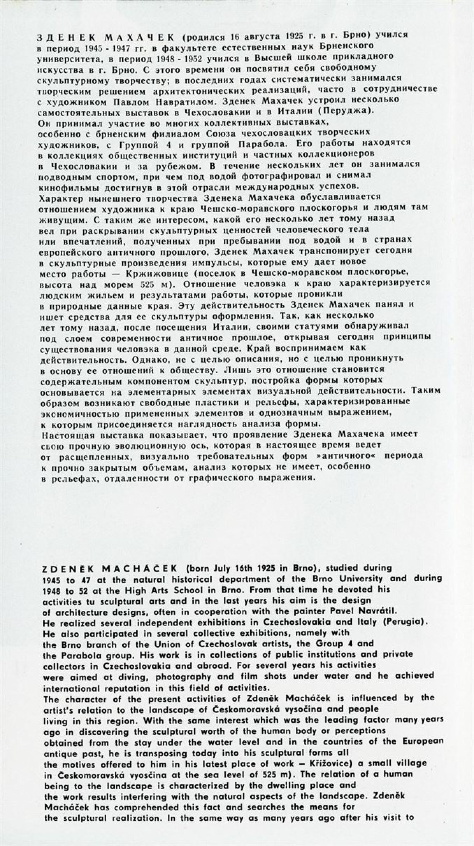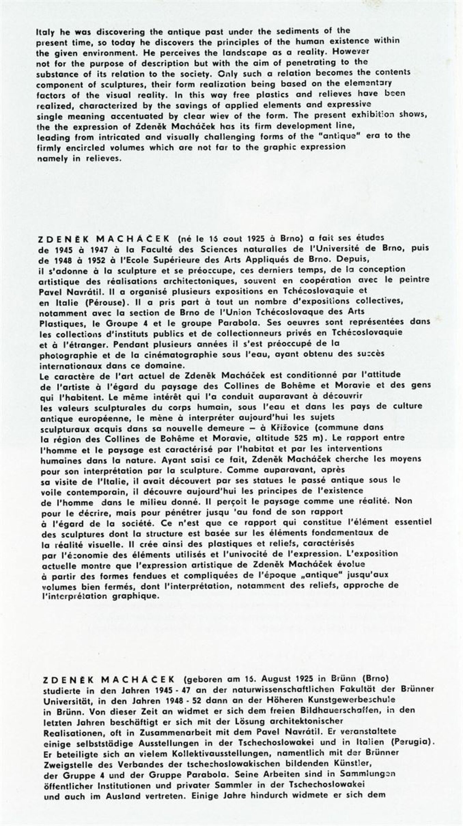 Zdeněk Macháček: Křížovice, Pavel Navrátil: Krajiny: Dům umění, 60. výstava v Galerii Jaroslava Krále, 3. 9. – 22. 9. 1974 / Text: Zdeněk Čubrda. – Brno: ČFVU, 1974. – 13 s., obr., portrét, životní data, výstavy, DU 611. – MZK; MMB / Pavel Navrátil. Krajiny: Dům umění, 60. výstava v Galerii Jaroslava Krále, 3. 9. – 22. 9. 1974 / Text: Zdeněk Čubrda. – Brno: ČFVU, 1974. – 14 s., obr., portrét, životní data, výstavy, DU 611. – MZK