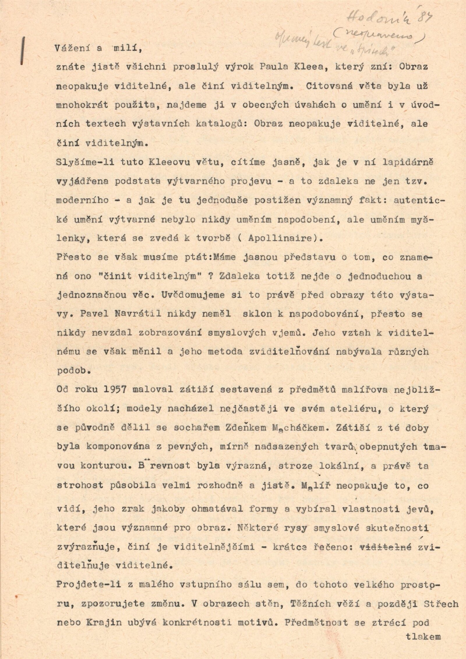 pozvánka, katalog, strojopis, fotografie děl, fotografie Zdeňka Macháčka, seznamy děl, texty o autorech od Igora Zhoře (1984), provozní korespondence (SČVU, instituce - o zápůjčkách, žádost Pavla Navrátila a Zdeňka Macháčka o výstavu), žádost o povolení výstavy, smlouvy o výpůjčce a reversy, recenze v tisku