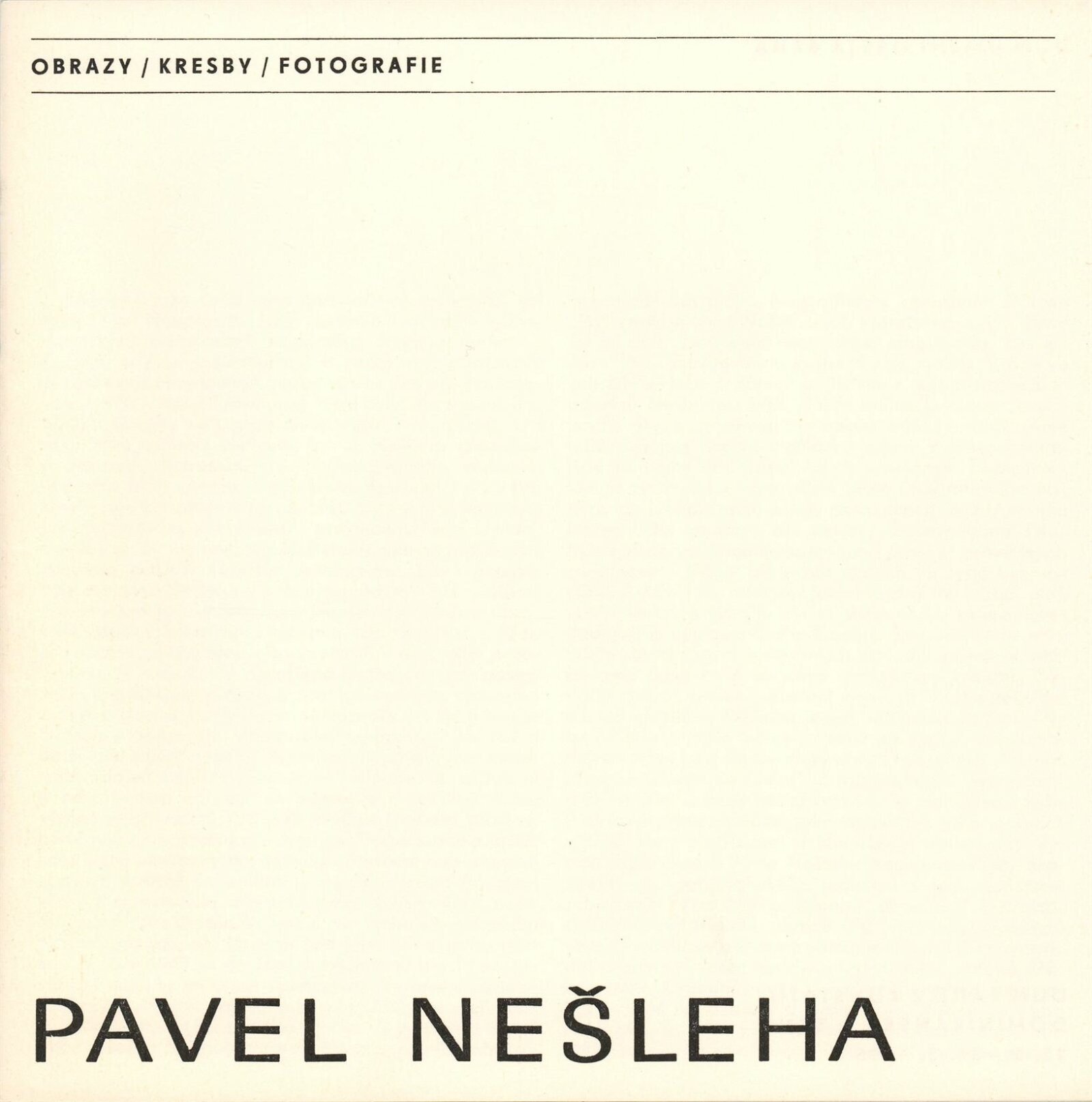 Pavel Nešleha. Obrazy, kresby, fotografie: Dům umění / Dům pánů z Kunštátu, 25. 2. – 31. 3. 1986 / Text: Jiří Valoch. – Brno: DUmB, 1986. – [24] s., obr., životní data, výstavy, realizace, ceny, zastoupení ve sbírkách, DPK 866. – MZK; MG; MMB