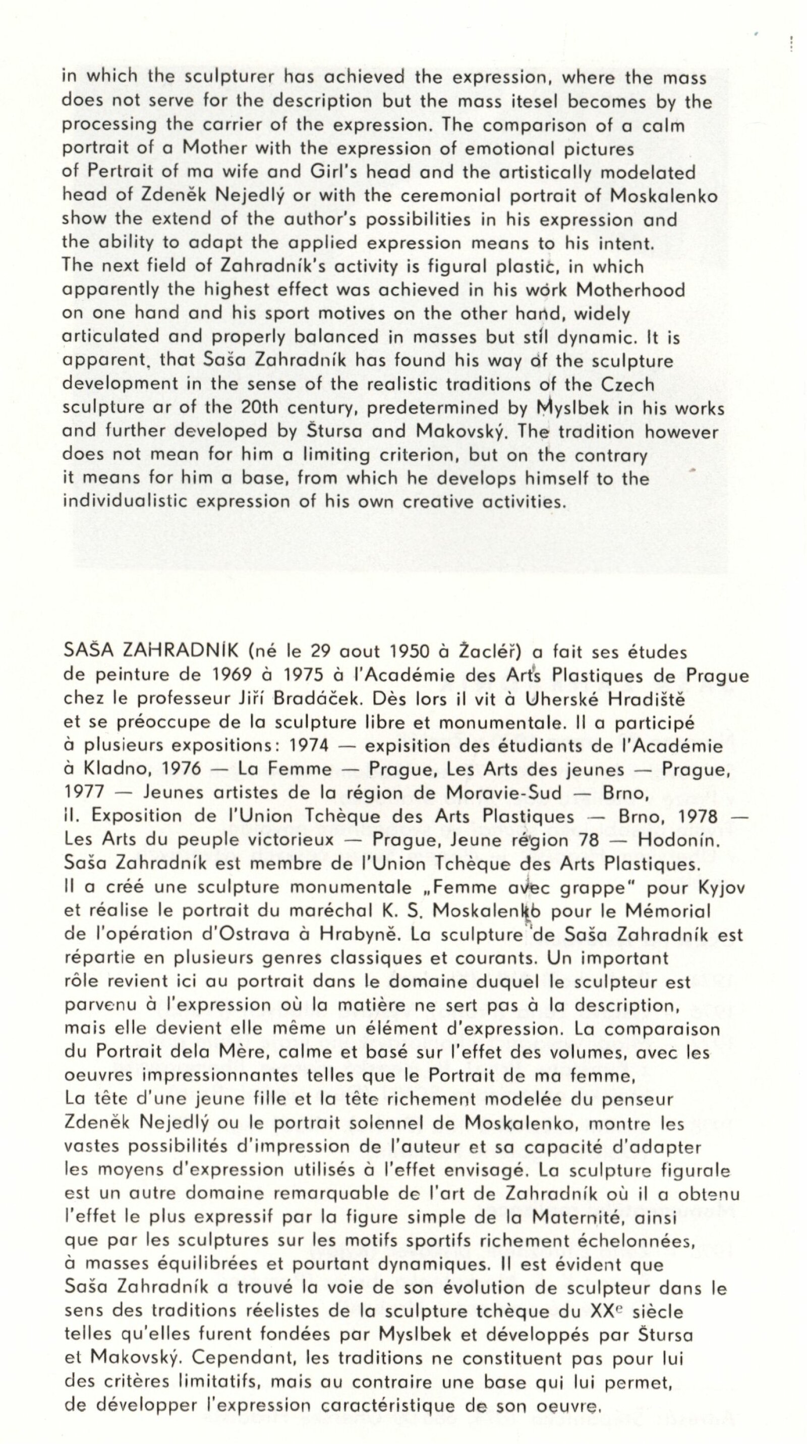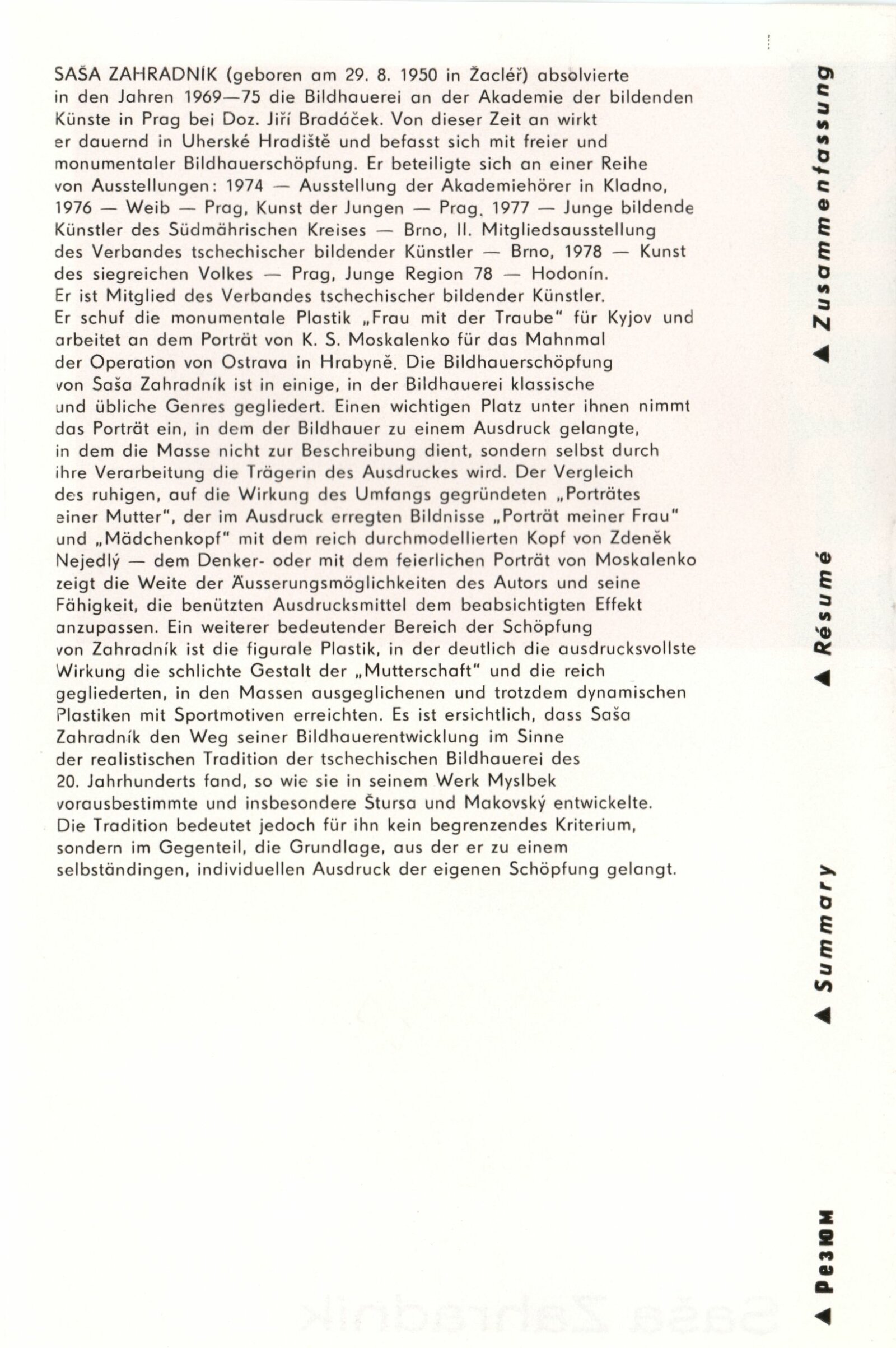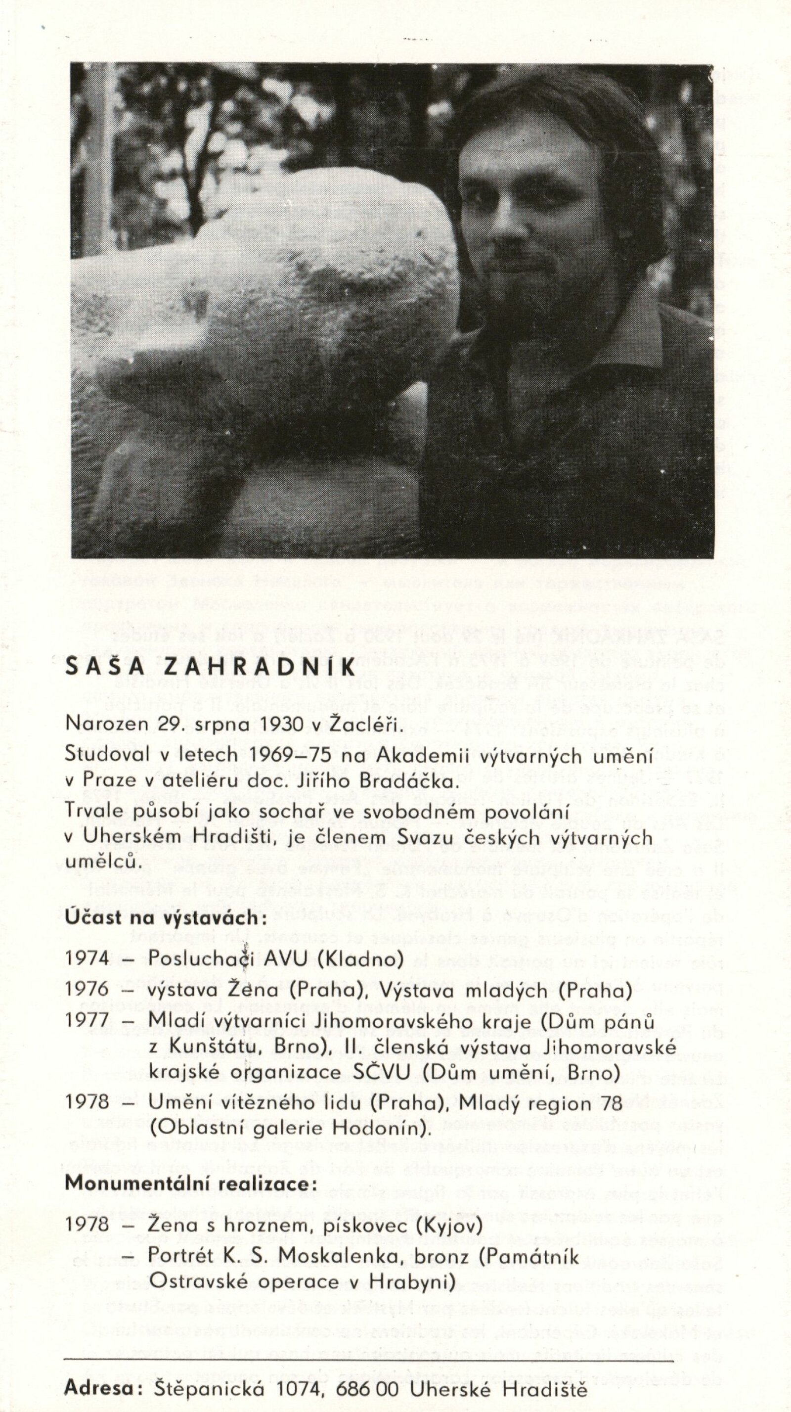 Pavel Vavrys. Obrazy: 90. výstava v Galerii Jaroslava Krále 5. 12. 1978 – 21. 1. 1979 / Text Zdeněk Čubrda. - Brno, ČFVU, - 10 s., obr. Portrét, životní data, výstavy. Neobsahuje seznam vystavených prací, DU 684 Saša Zahradník. Sochy: 90. výstava v Galerii Jaroslava Krále 5. 12. 1978 – 21. 1. 1979 / Text Zdeněk Čubrda. - Brno, ČFVU, - 10 s., obr. Portrét, životní data, výstavy, monumentální realizace. Neobsahuje seznam vystavených prací, DU 684