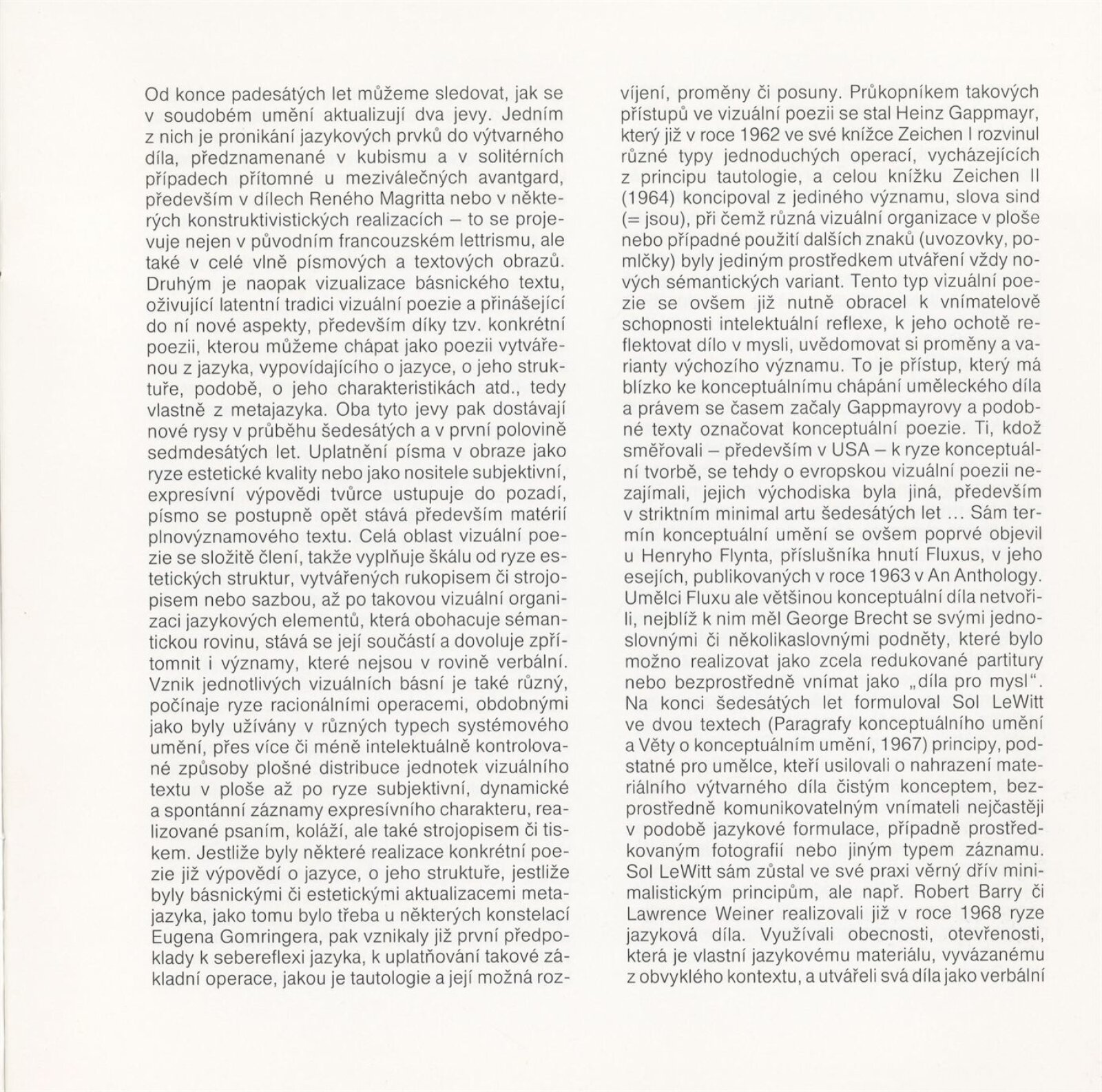 Peter Downsbrough. New York, Brusel. Současné práce v prostoru, knihy, kresby a grafiky: Dům umění města Brna, 1. patro, 25. 6. – 11. 8. 1991 / Text: Jiří Valoch. – Brno: DUmB, 1991. – [21] s., obr., životní data, výstavy, autorské knihy, bibliografie, DU 904. – MZK; MG
