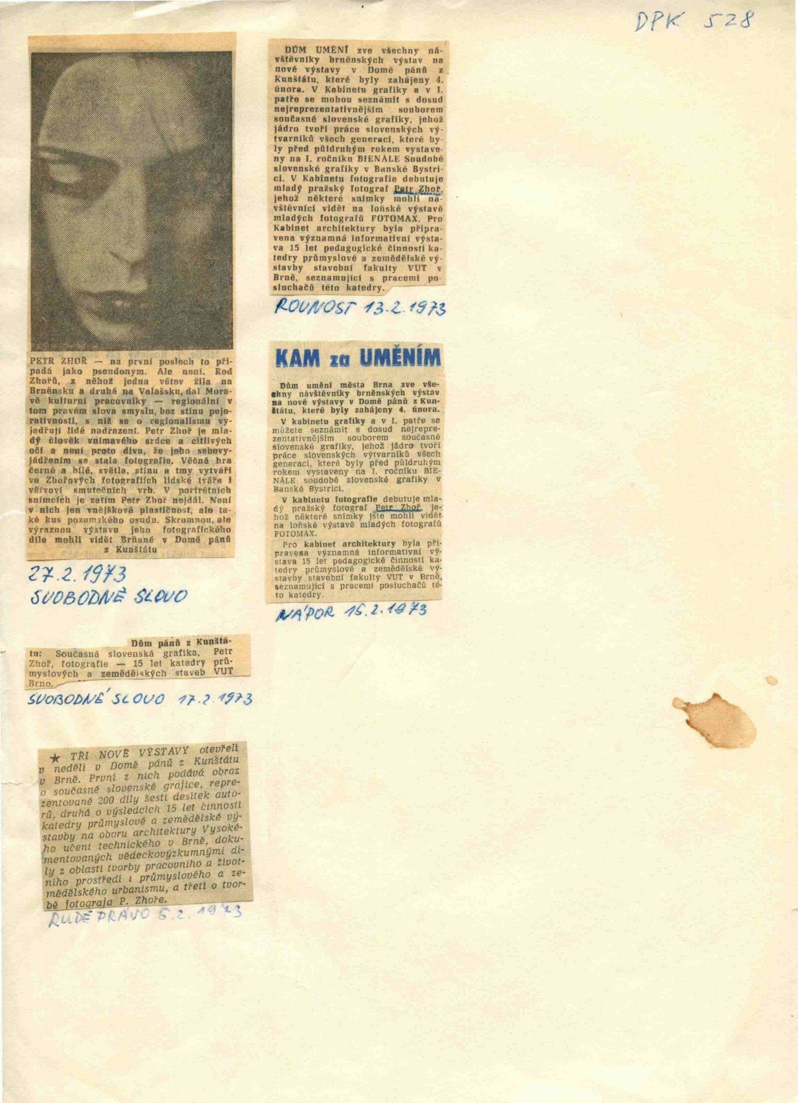 pozvánka, korespondence s autorem, provozní korespondence, vyjádření JMKNV k tisku katalogu, podklady pro katalog, výstavní smlouva, žádost o povolení výstavy, recenze v tisku
