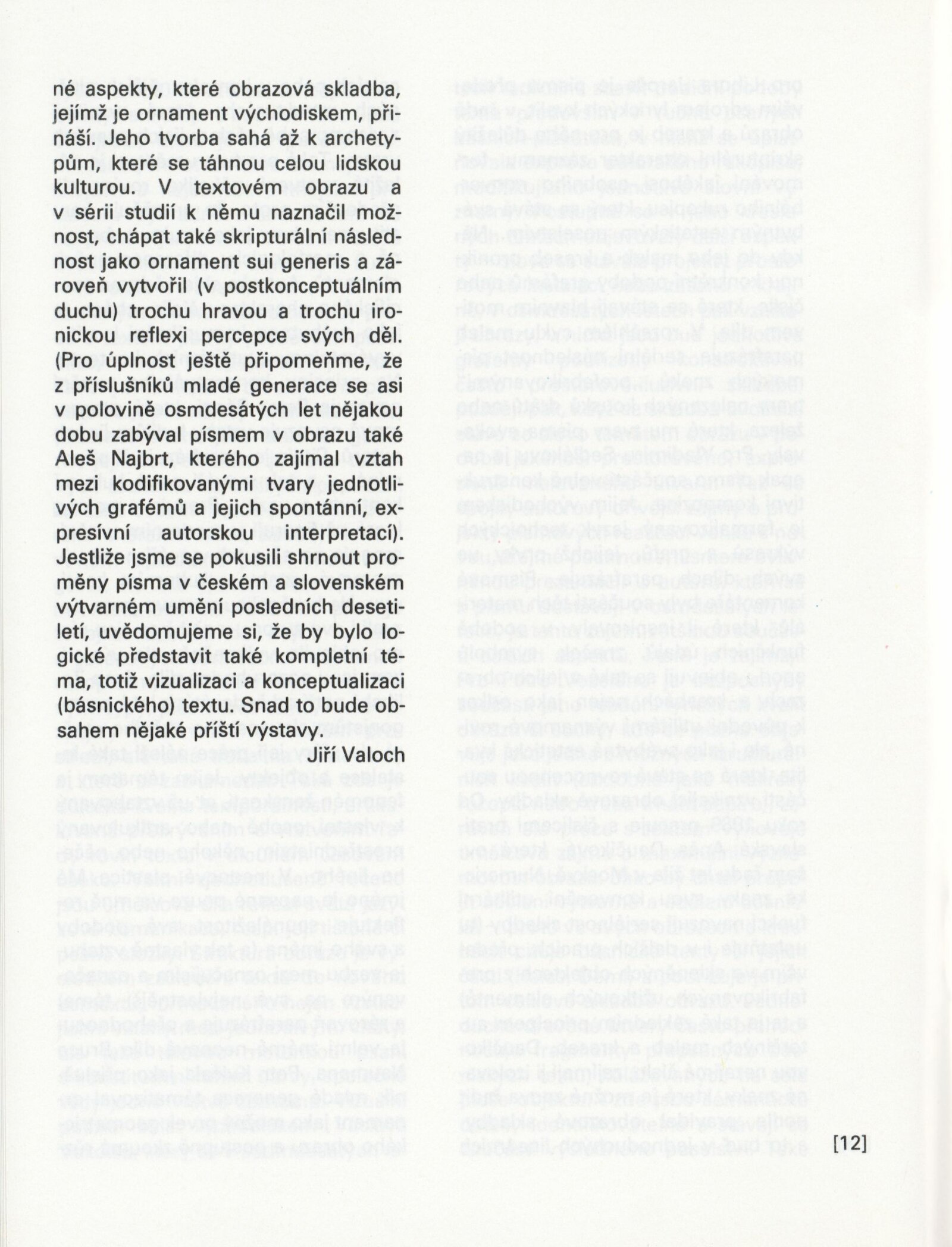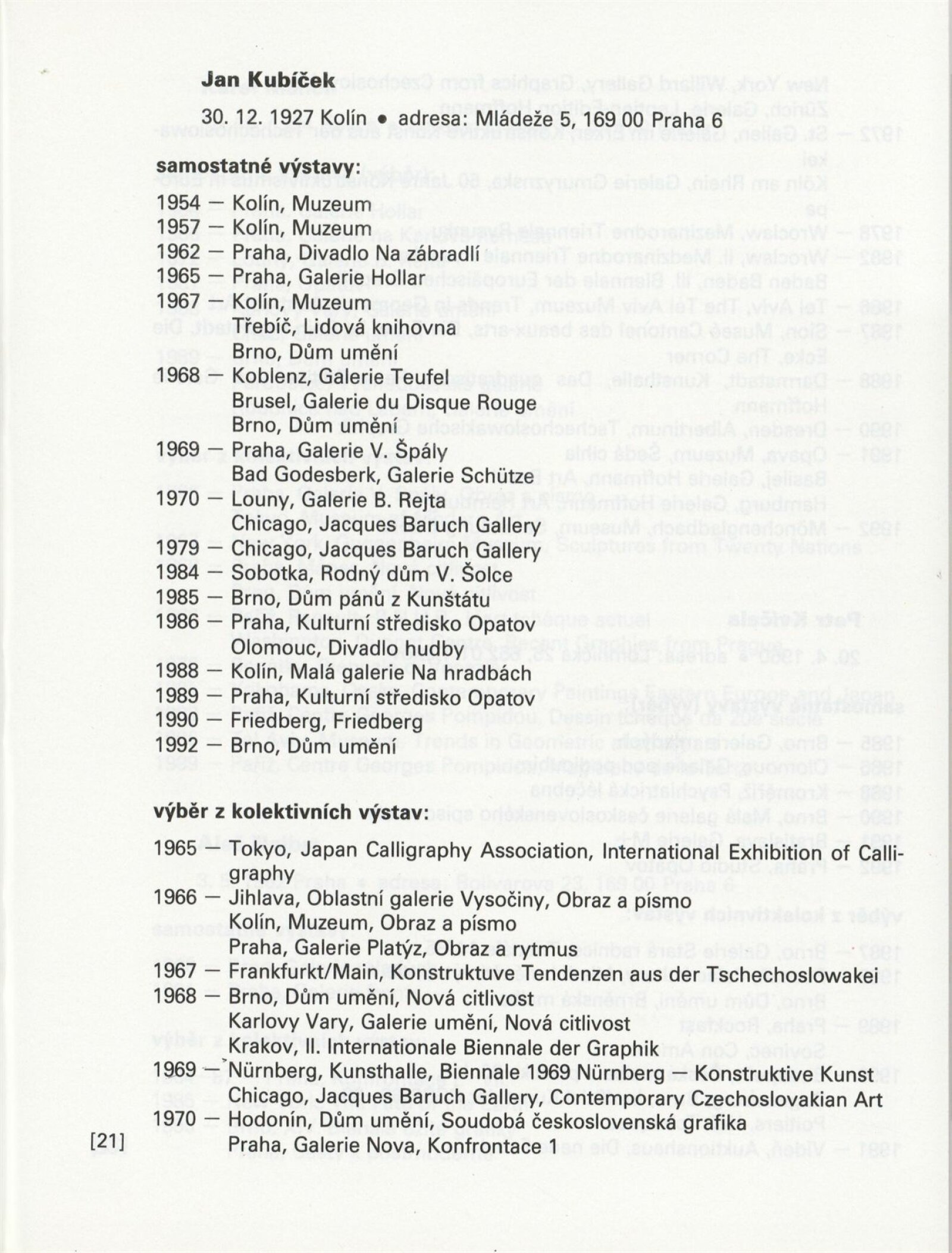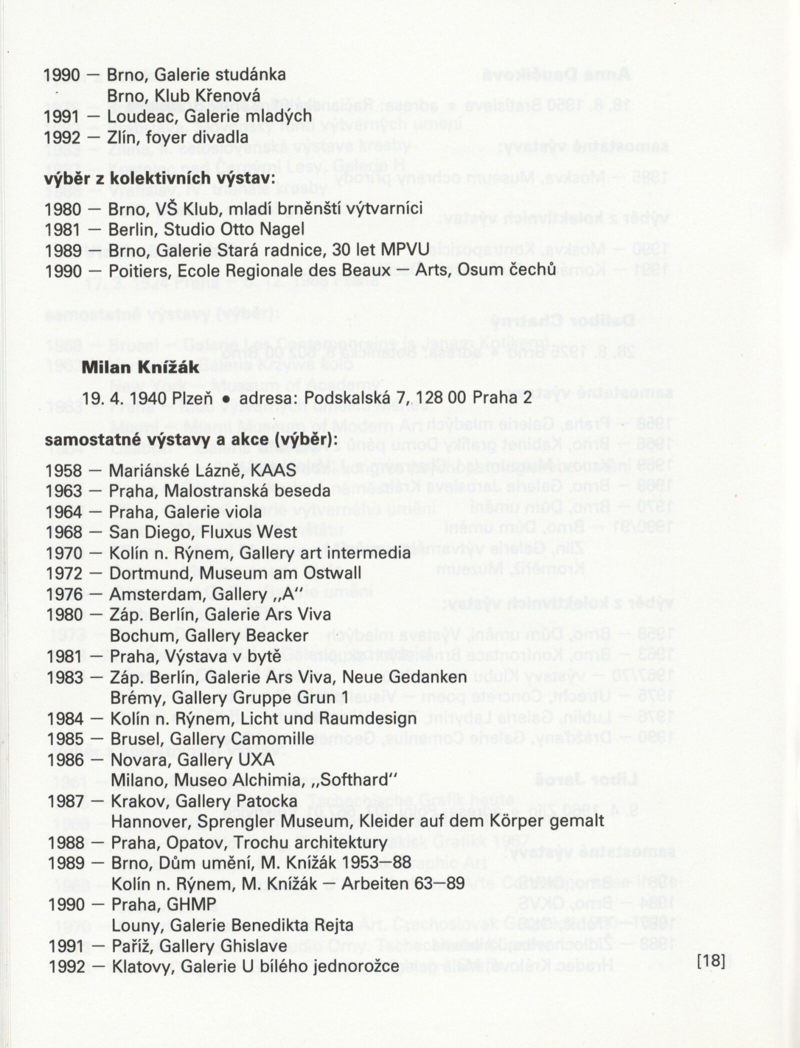 Písmo v obraze. Doprovodná výstava Bienále Brno´92: Galerie Stará radnice 1. 9. – 11. 10. 1992 / Text Jiří Valoch. - Brno: Moravská galerie - 59 s., obr. + Seznam exponátů [4] s. Životní data, výstavy GSR 128; MZK; MG