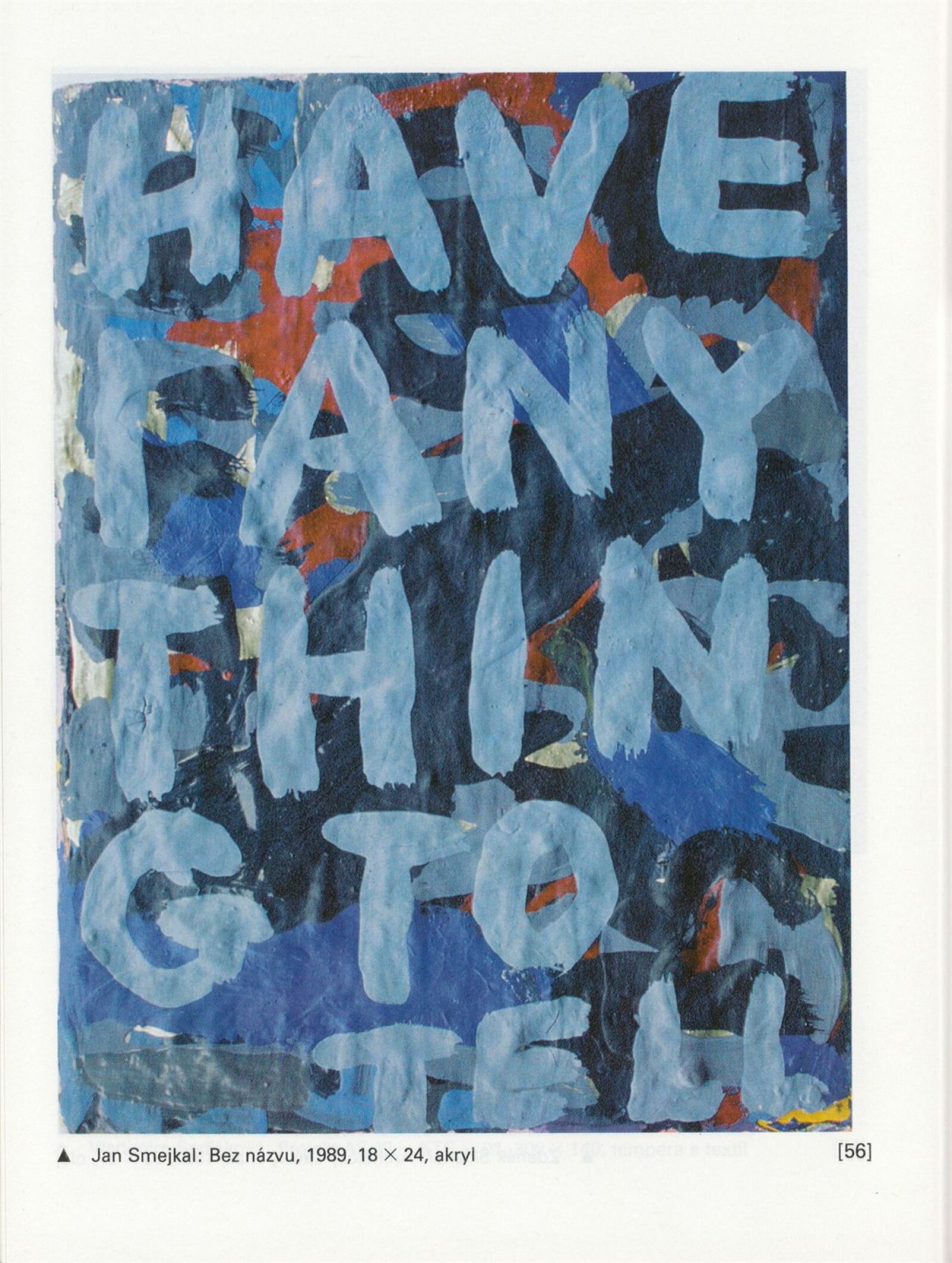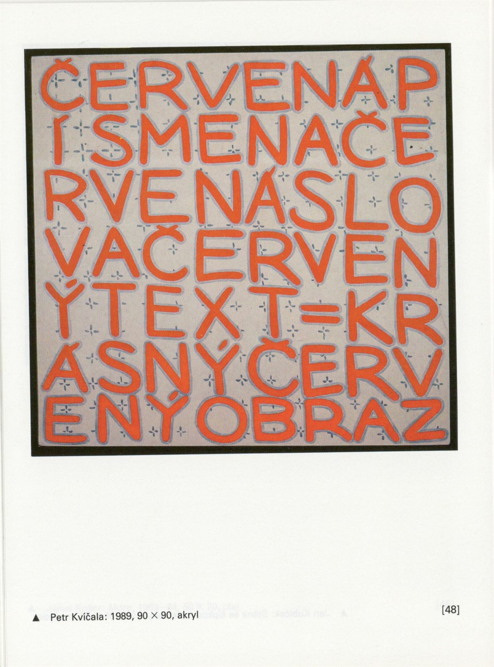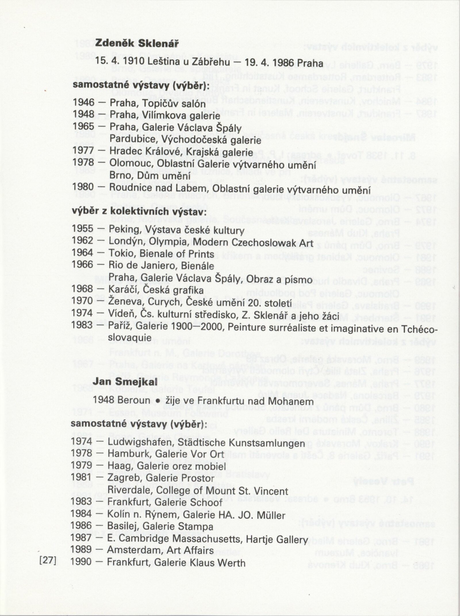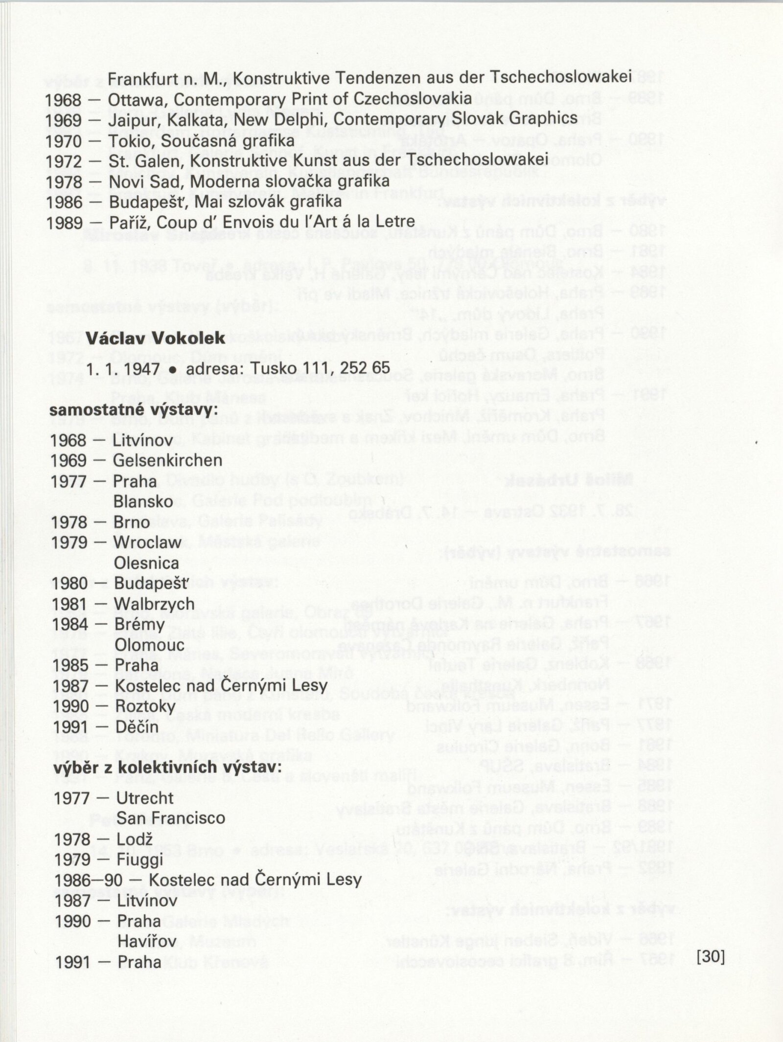 Písmo v obraze. Doprovodná výstava Bienále Brno´92: Galerie Stará radnice 1. 9. – 11. 10. 1992 / Text Jiří Valoch. - Brno: Moravská galerie - 59 s., obr. + Seznam exponátů [4] s. Životní data, výstavy GSR 128; MZK; MG
