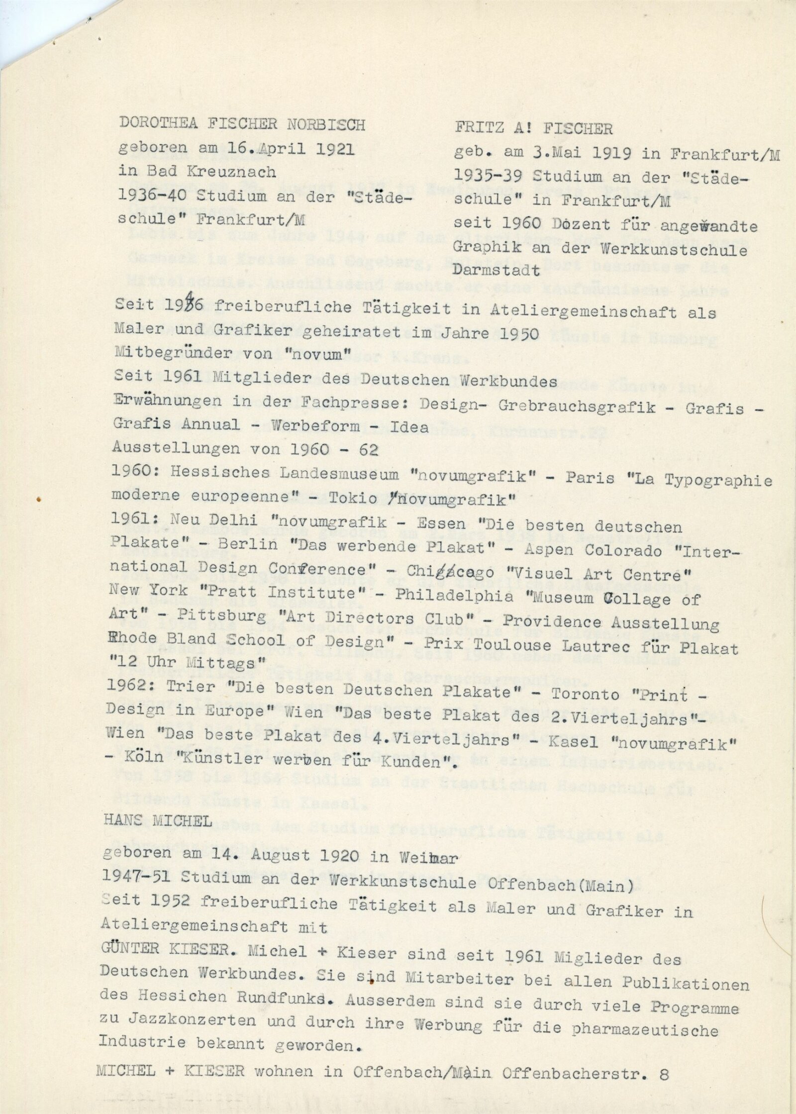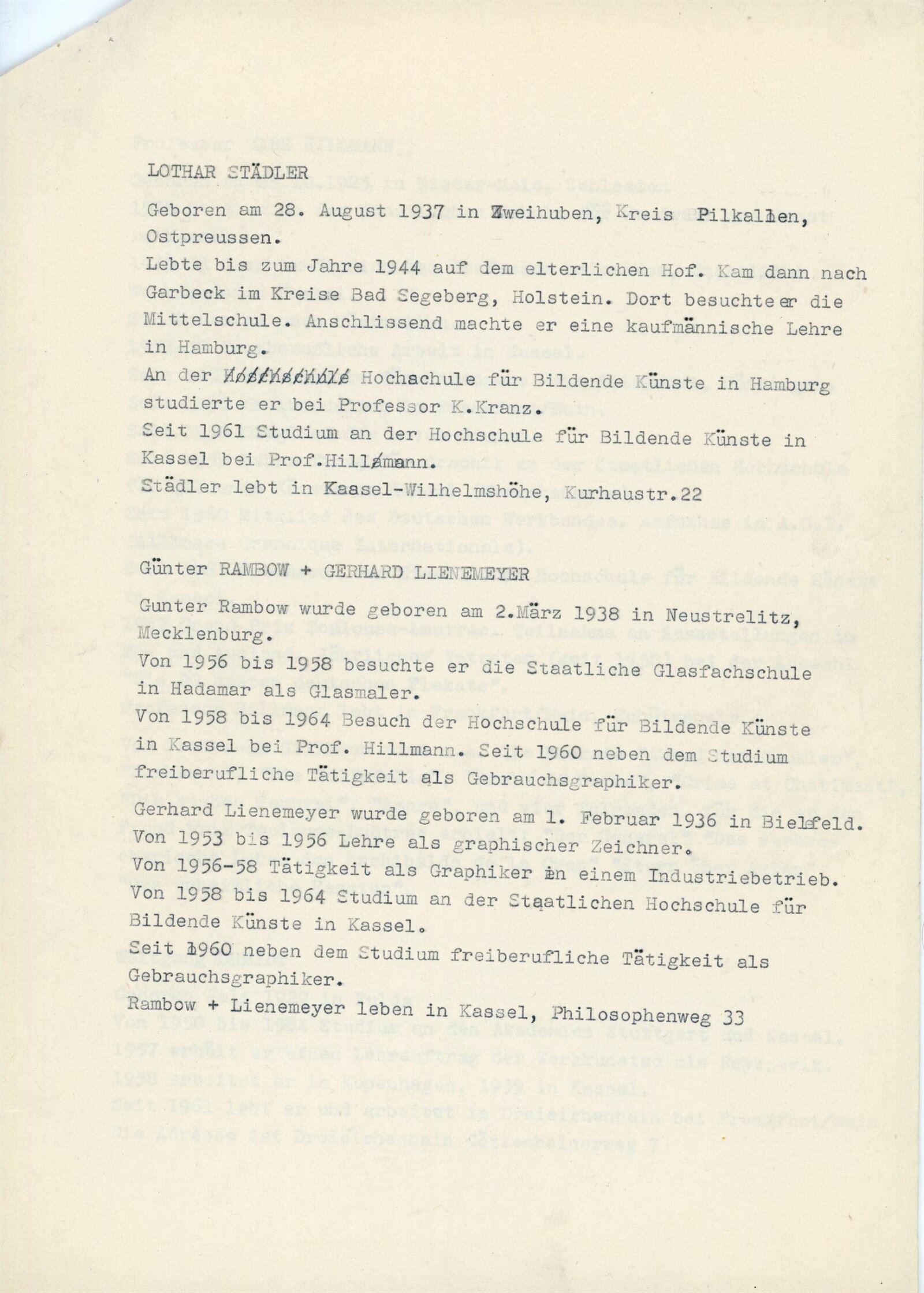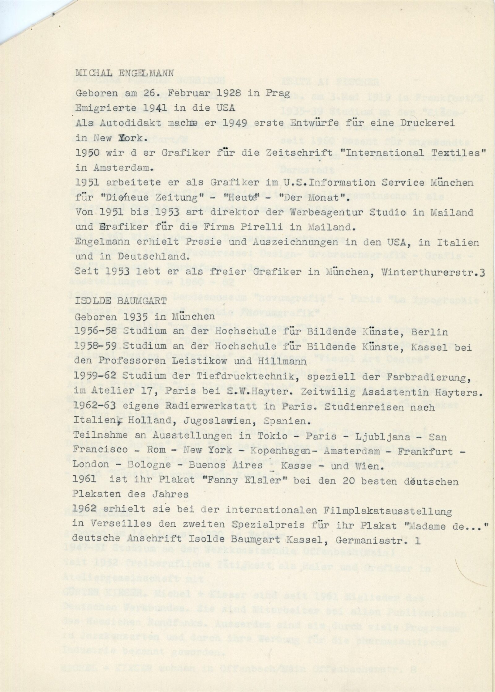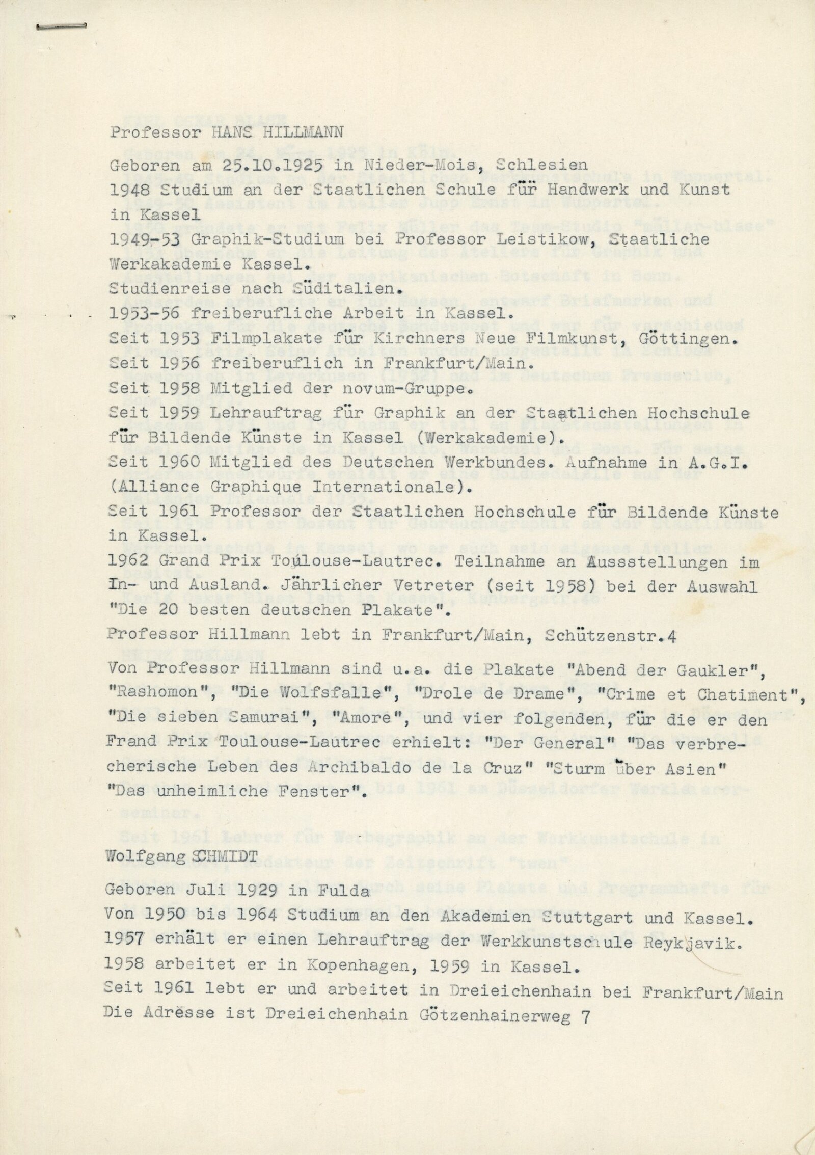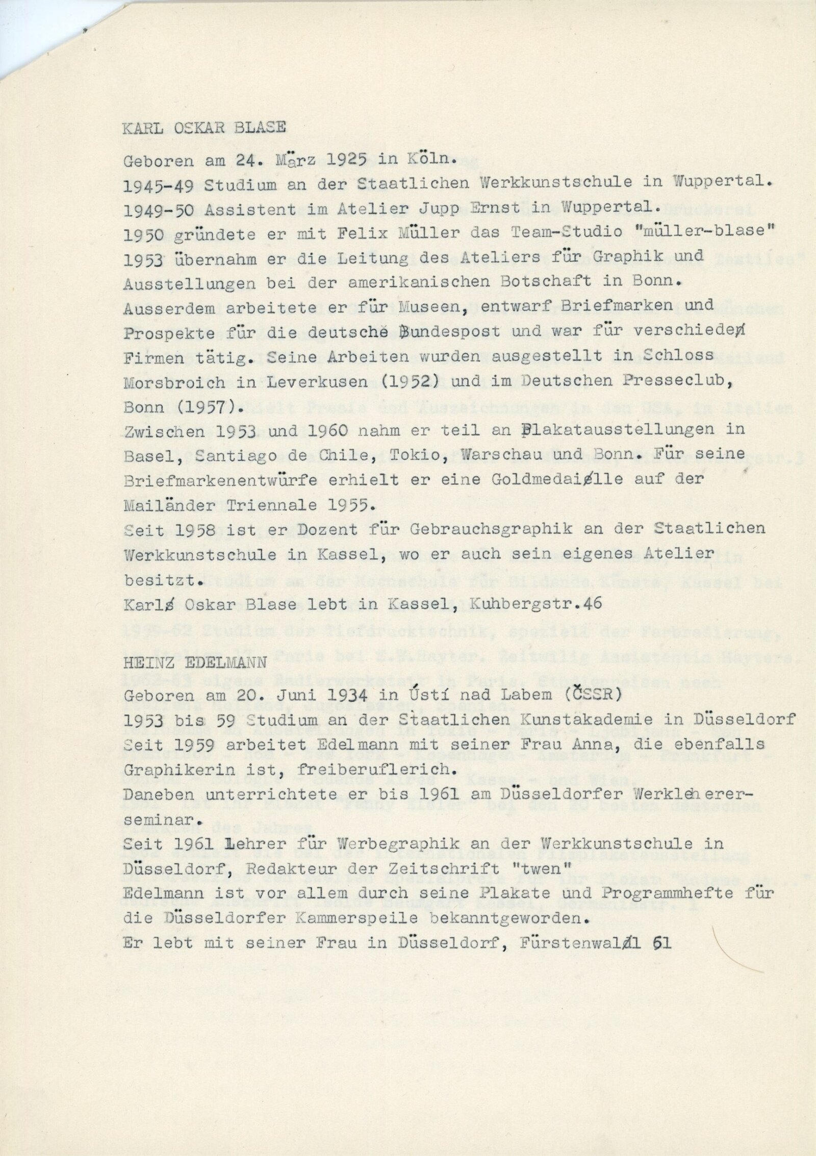 Hans Hillmann, Fischer-Nosbisch, Engelmann, Edelmann, Rombow, Lienemeyer, Lothar Städler, Michel, Kieser, Schmidt, Jürgen Hirsch, W. Schreib, G. Kressel, Isolde Baumgart, Gerda Haller, Karl Oskar Blase, Jan Lenica