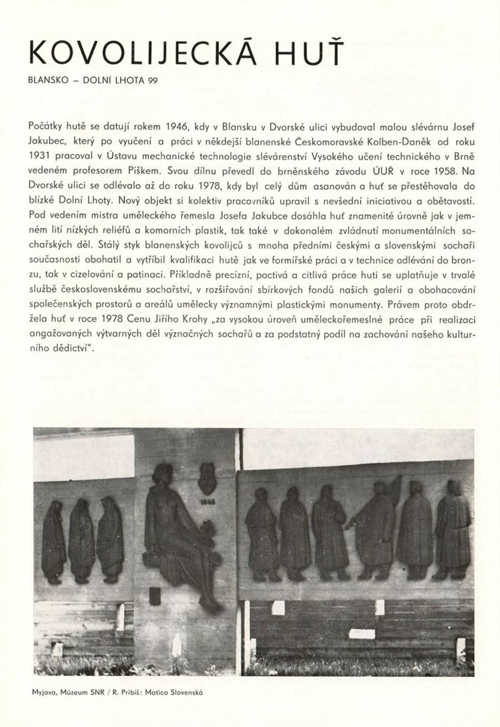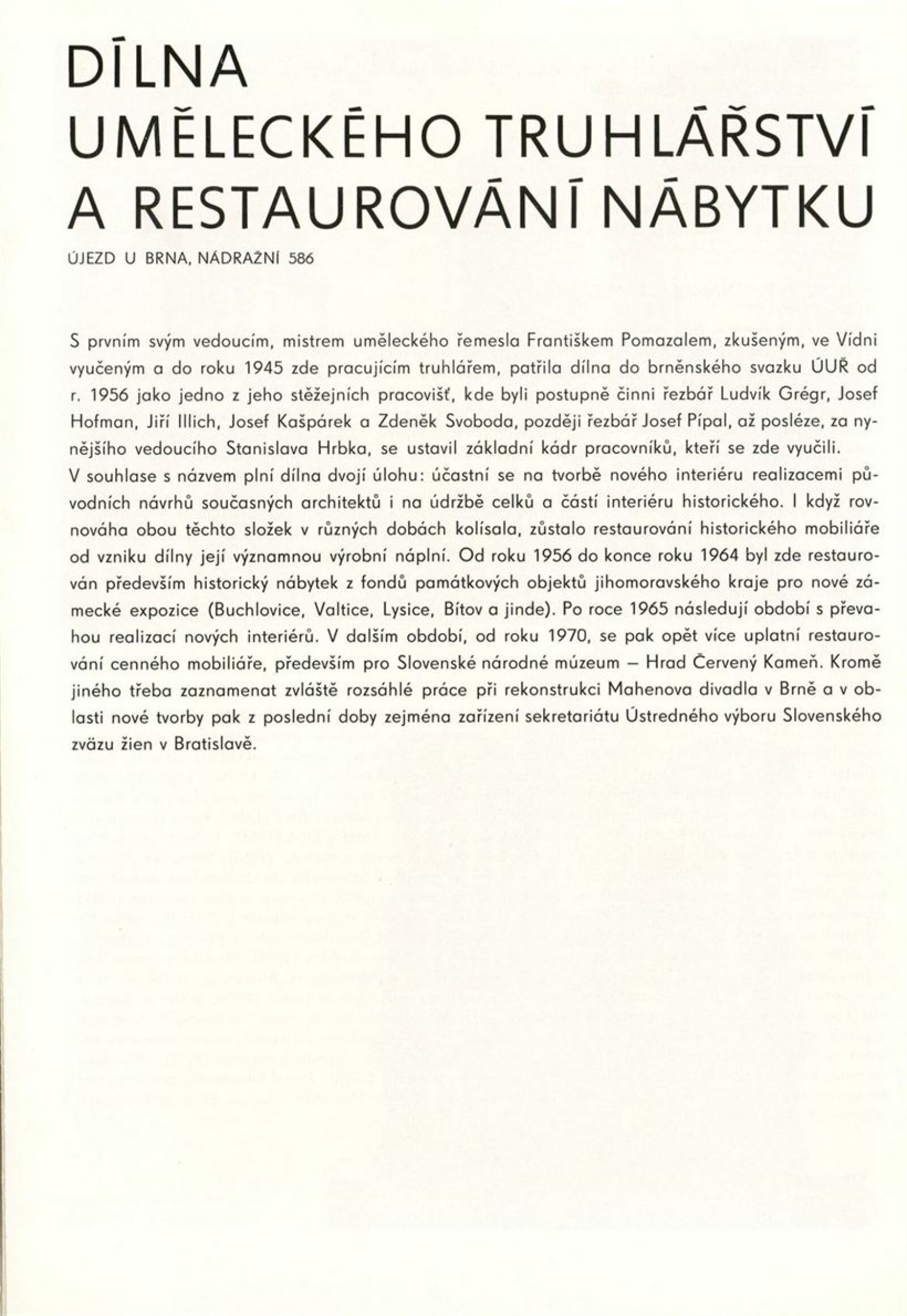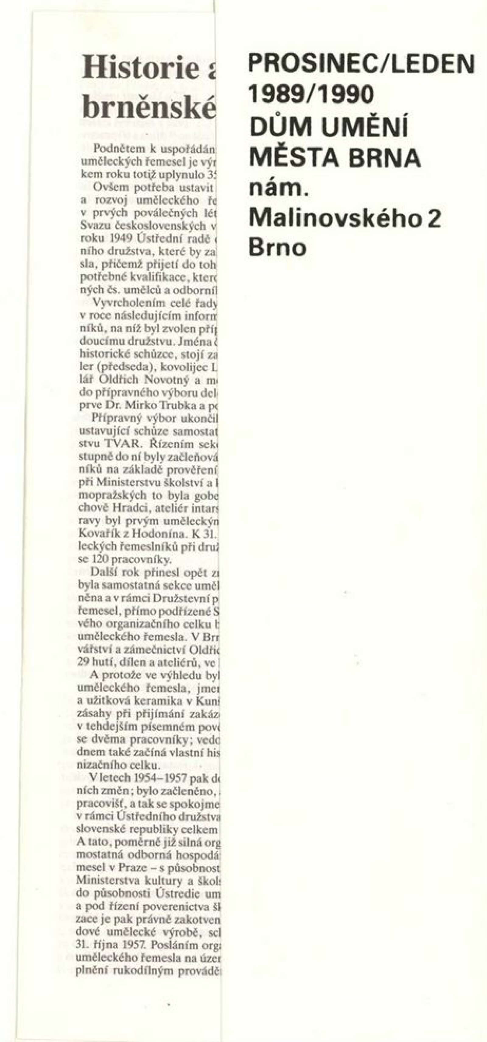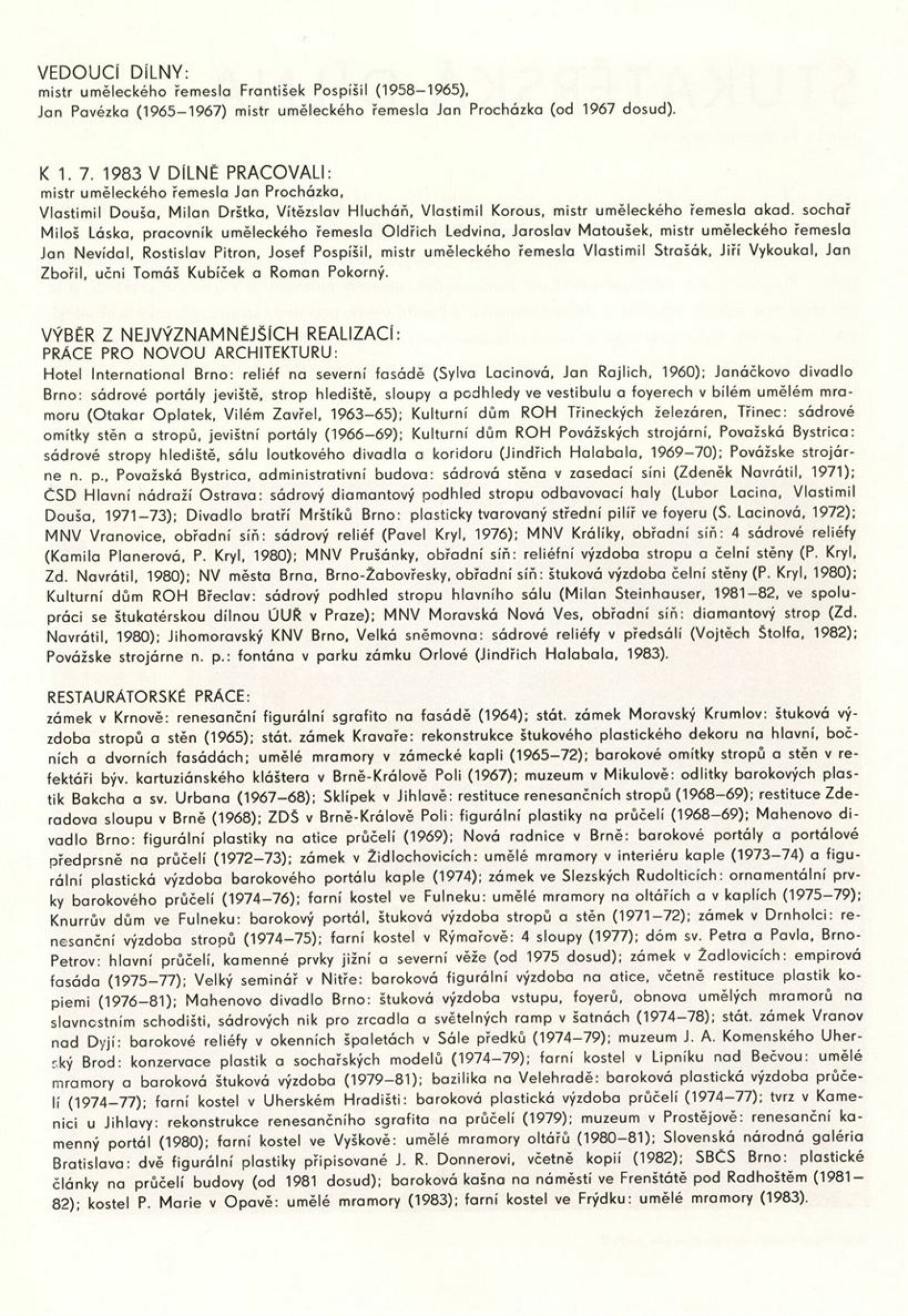 Podoby uměleckého řemesla. Ústředí uměleckých řemesel. Výstava k 35. výročí založení závodu Brno: Dům umění města Brna, 1. patro, 6. 12. 1989 – 7. 1. 1990 / Text: Kamil Augusta. – Brno: ÚUŘ, 1989. – [4] s., k jubileu a výstavě vydána publikace Ústředí uměleckých řemesel závod Brno / Text: Jaroslav Zelený. - Brno: ÚUŘ, 1989. – [52] s., obr., obsahuje přehled činnosti jednotlivých dílen, DU 878