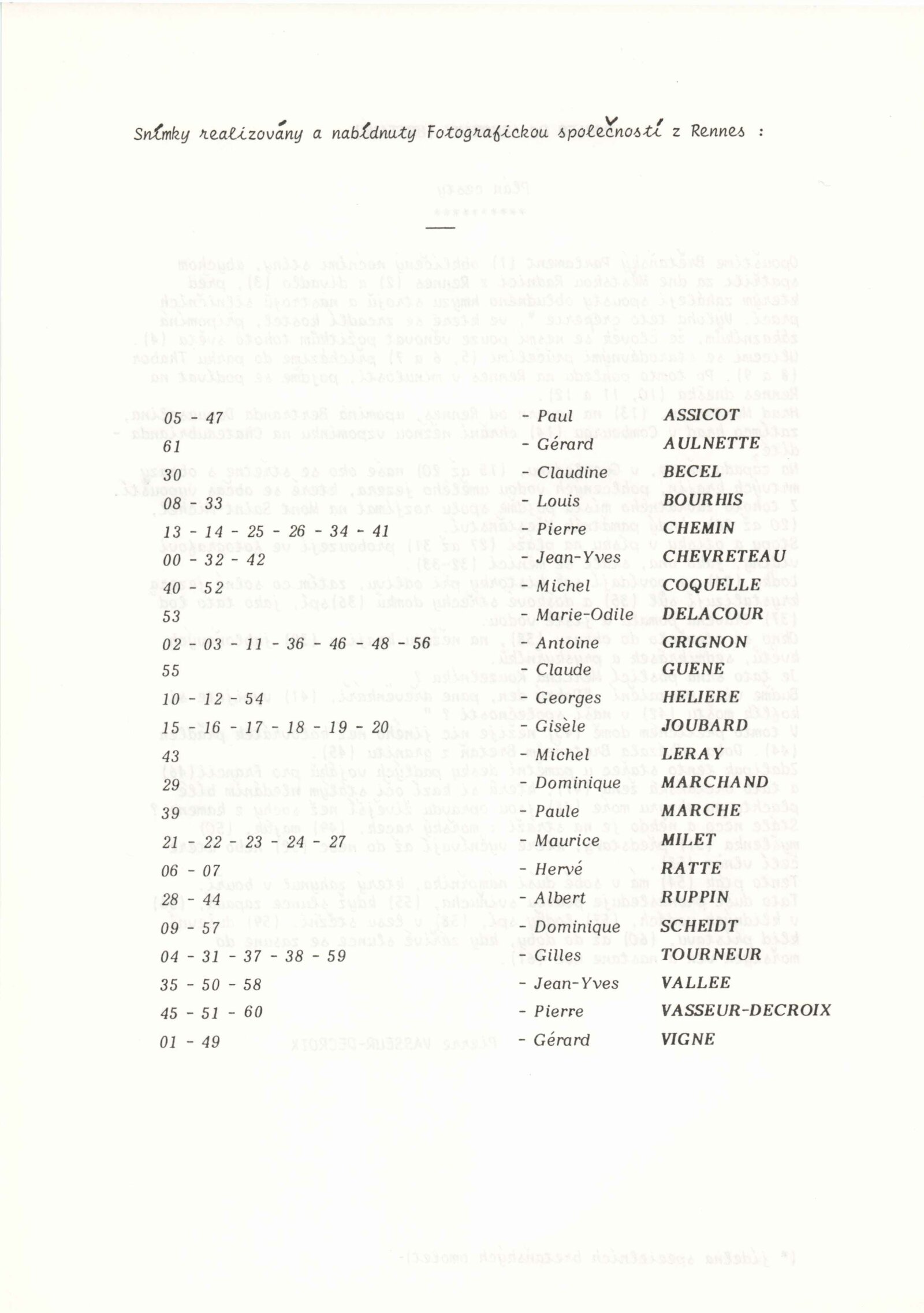 Paul Assicot, Gérard Aulnette, Claudine Becel, Louis Bourhis, Pierre Chemin, Jean-Yves Chevreteau, Michel Coquelle, Marie-Odile Delacour, Antoine Grignon, Claude Guene, Georges Heliere, Gisèle Joubard, Michel Leray, Dominique Marchand, Paule Marche, Maurice Milet, Hervé Ratte, Albert Ruppin, Dominique Scheidt, Gilles Tourneur, Jean-Yves Vallee, Pierre Vasseur-Decroix, Gérard Vigne