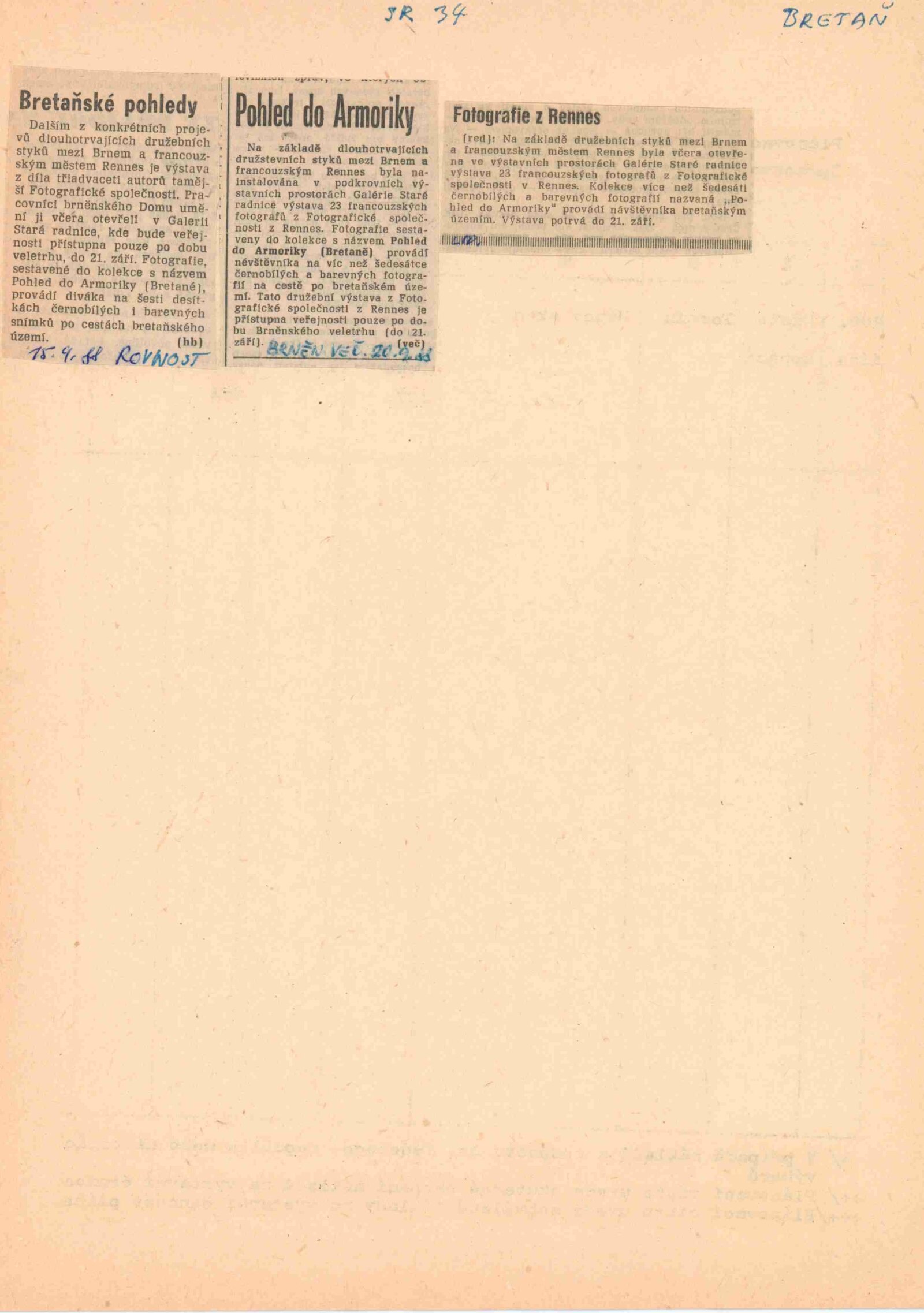 text (1 list) sloužící jako katalog výstavy, francouzský originál, recenze v tisku