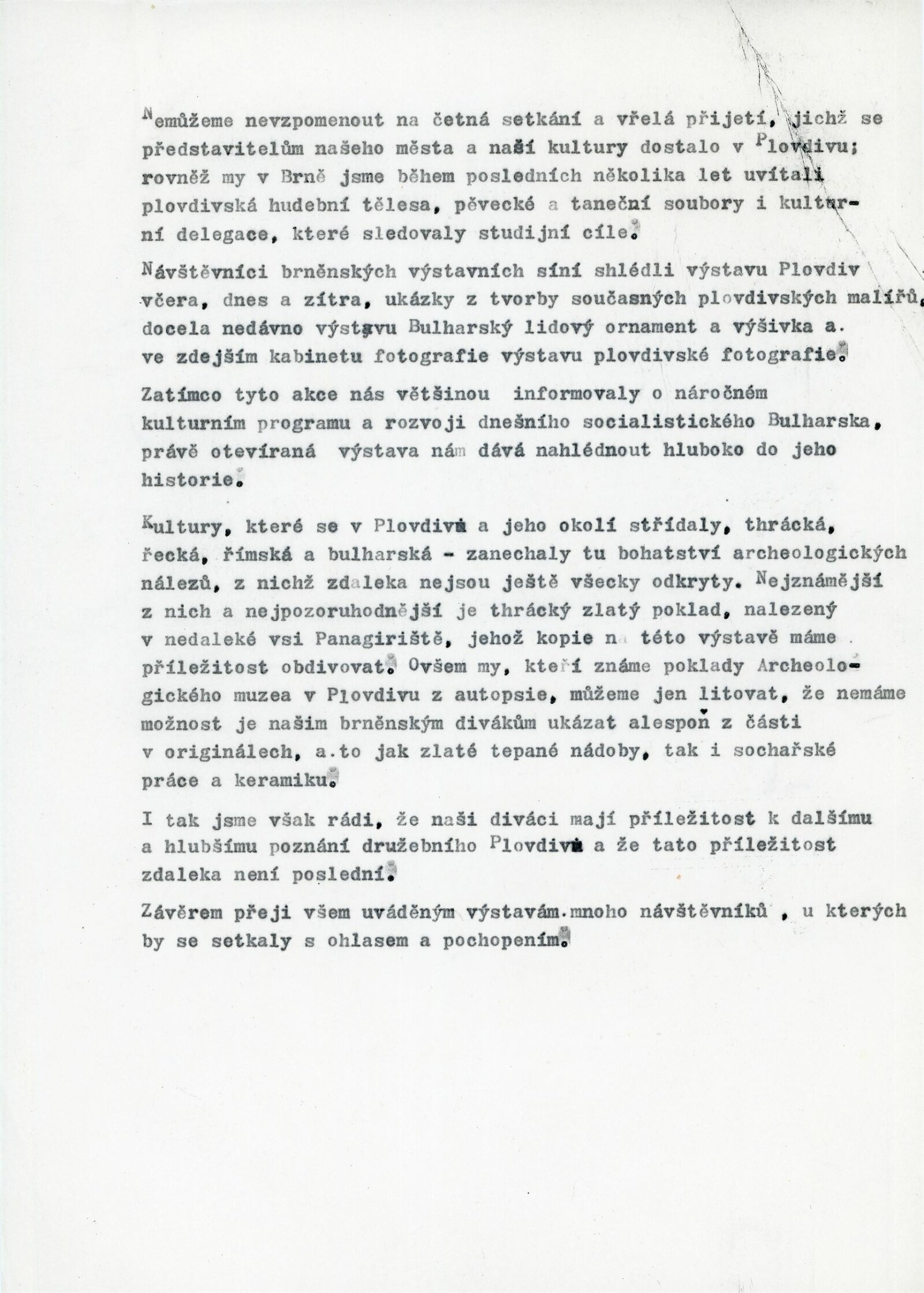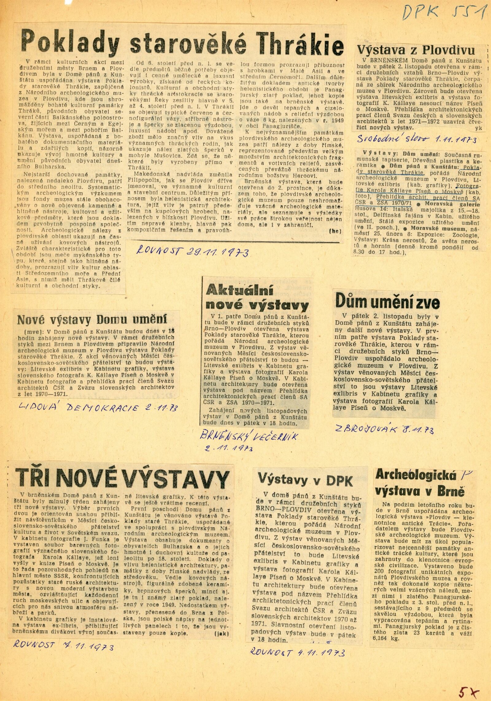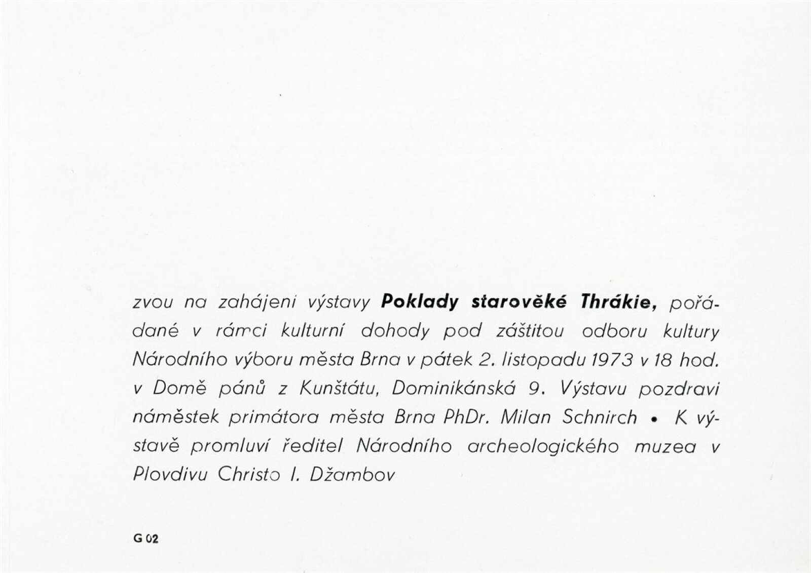 pozvánka, katalog (AJ, FJ, RJ), fotografie instalace výstavy, strojopis úvodního slova k výstavě (Milan Schnirch), rukopis textu o výstavě, dopisy (OK NVmB / R. Tálský), provozní korespondence, návrh programu bulharské kulturní delegace, výstavní smlouva, žádost o povolení výstavy, recenze v tisku, turistický leták Bulharsko