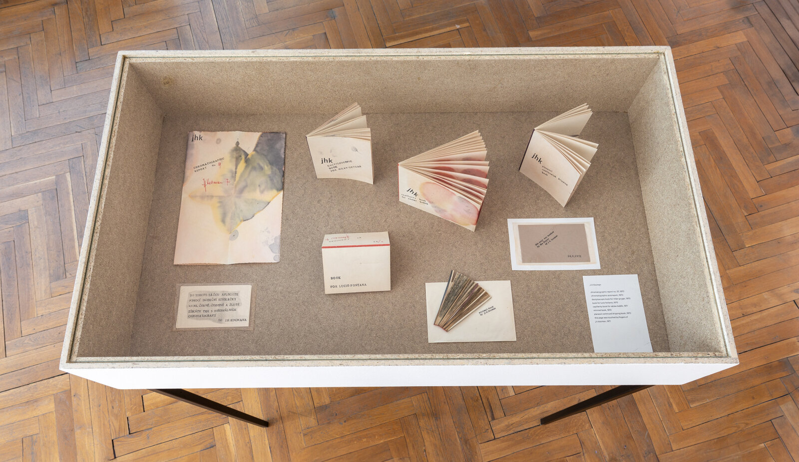 Výstava představuje šíři Zhořových teoretických, popularizačních, vzdělávacích i organizačních aktivit prostřednictvím různých výstupů. Jejich součástí bude vybraný soubor archivních materiálů, zahrnující vedle katalogů, publikací nebo korespondence také fotografie z výtvarných akcí, vlastní Zhořova konceptuálně pojatá PFka, sbírku výtvarných děl na krabičkách od sirek i děl inspirovaných ohněm, stejně jako ukázku z obsáhlé výtvarné sbírky, která je dokladem Zhořových přátelských vazeb s několika generacemi výtvarných umělců a umělkyň, především z tzv. brněnského okruhu. Jedná se například o práce Dalibora Chatrného, Leonida Ochrymčuka, Vladimíry Sedlákové, Jana Wojnara, Pavla Rudolfa, Jana Steklíka, J. H. Kocmana a řadu dalších. Soudobou reflexi Zhořovy koncepce Školy výtvarného myšlení představuje v autorské videoeseji na pomezí reality a fikce současná umělkyně Tereza Velíková. Performativní rovinu do výstavy přináší akce Vladimíra Havlíka, vybízející návštěvníky k jejímu provedení. Součástí výstavy je také prostor malé čítárny, místa pro odpočinek nebo realizaci vlastních tvůrčích aktivit.