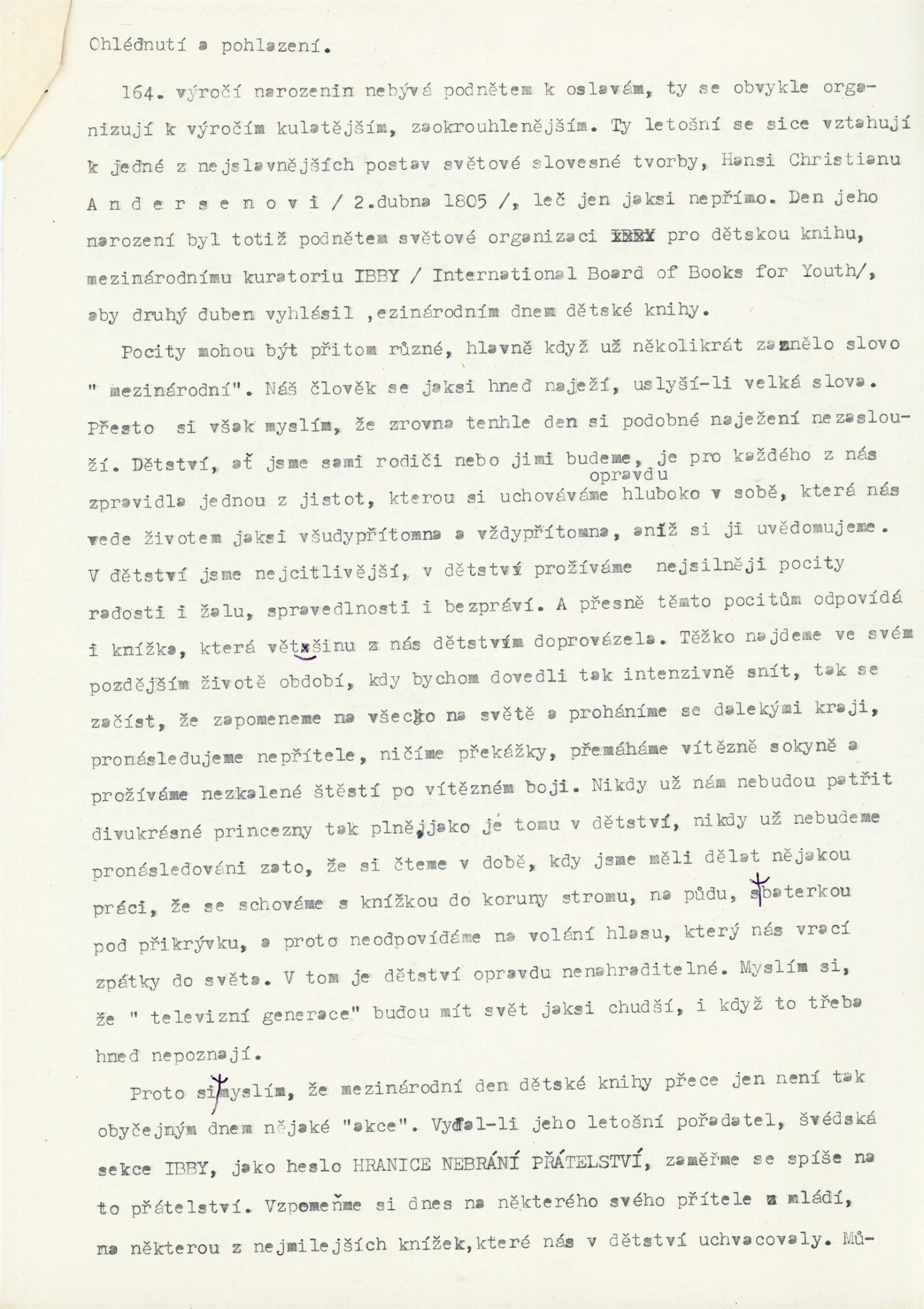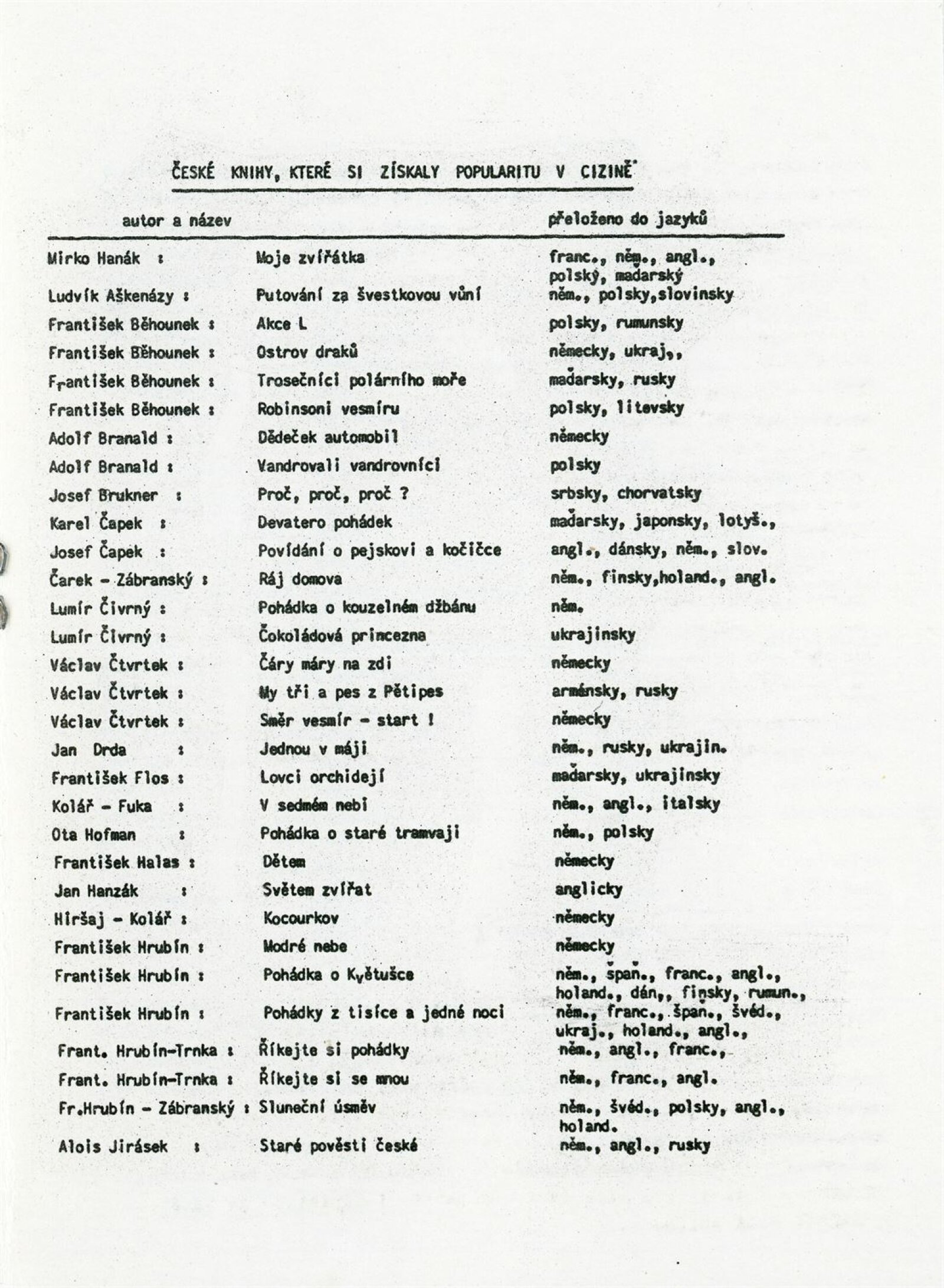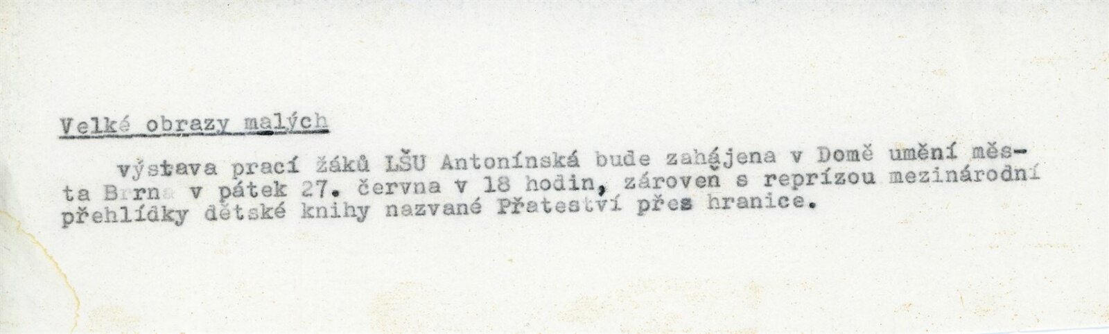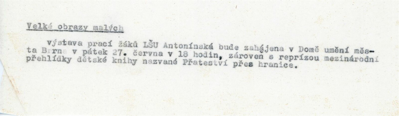 pozvánka, strojopis společné pozvánku pro DU 527 a 528, proslov Jana Červenky, soupis dětských knih vhodných pro propagační využití, zpráva, úvodní slovo a text k výstavě DU 528, seznam vystavených knih, provozní korespondence (Kruh přátel dětské knihy) smlouva s LŠU Antonínská o výstavě DU 528, recenze v tisku, sborník materiálů k přípravě Mezinárodního dne dětské knihy (MDDK) „Hranice nebrání přátelství“, publikace „Deset let lidové školy umění“ (Brno, Antonínská 3), text k MDDK, oběžník švédské národní organizacek MDDK, poselství všem dětem světa k MDDK od Astrid Lindgrenové
