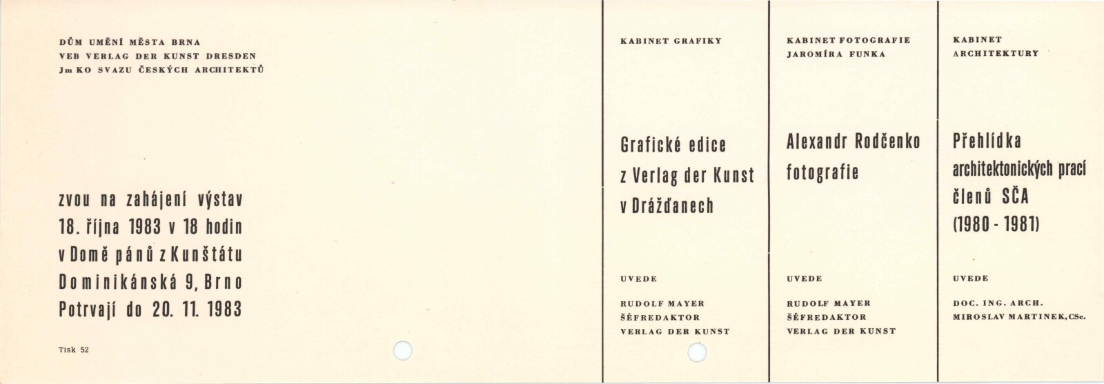 pozvánka, strojopis pozvánky, poděkování SA ČSR Domu umění, zápis z jednání o výstavě