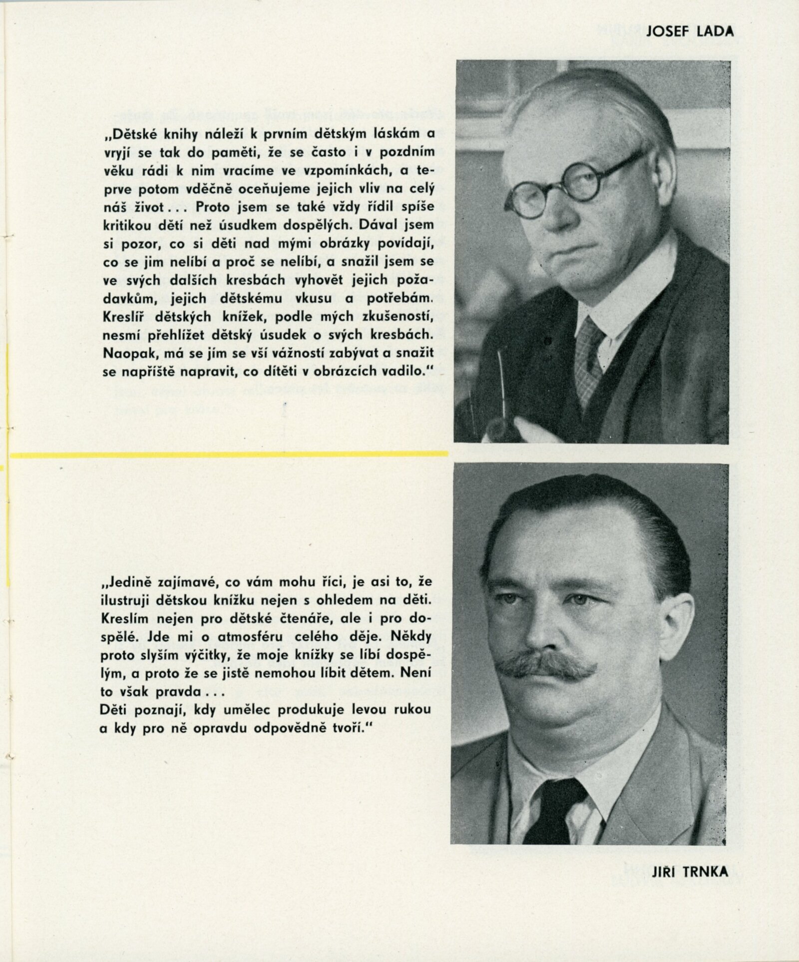 Josef Čapek, Josef Lada, Ferdiš Duša, Cyril Bouda, Zdeněk Burian, František Doubrava, Václav Fiala, Vladimír Fuka, Mirko Hanák, Adolf Hoffmeister, Ota Janeček, Ludmila Jiřincová, Václav Karel, Stanislav Kolíbal, Kamil Lhoták, Josef Liesler, Milada Marešová, Zdeněk Miler, Karel Müller, Josef Novák, Antonín Pelc, Antonín Pospíšil, Vlastimil Rada, Michal Romberg, Vojtěch Sedláček, Ondřej Sekora, Zdeněk Seydl, Antonín Strnadel, Karel Svolinský, Jiří Trnka, Adolf Zábranský, Helena Zmatlíková